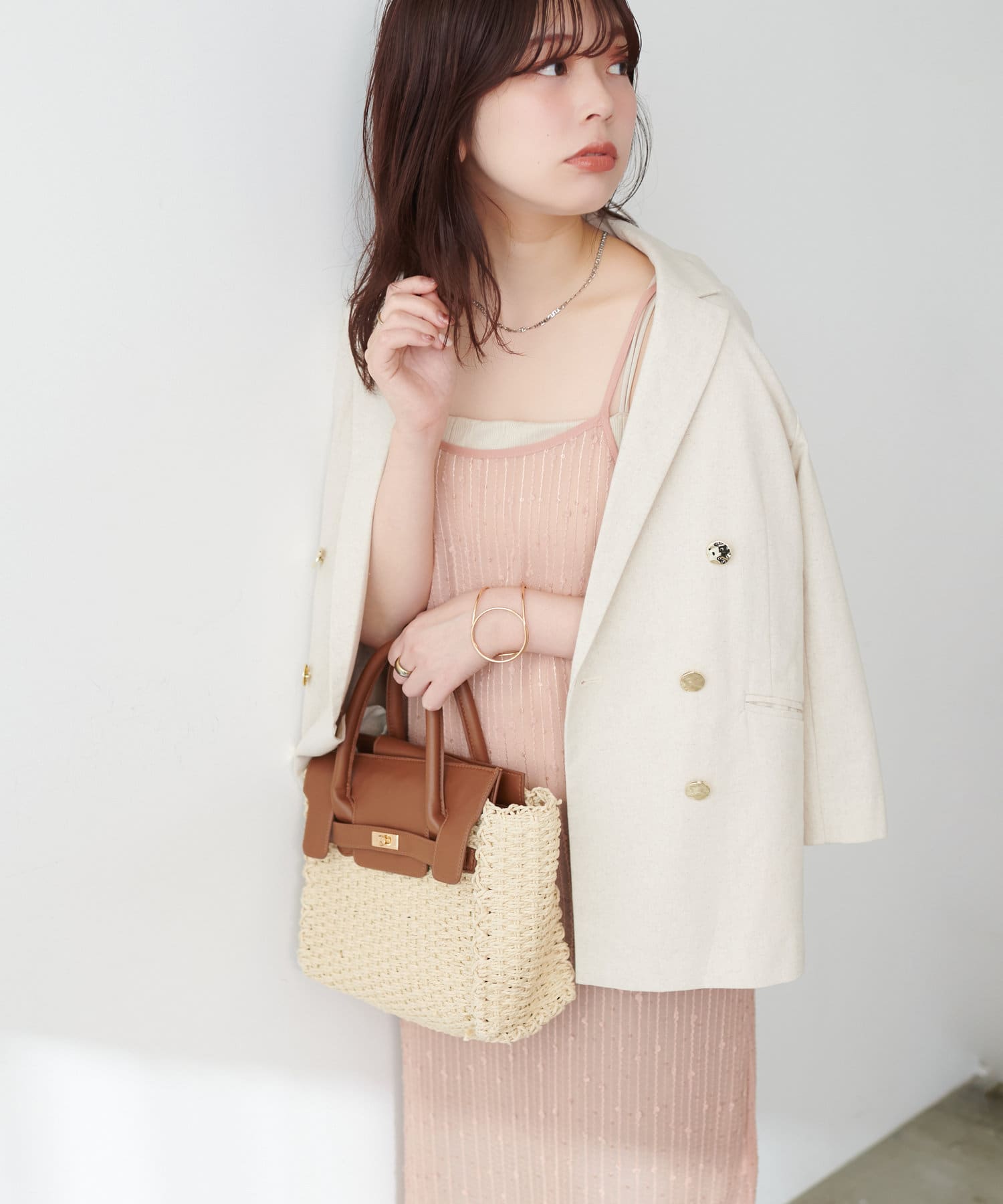 ボトムスはデニムやIラインのスカートを合わせるのが◎。