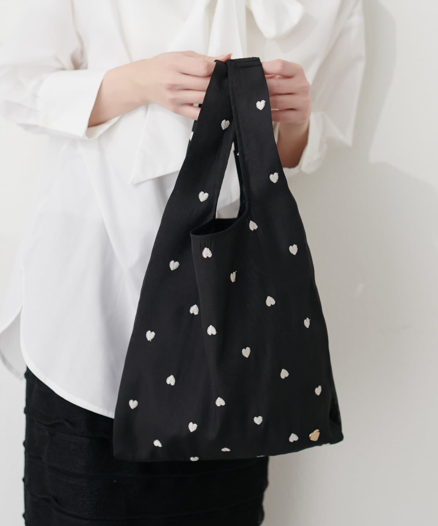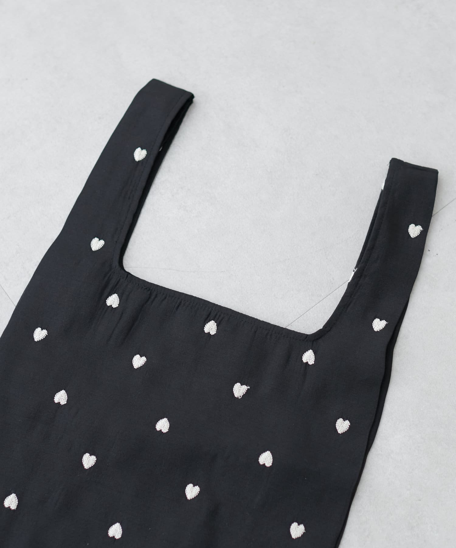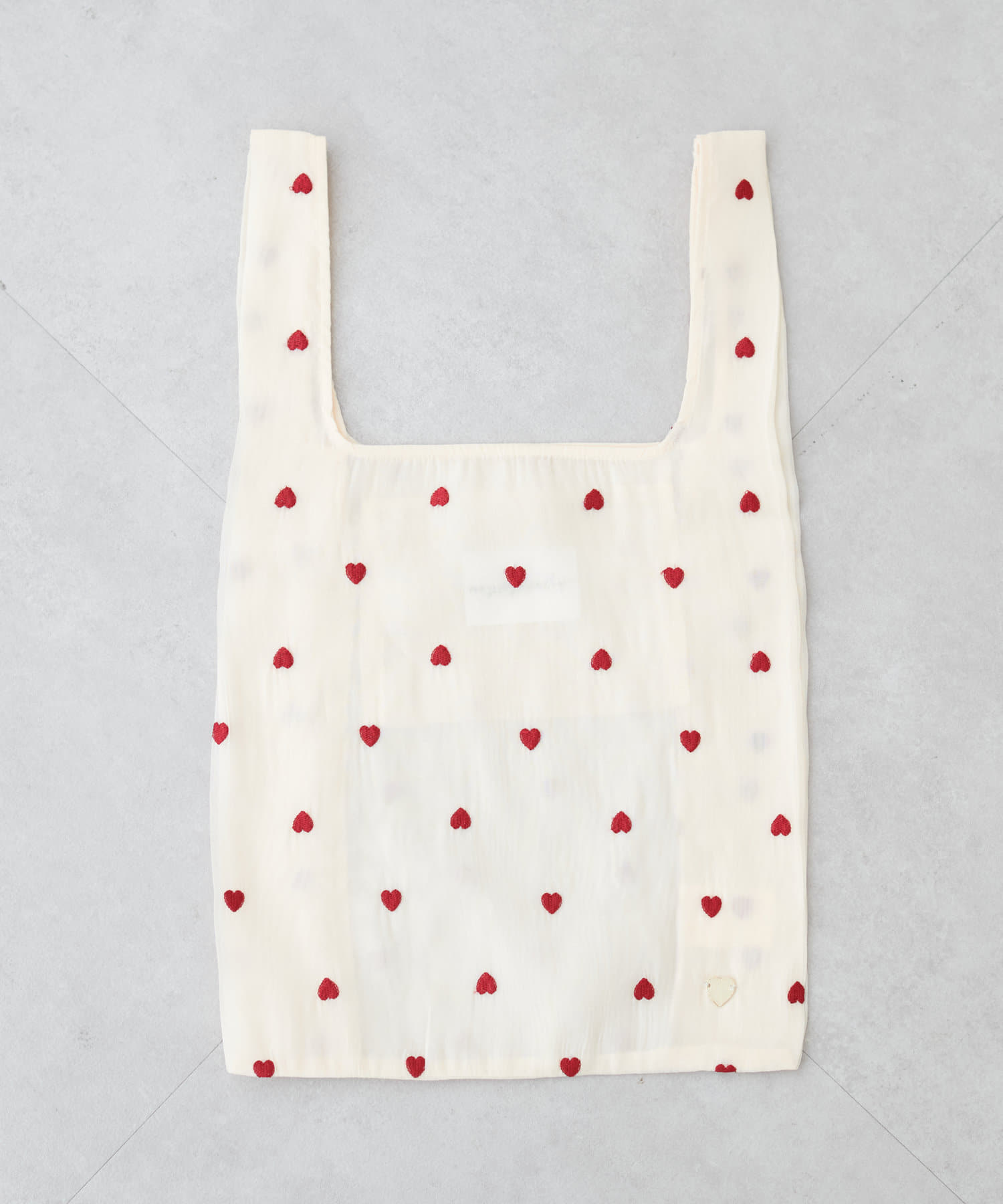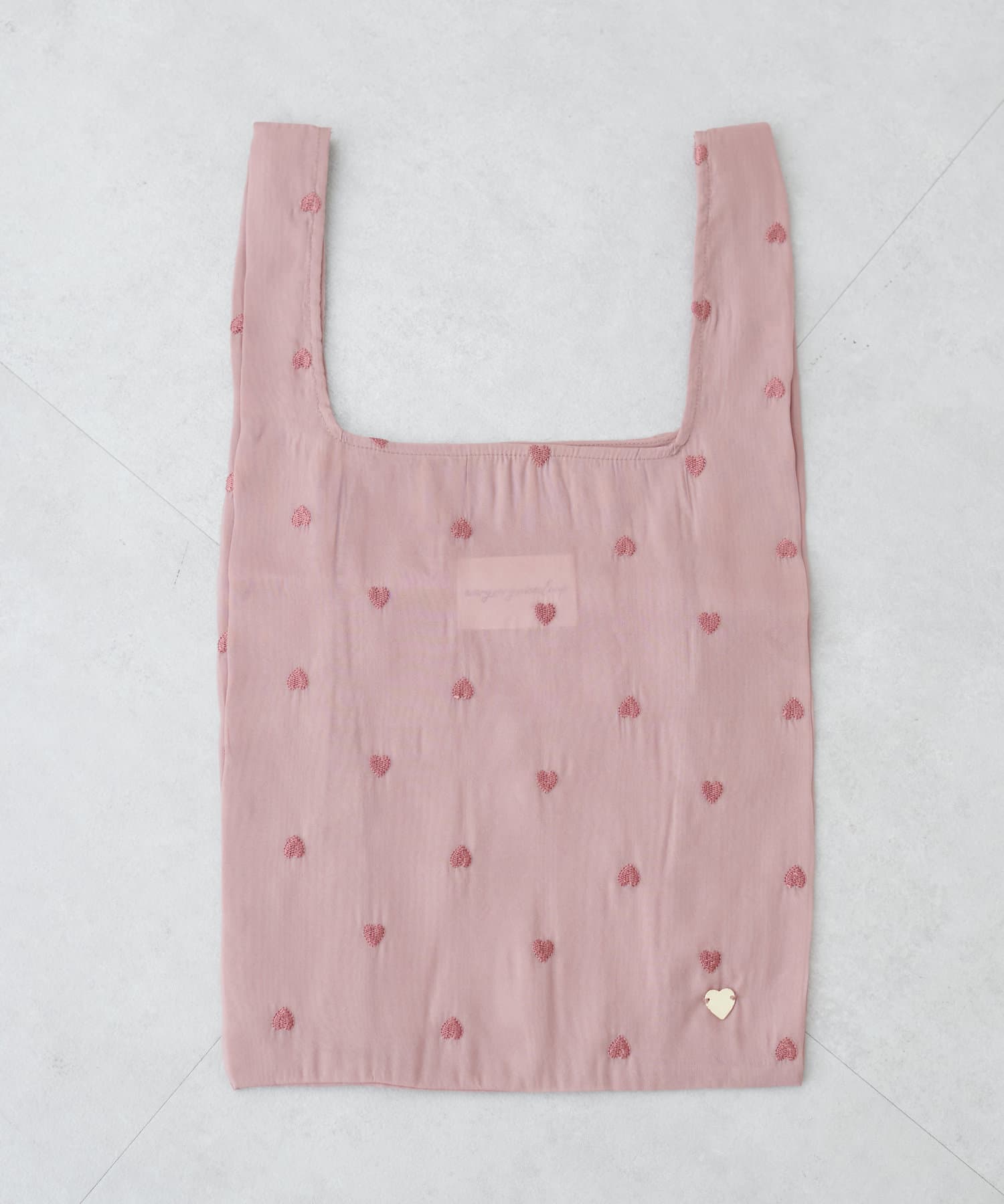 小さなハート刺繍がふんだんに散りばめられたエコバッグ