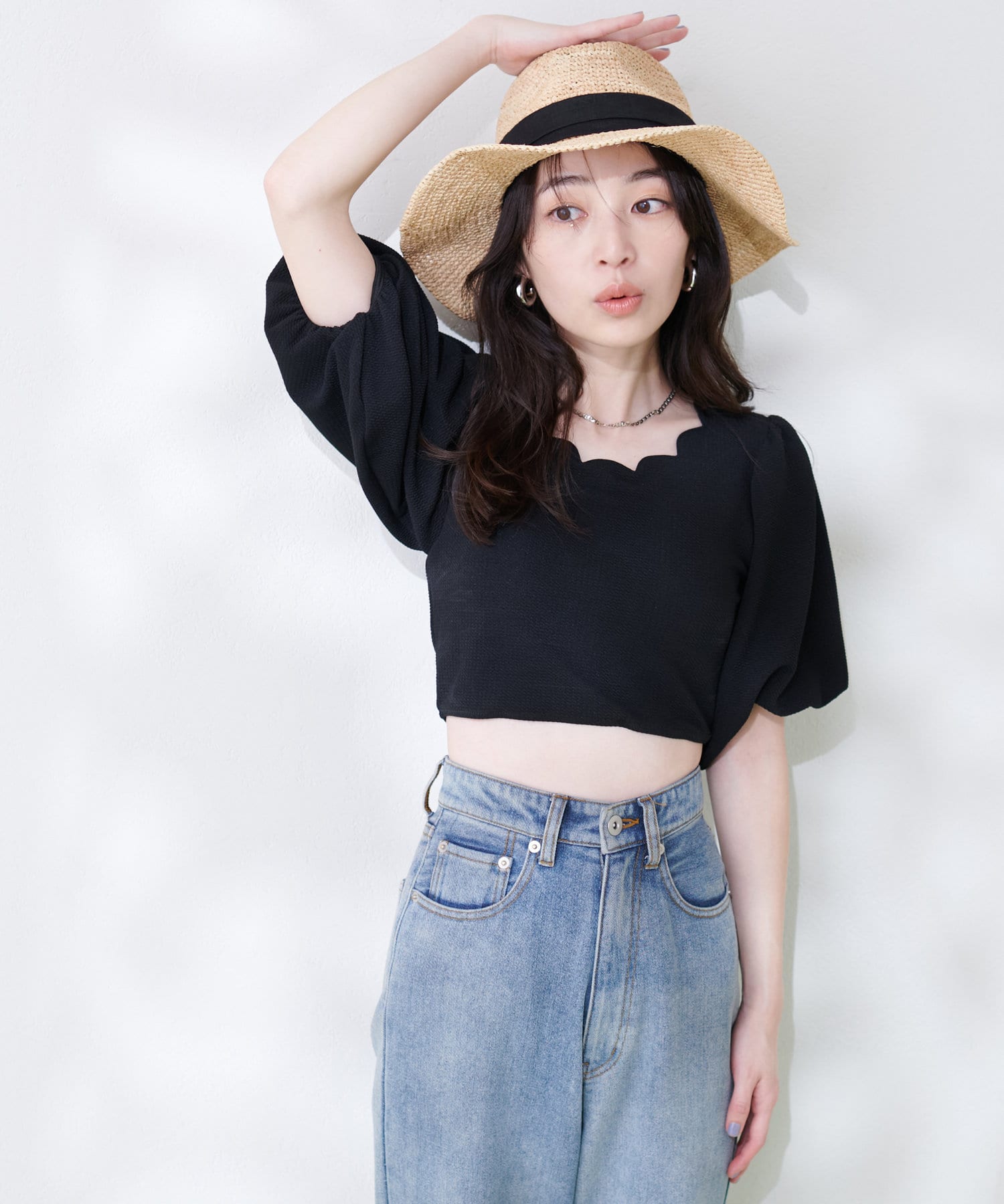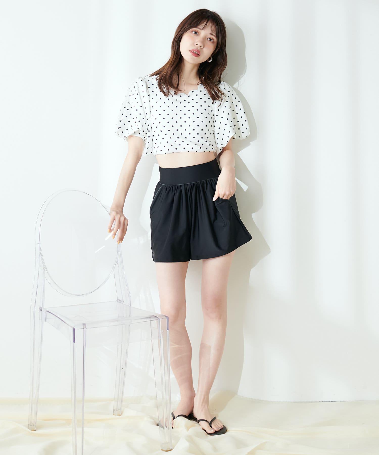 【水着】スカラップネックボリュームスリーブトップス+ボトムSET