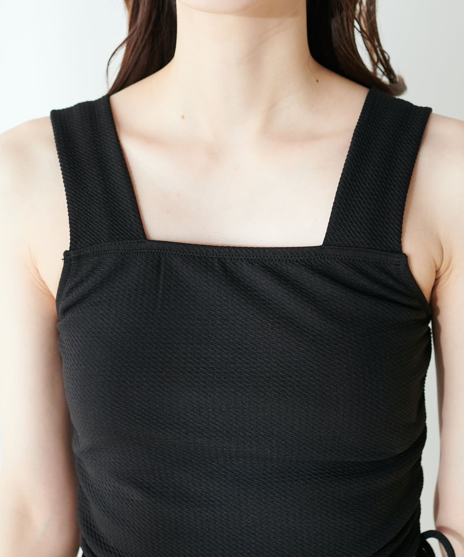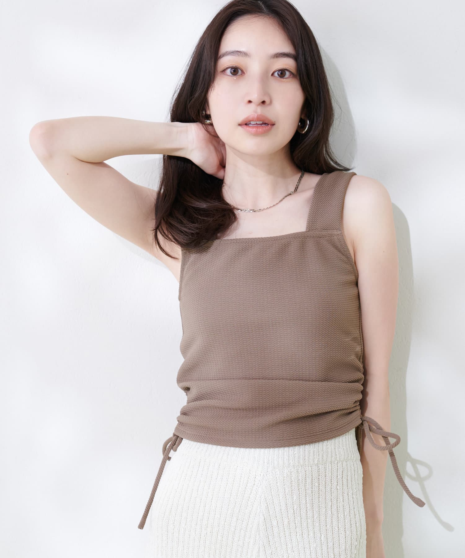 トップスはサイドのドロストでお好みの長さに調節可能。