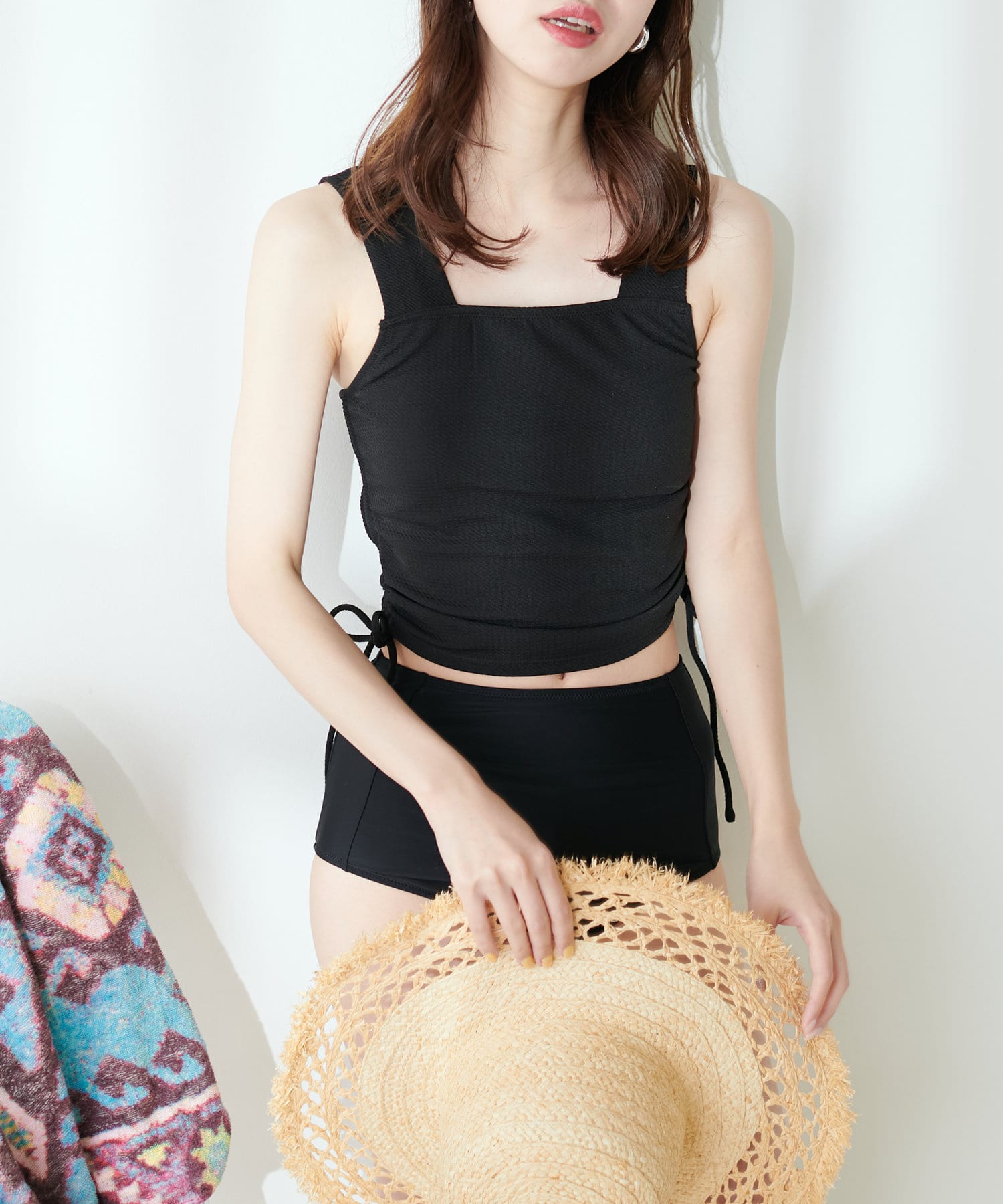 シンプルなデザインなので水着としてはもちろん、デニムパンツやサロペットなどに合わせて普段使いもおすすめです!