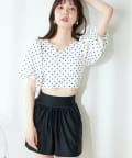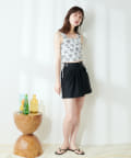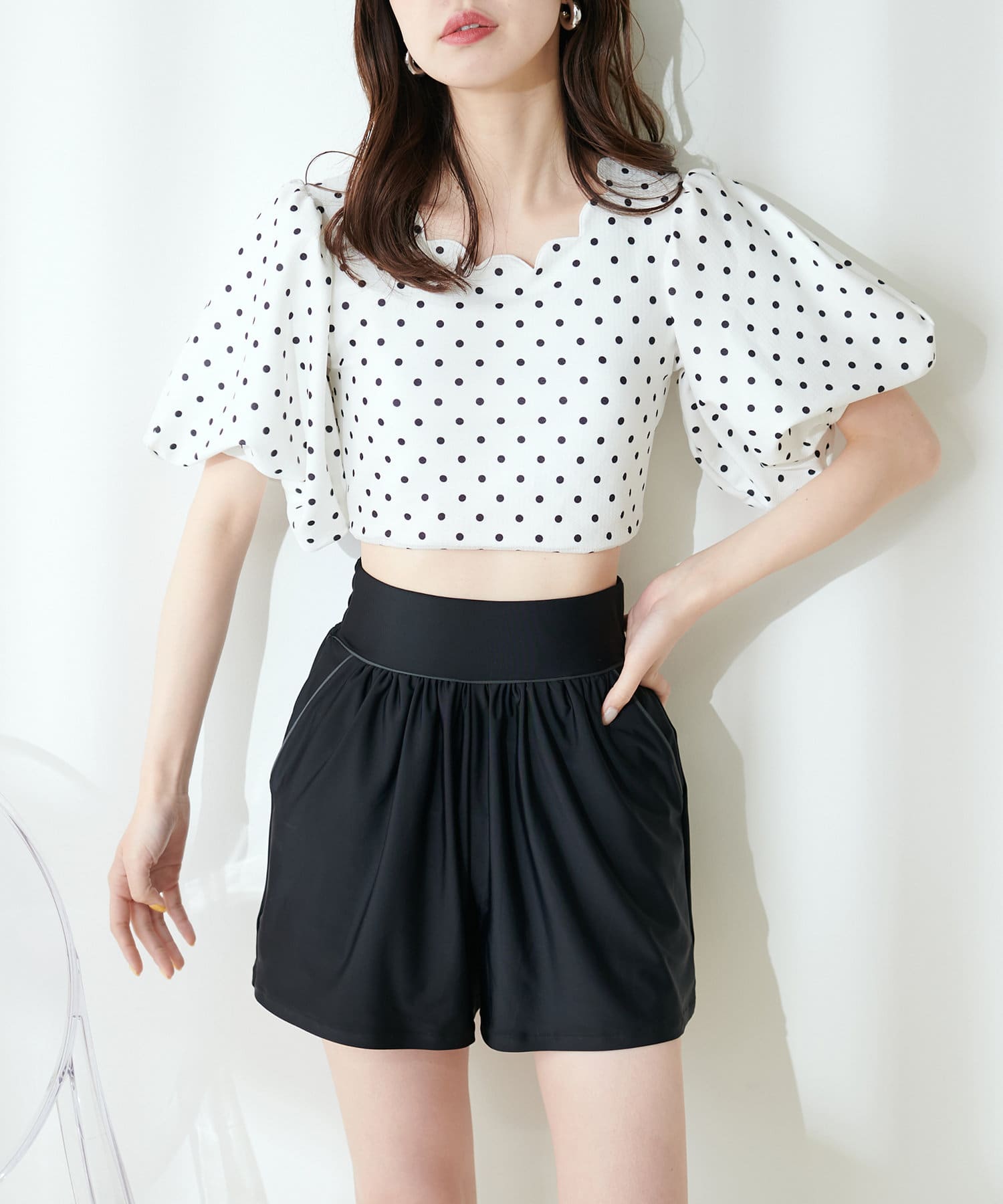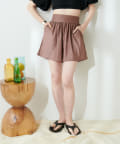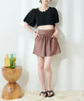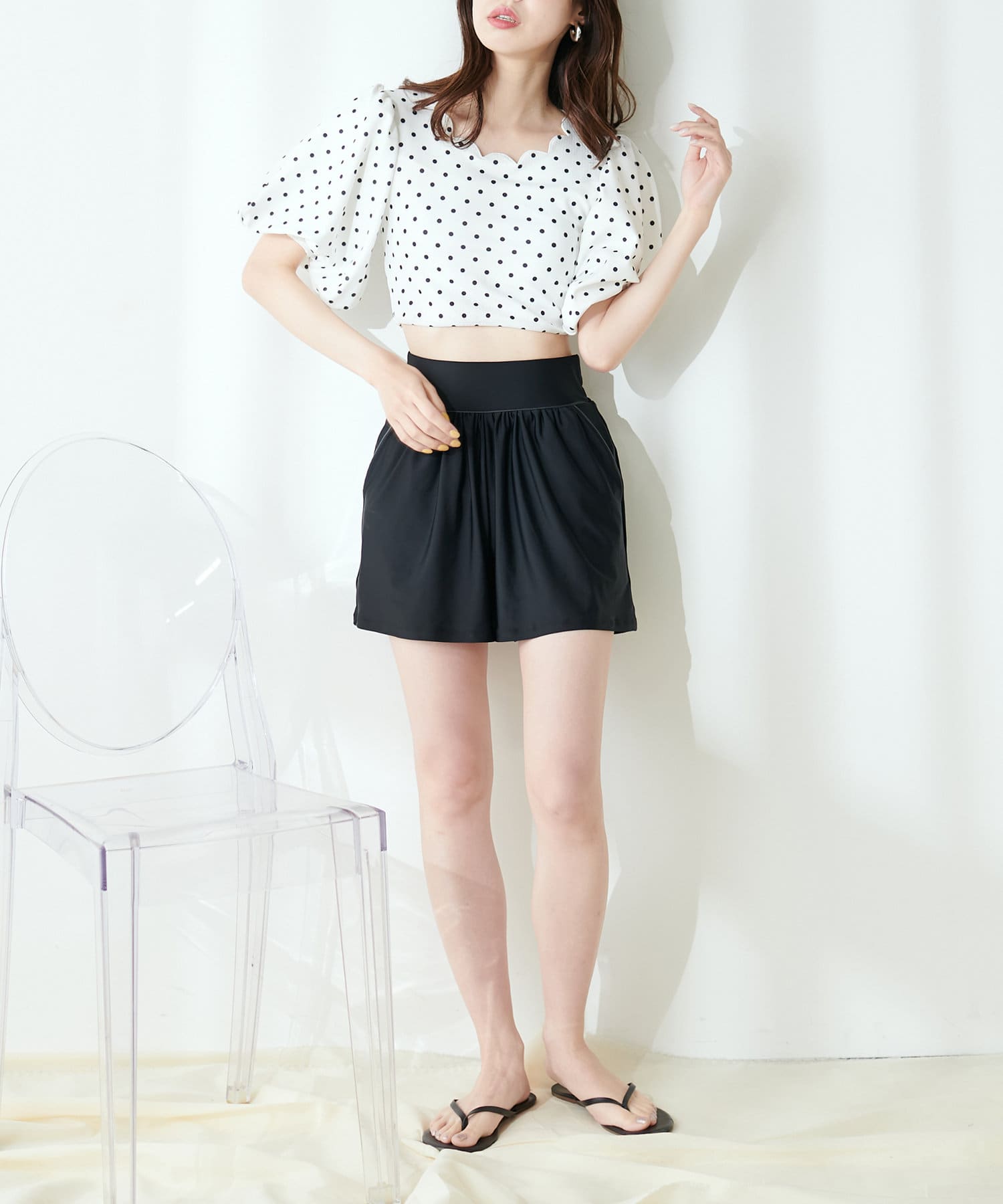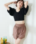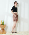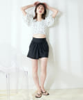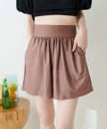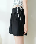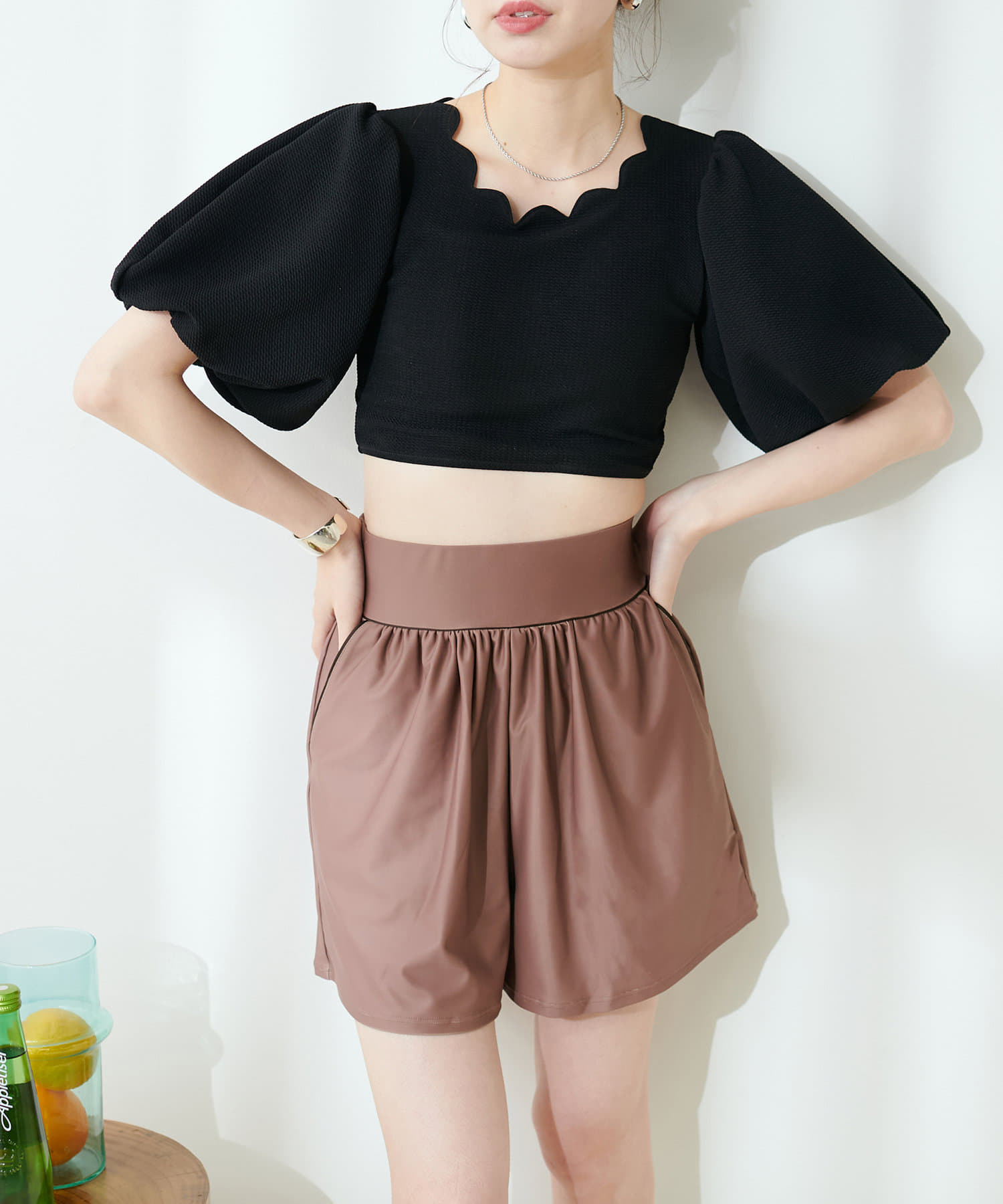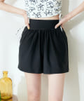 スタイルアップ効果のあるハイウエストショートパンツ。