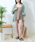 0341160030 【水着】スカラップネックボリュームスリーブトップス+ボトムSET