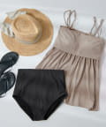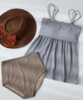 水着としてはもちろん、デニムパンツやサロペットなどに合わせても使い頂けます。