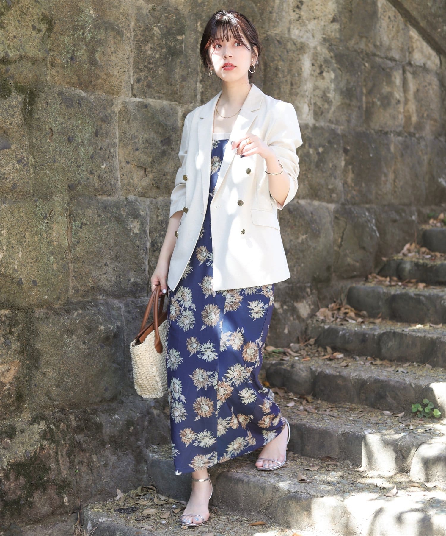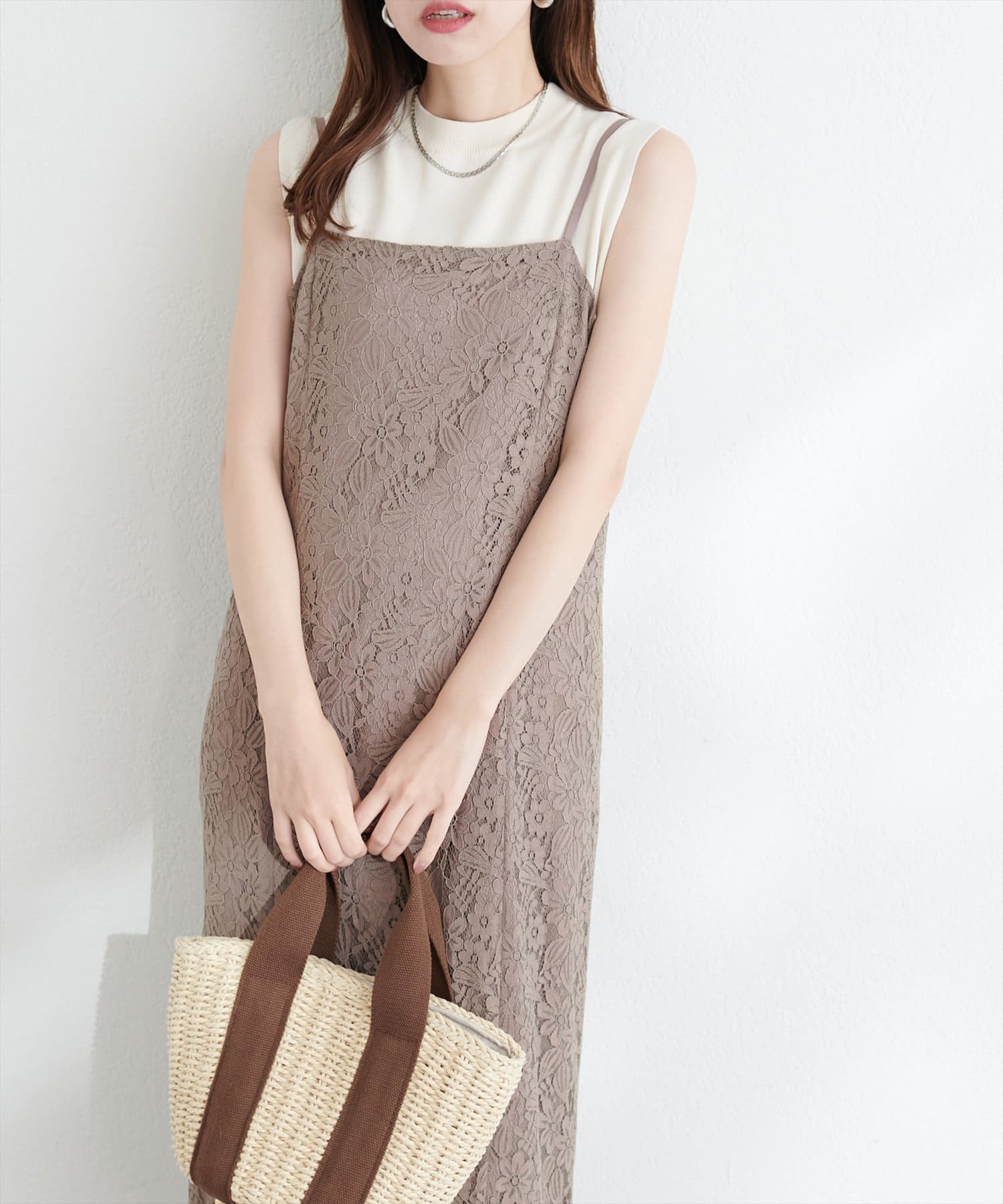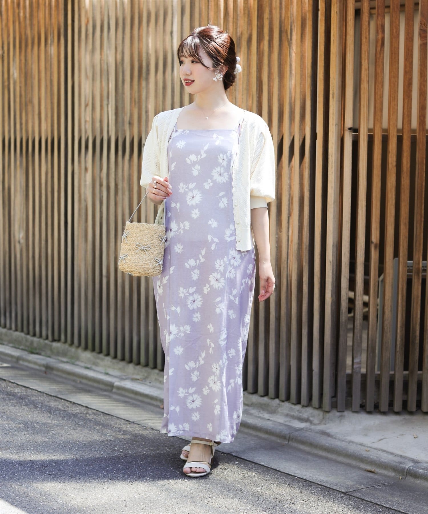 キャミワンピースの肩紐は、アジャスターで調整できるので身長に合わせて丈を替えられます◎