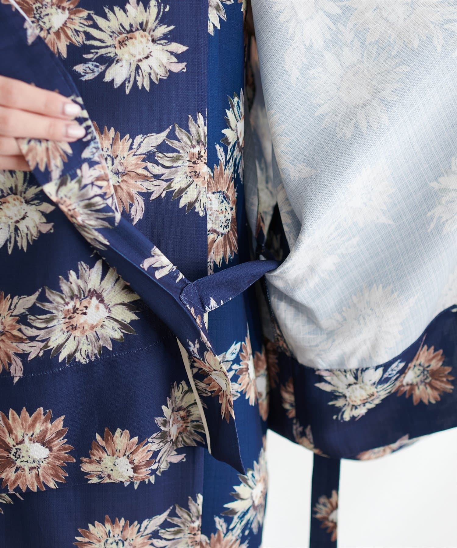 浴衣の羽織りは、一人でも簡単に着られるように甚平のような紐がウエストあたりについており、