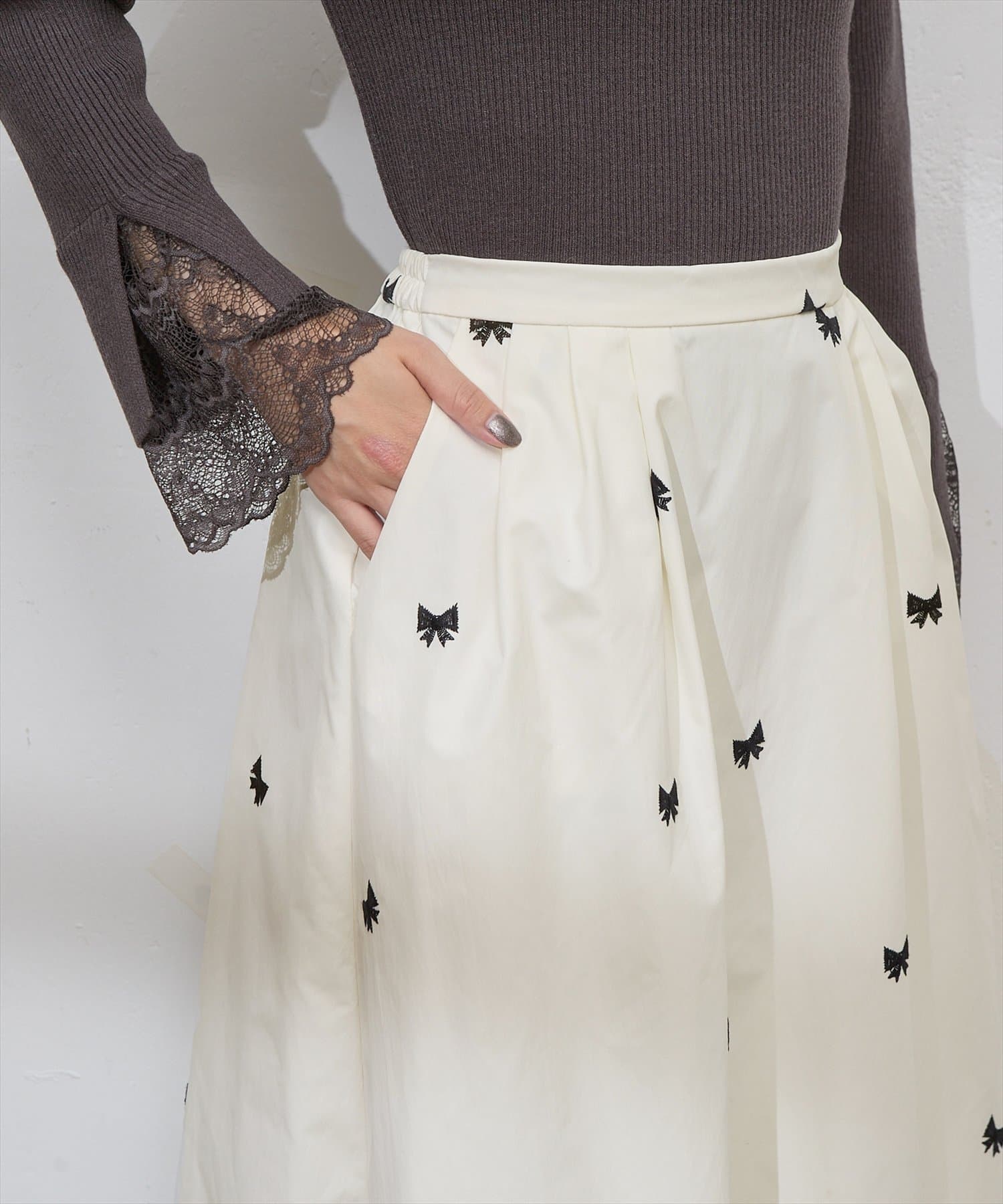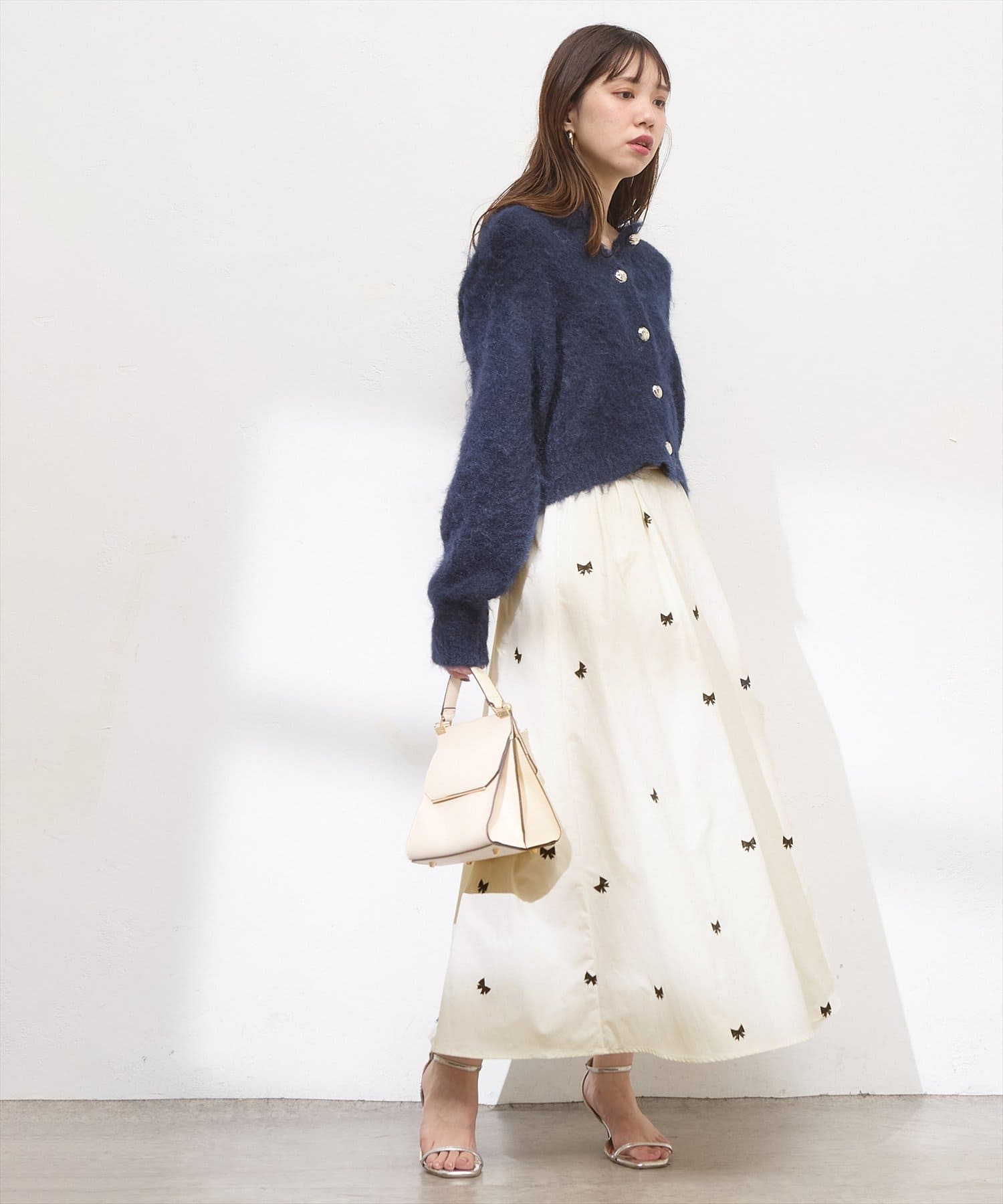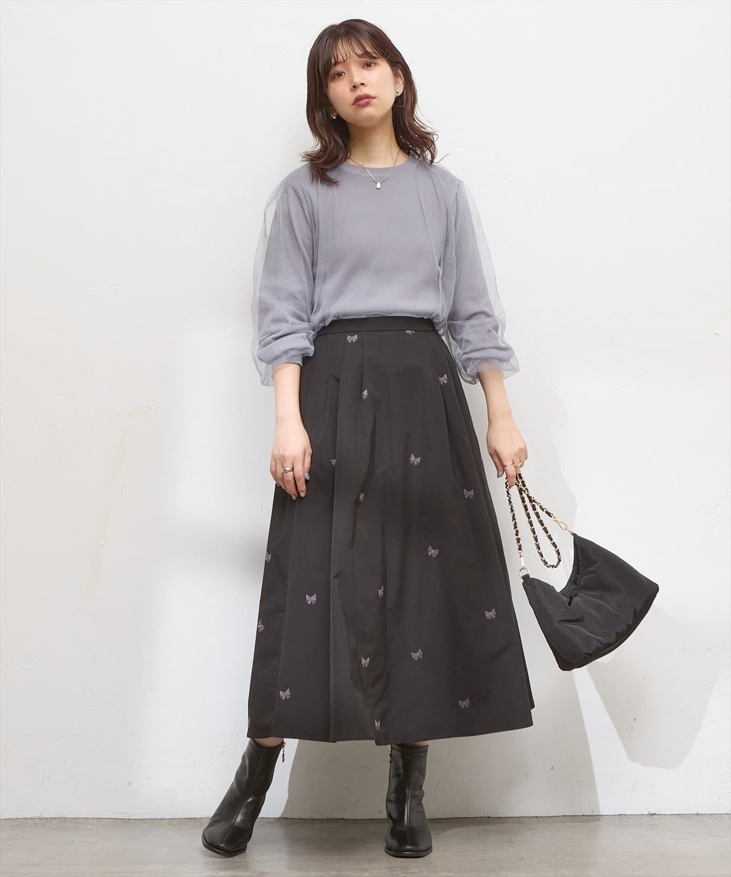 甘くなりすぎないささやかなリボンの刺繍がポイントです。