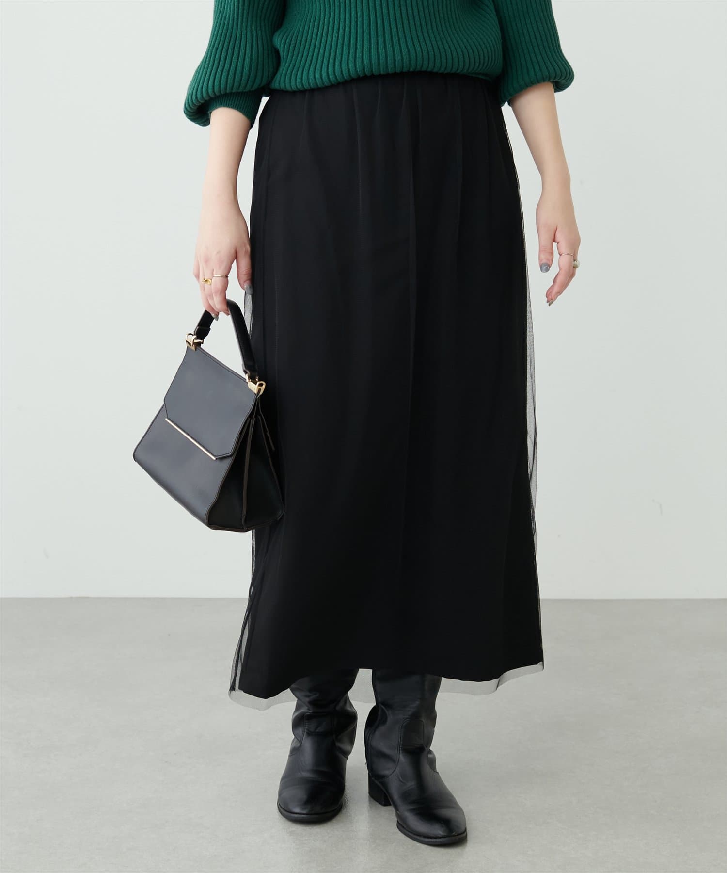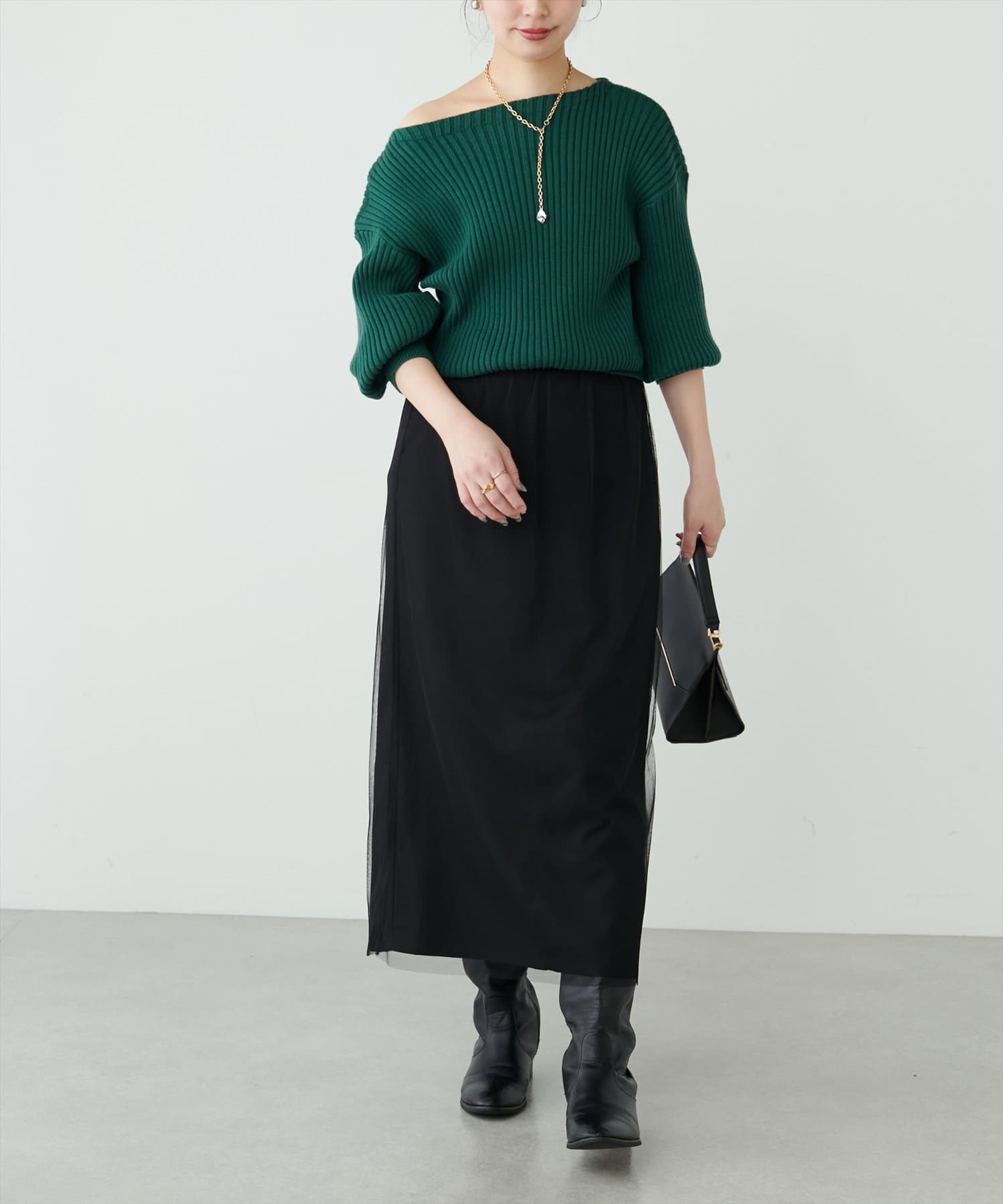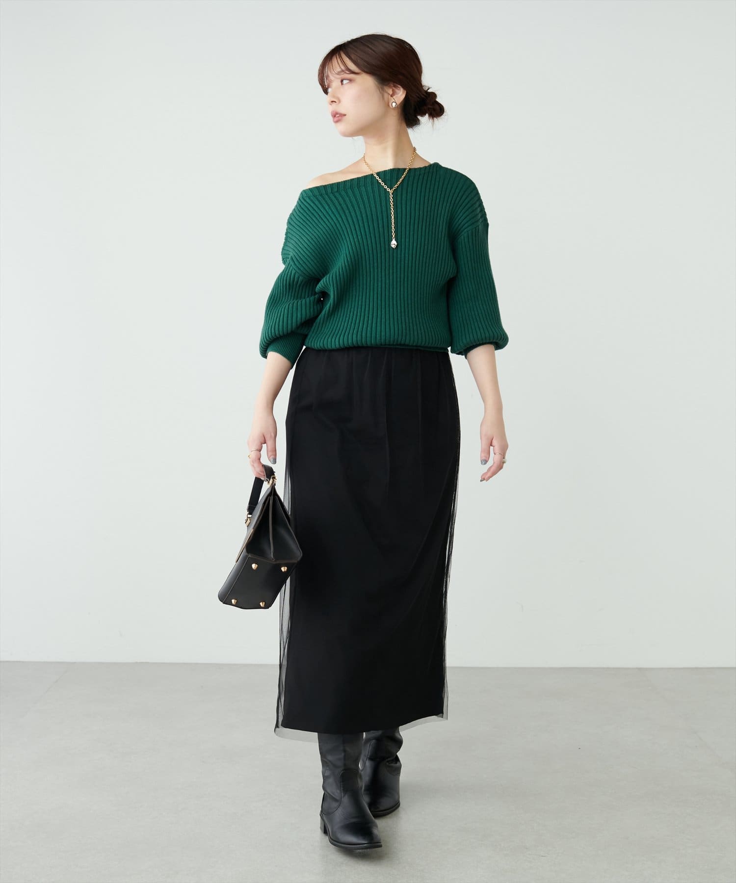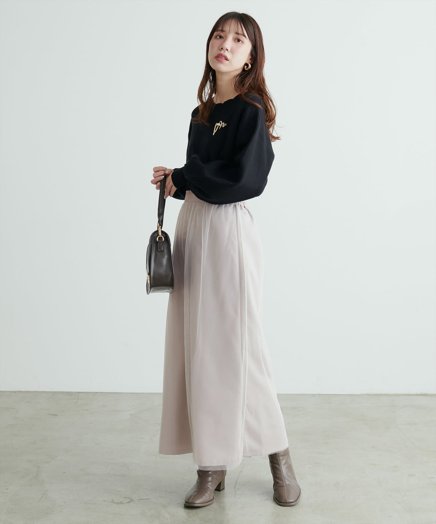 シンプルなブラウスやトップスと合わせてお召しいただくと◎。