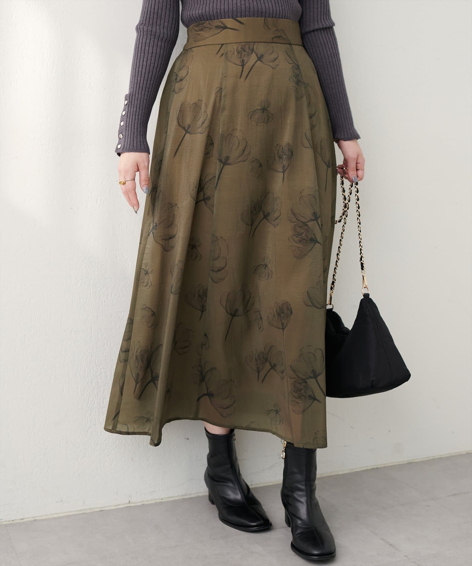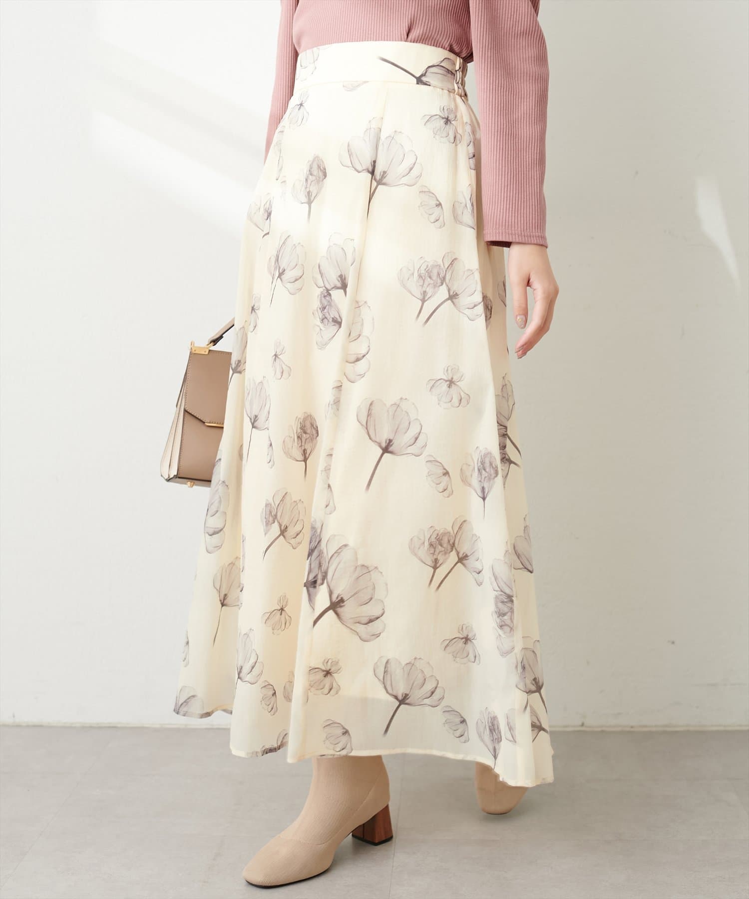 【natural couture】長さ変えれるシアー大花フラワースカート