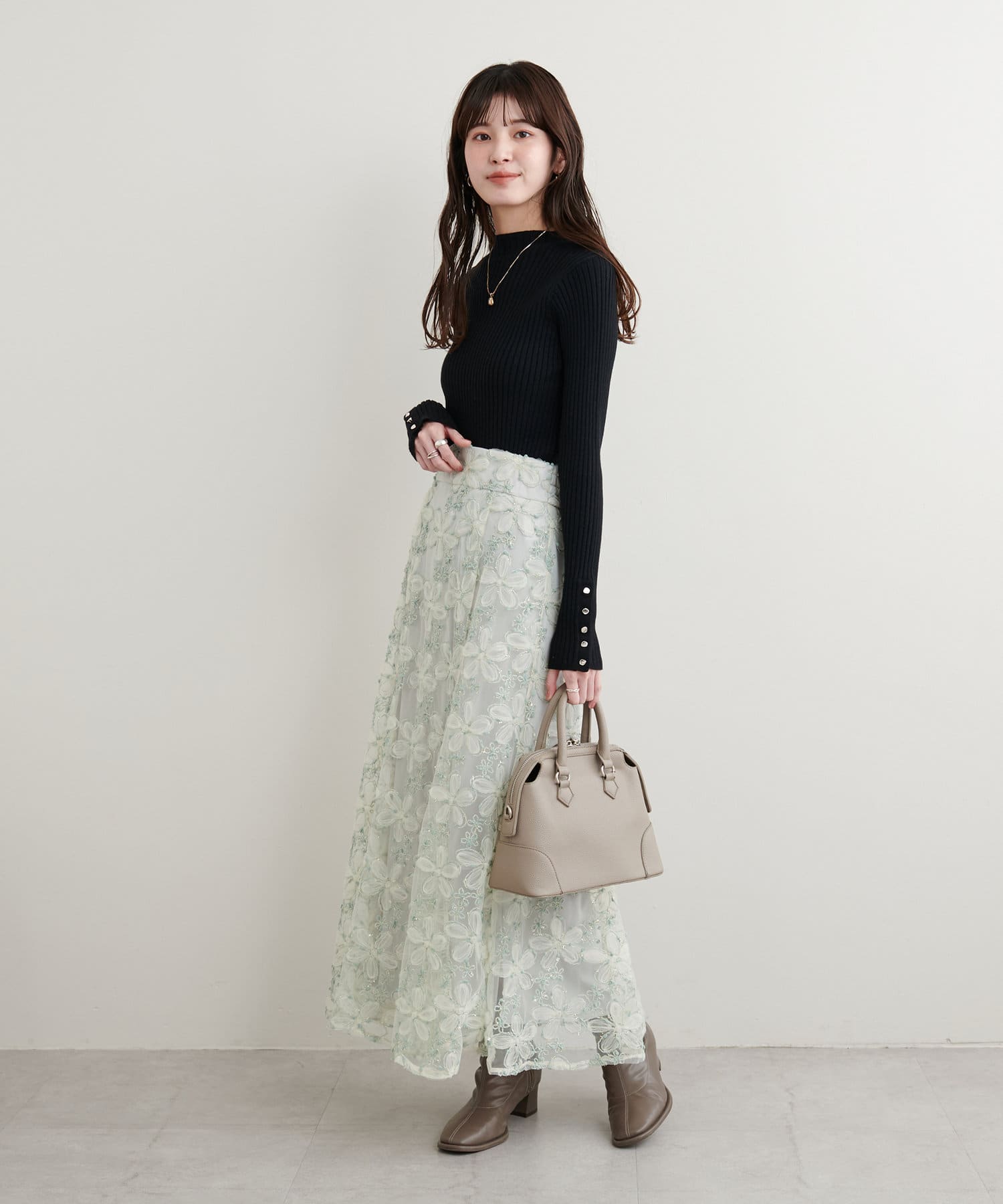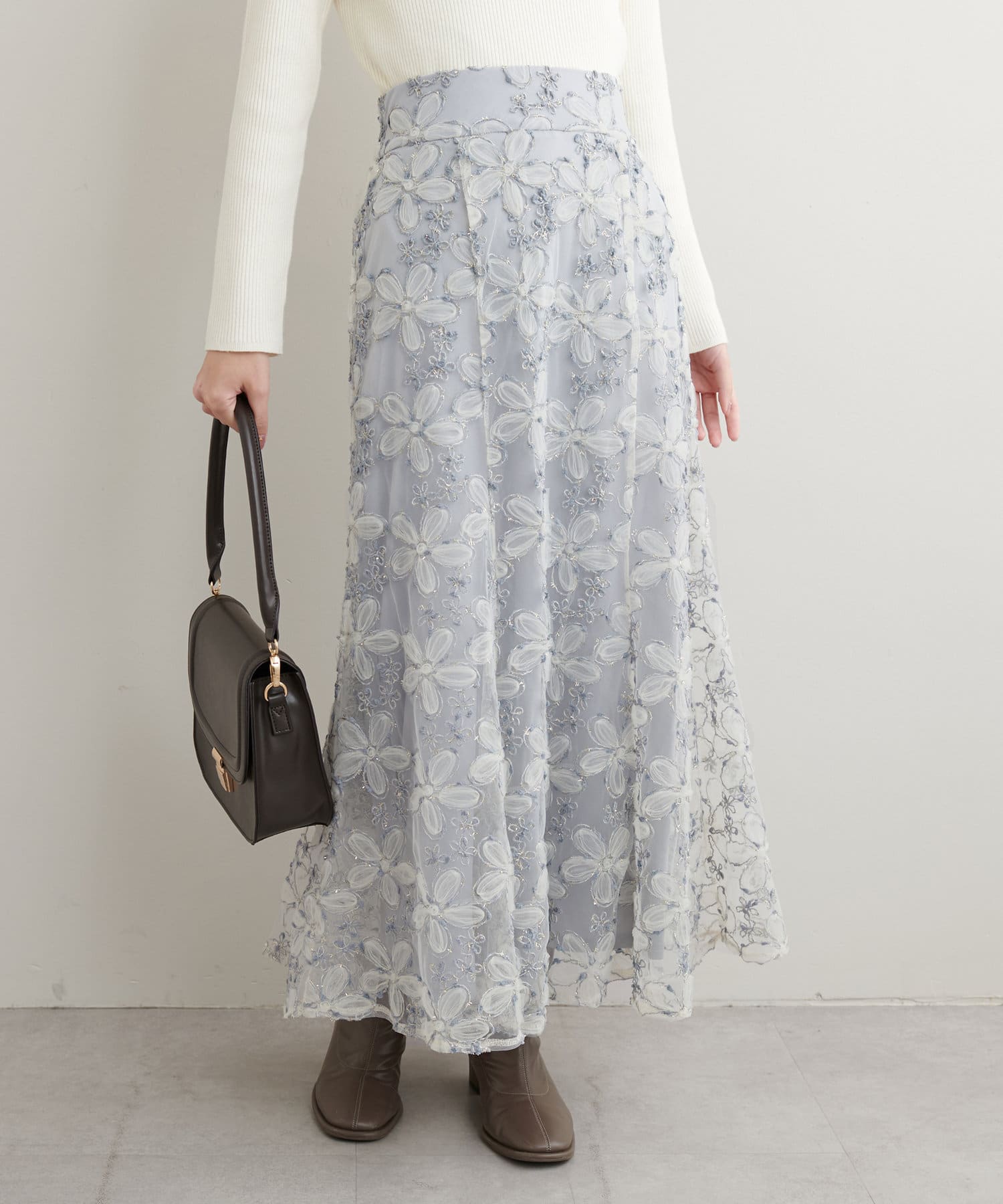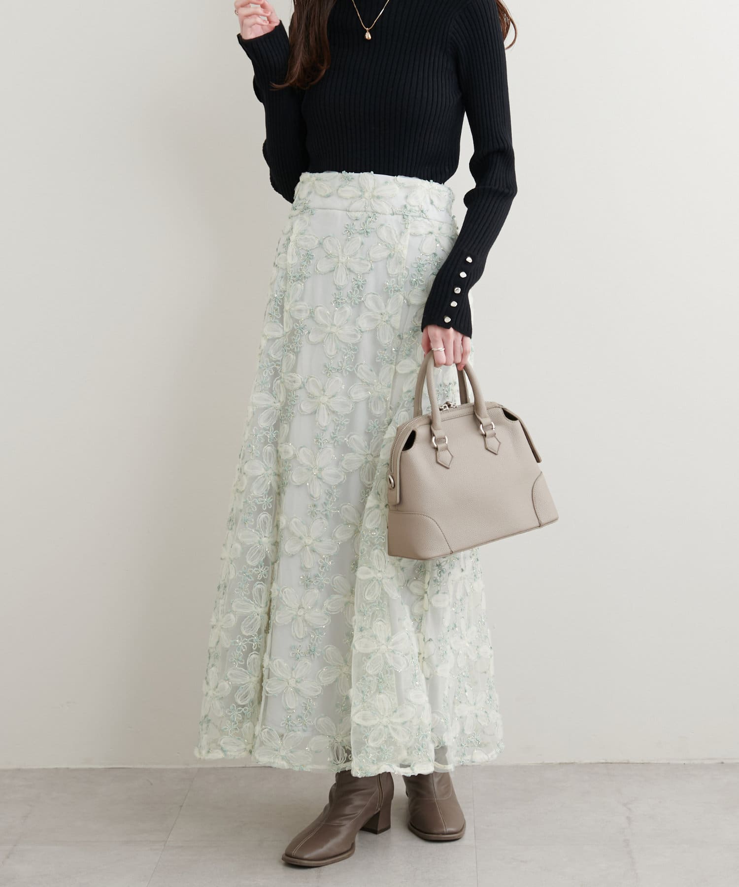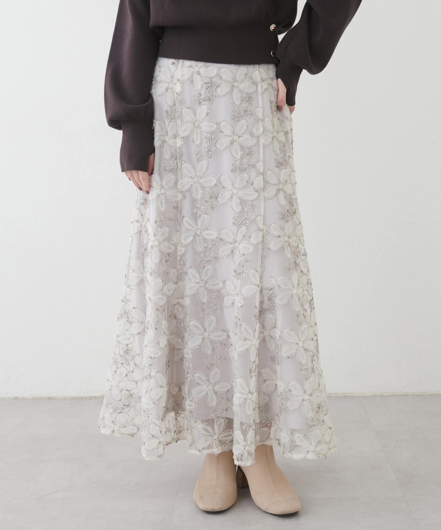 【SNSで話題!】長さ変えれる3Dフラワーレーススカート
