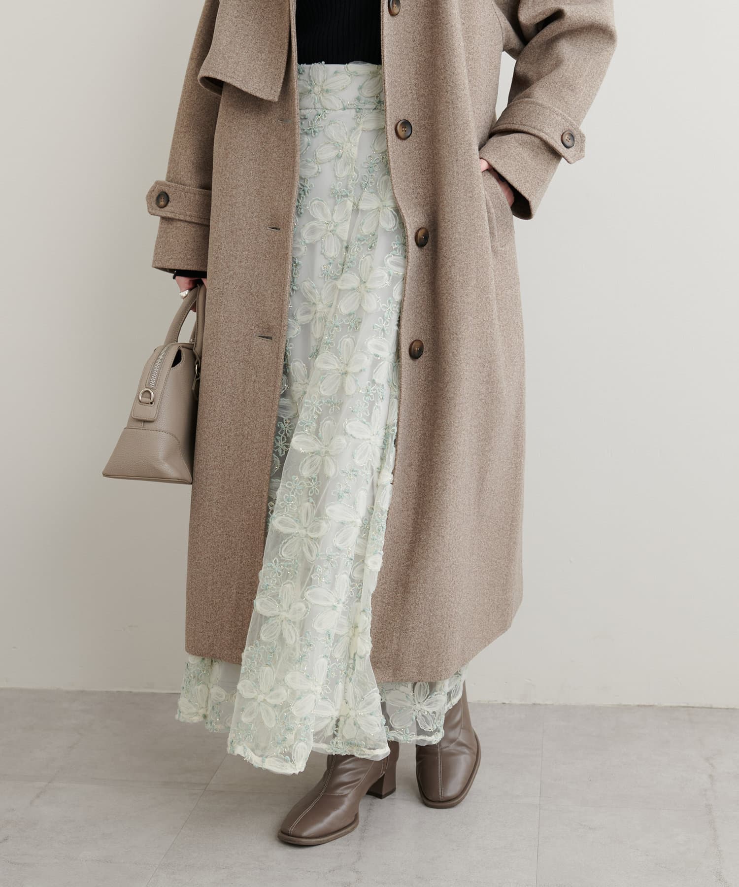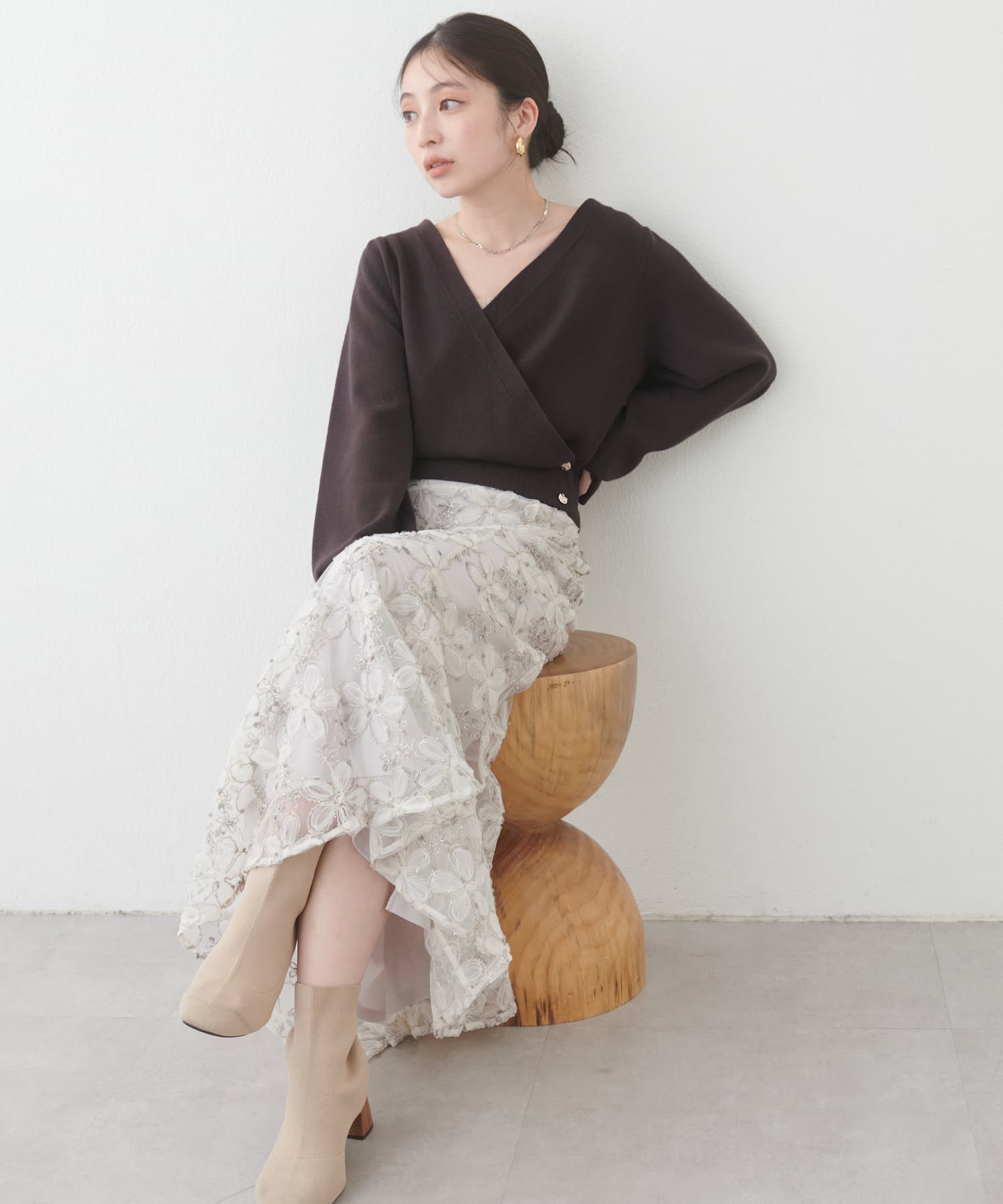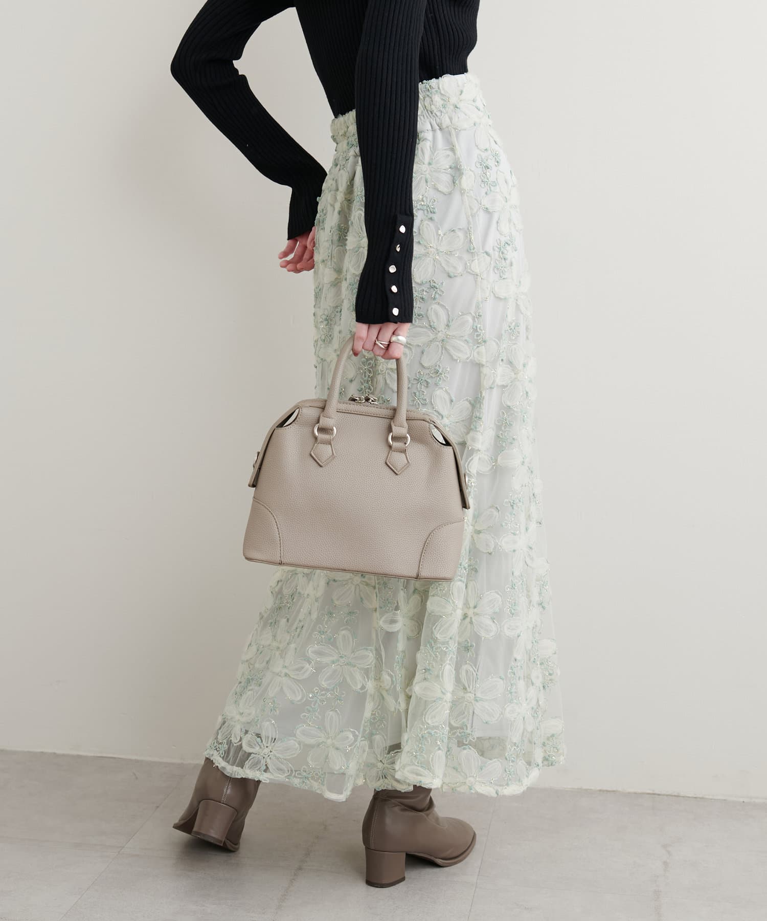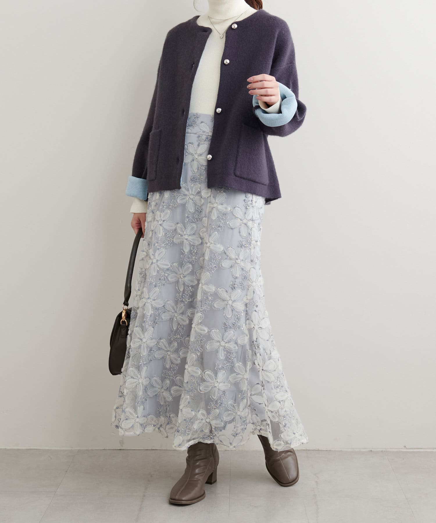 【SNSで話題!】長さ変えれる3Dフラワーレーススカート