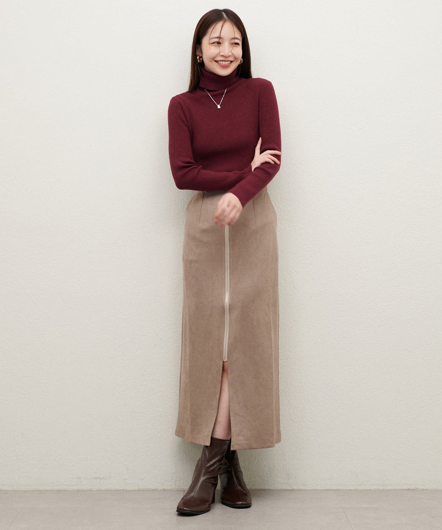 リブニットやジャケットとシンプルなキレイめスタイリングでも◎