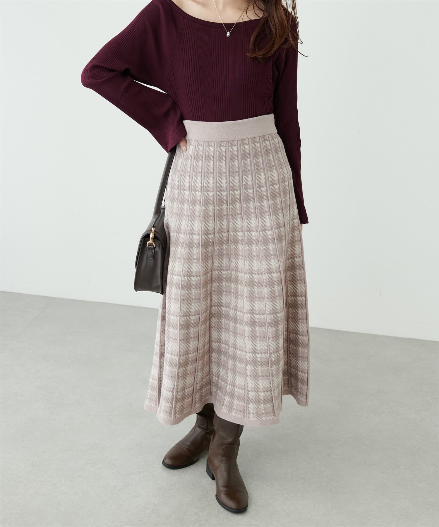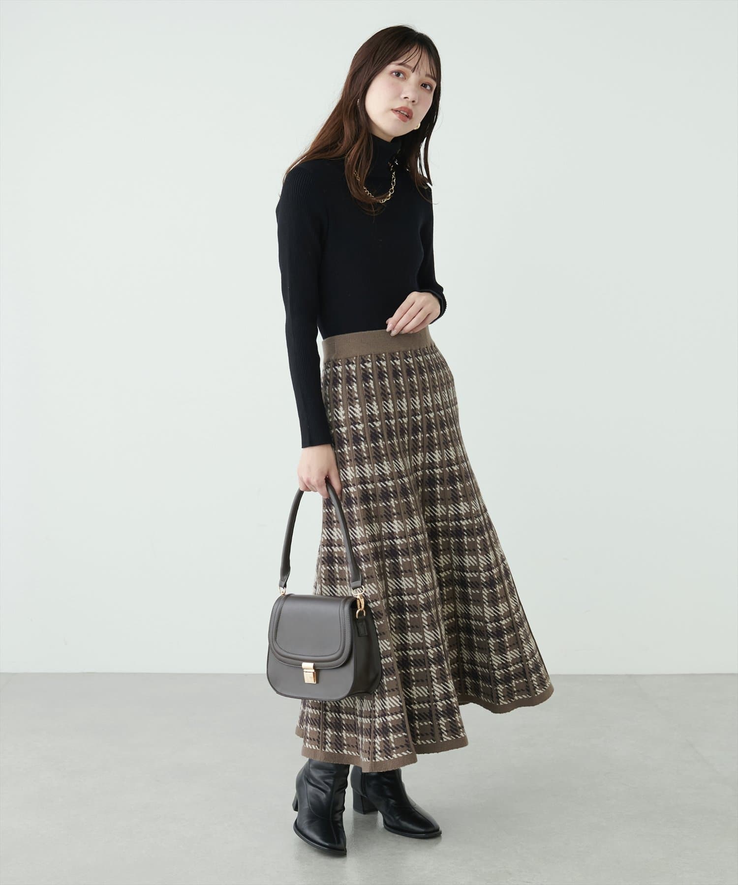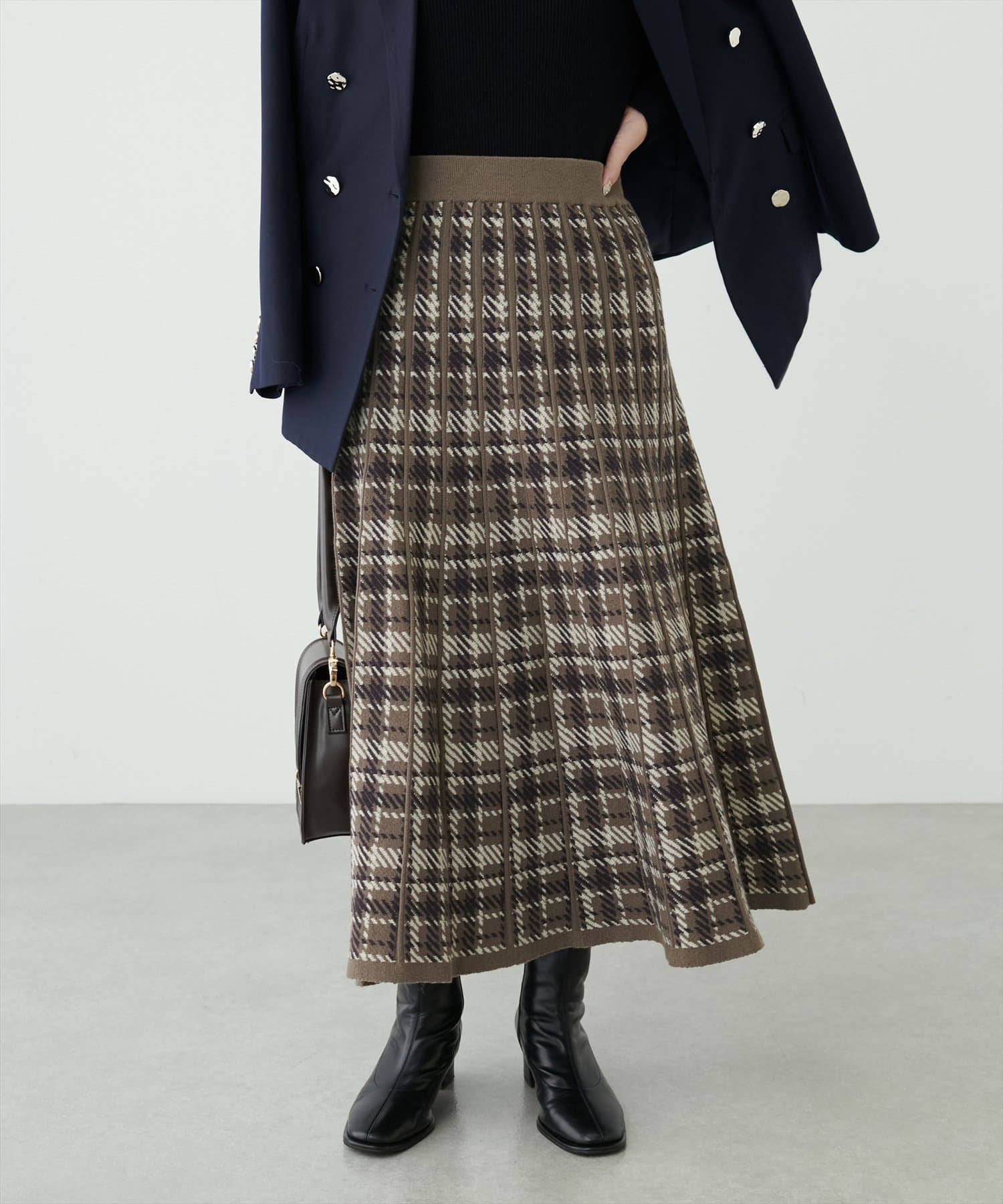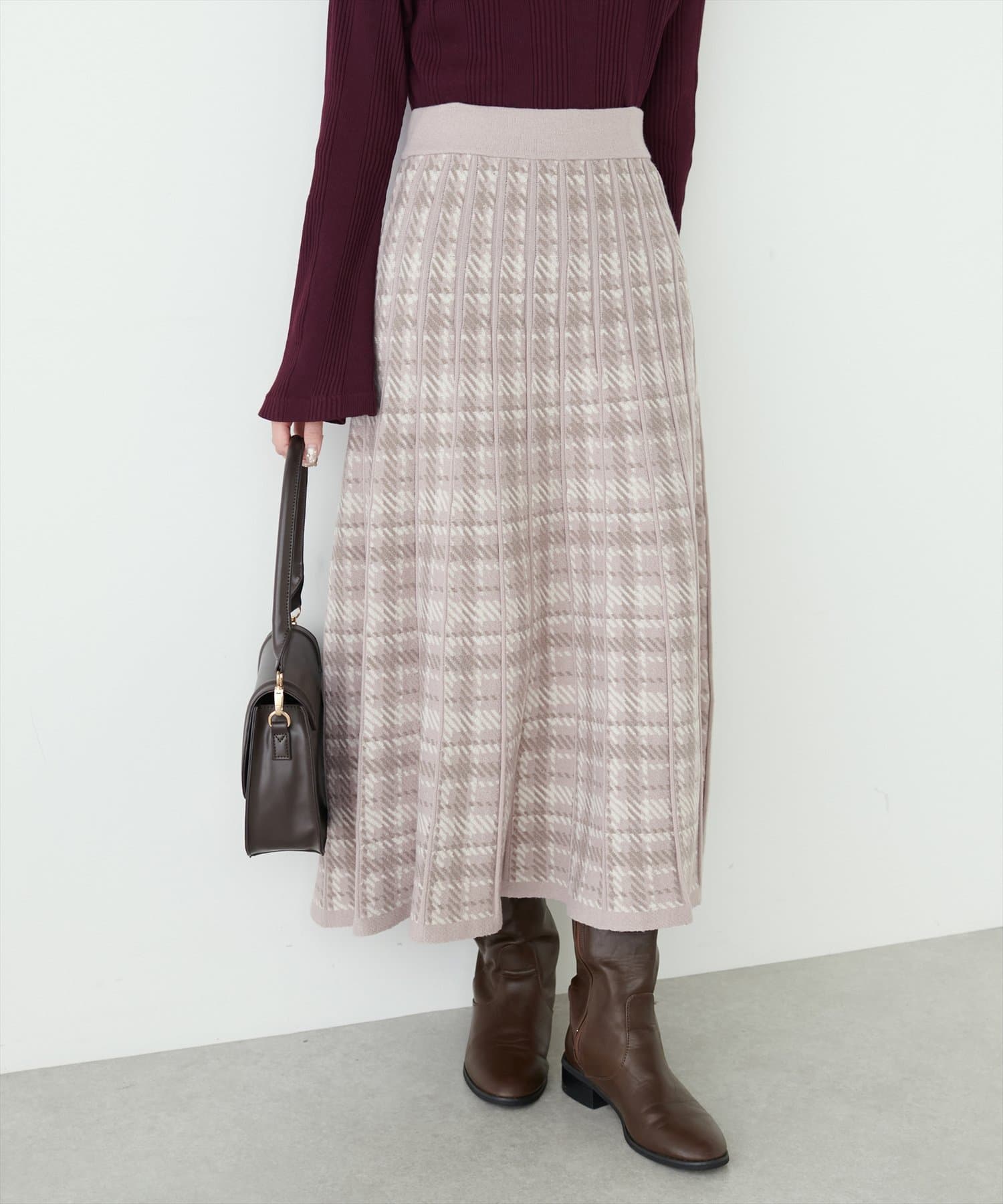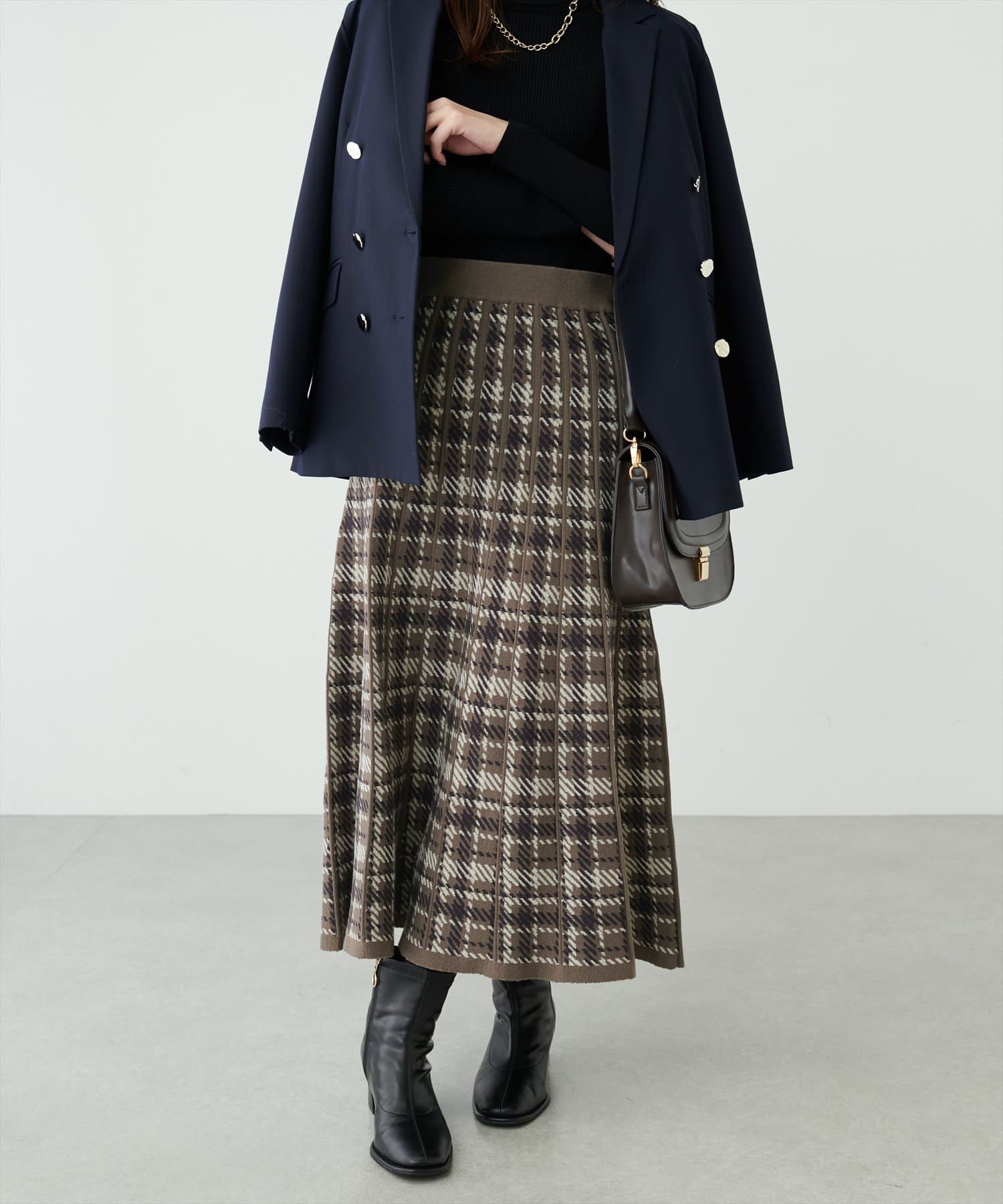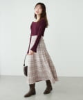 細かなチェック柄の配色とひらりと広がるプリーツで柔らかな印象に。