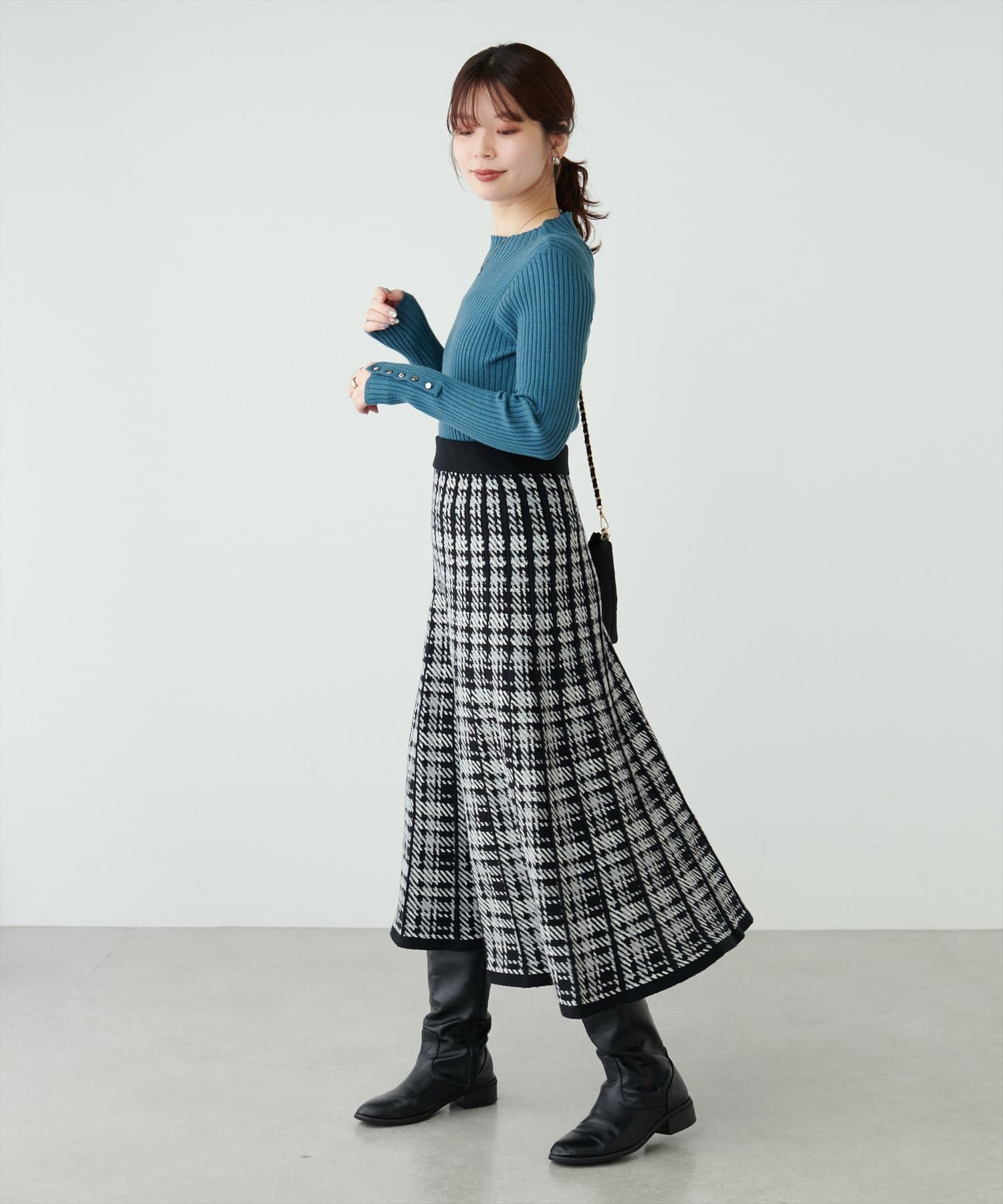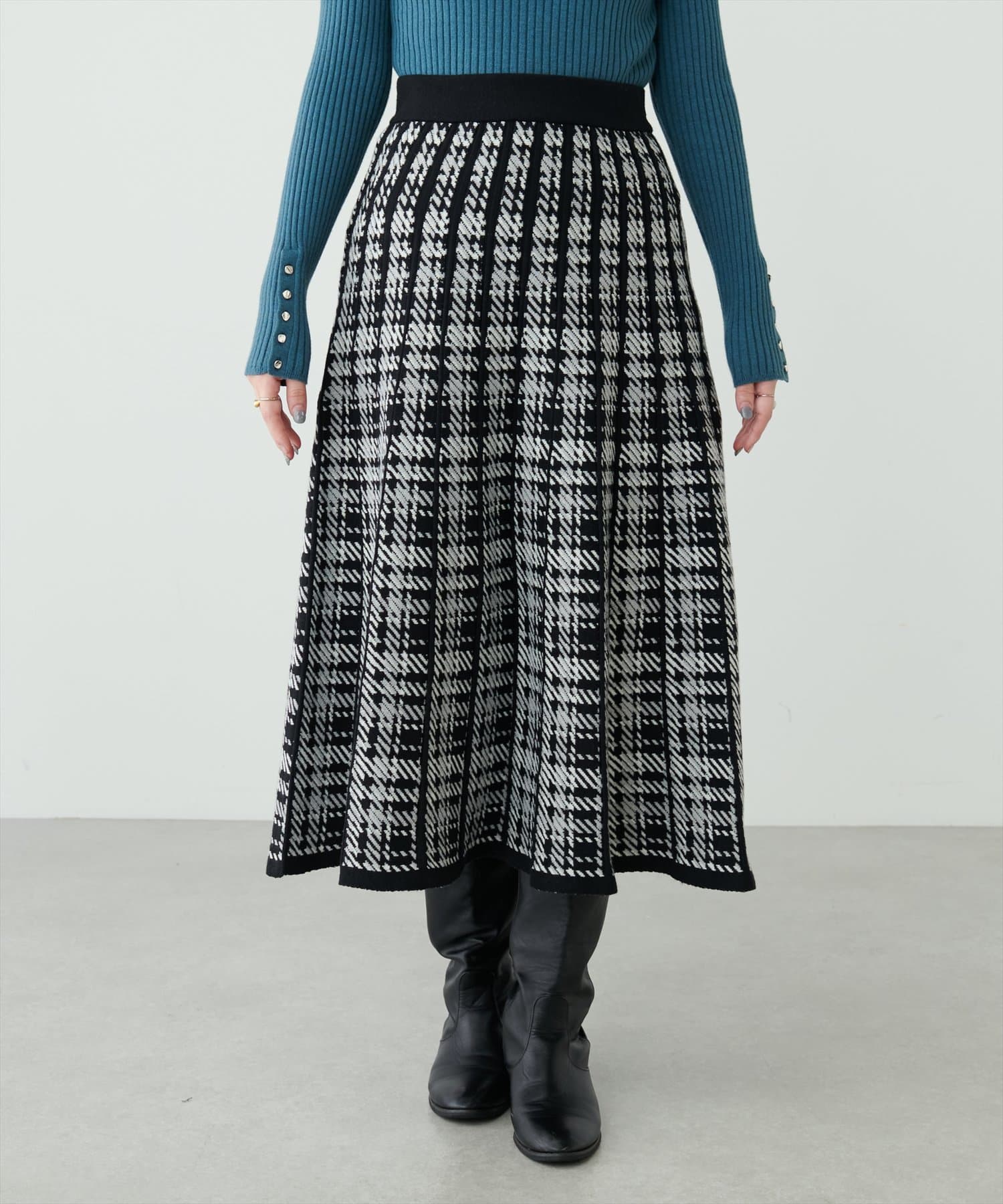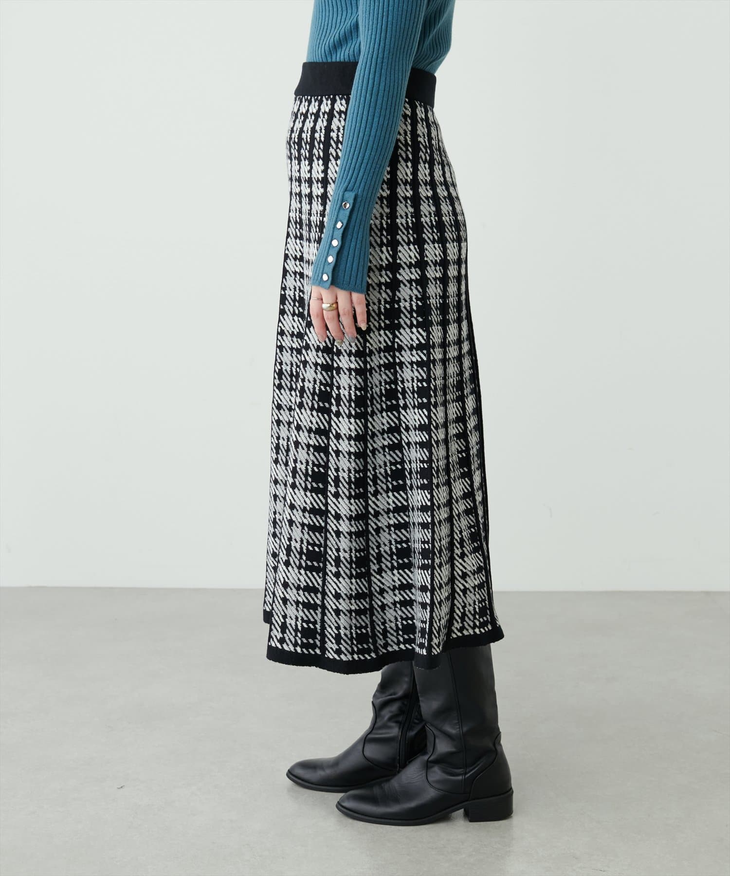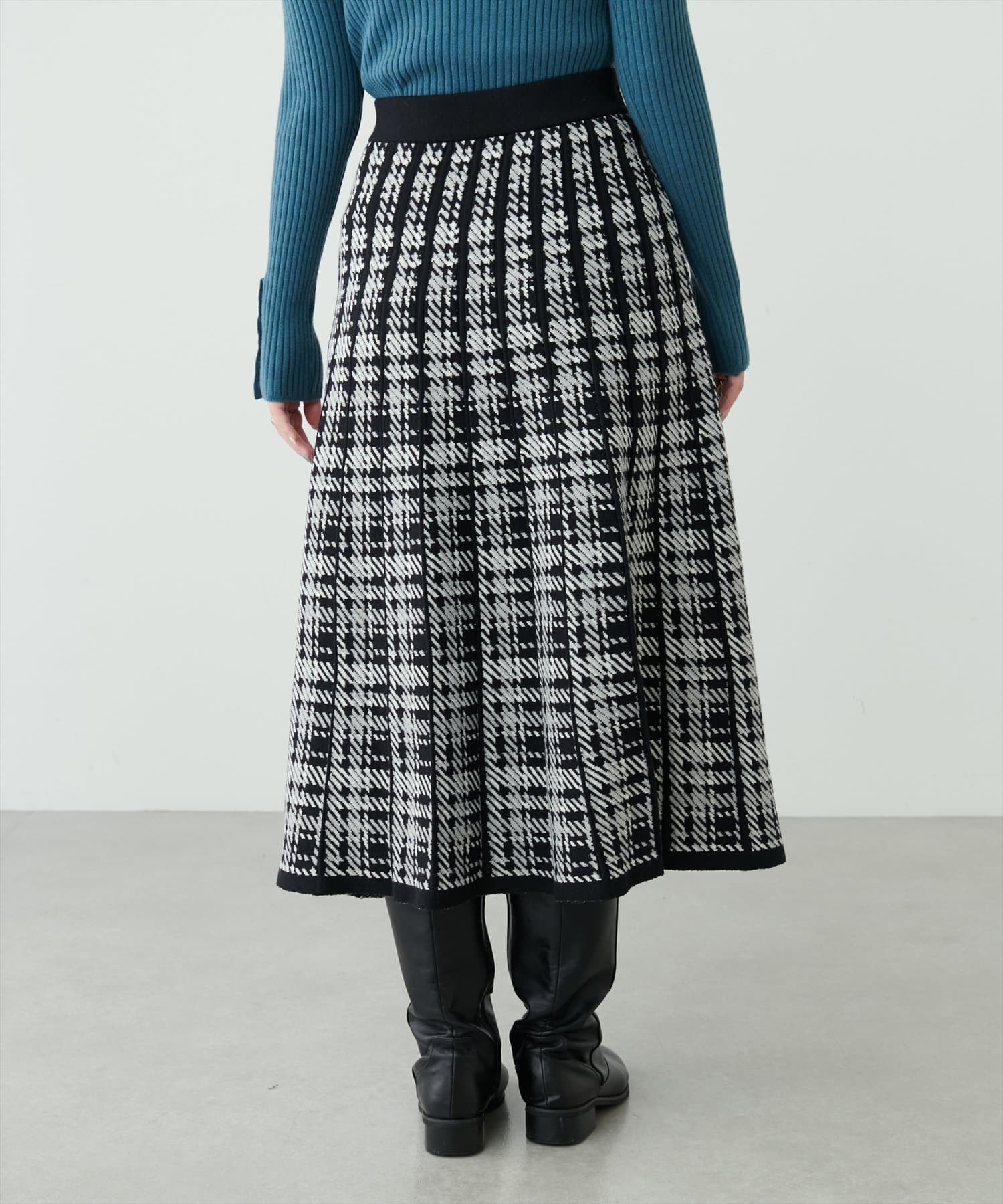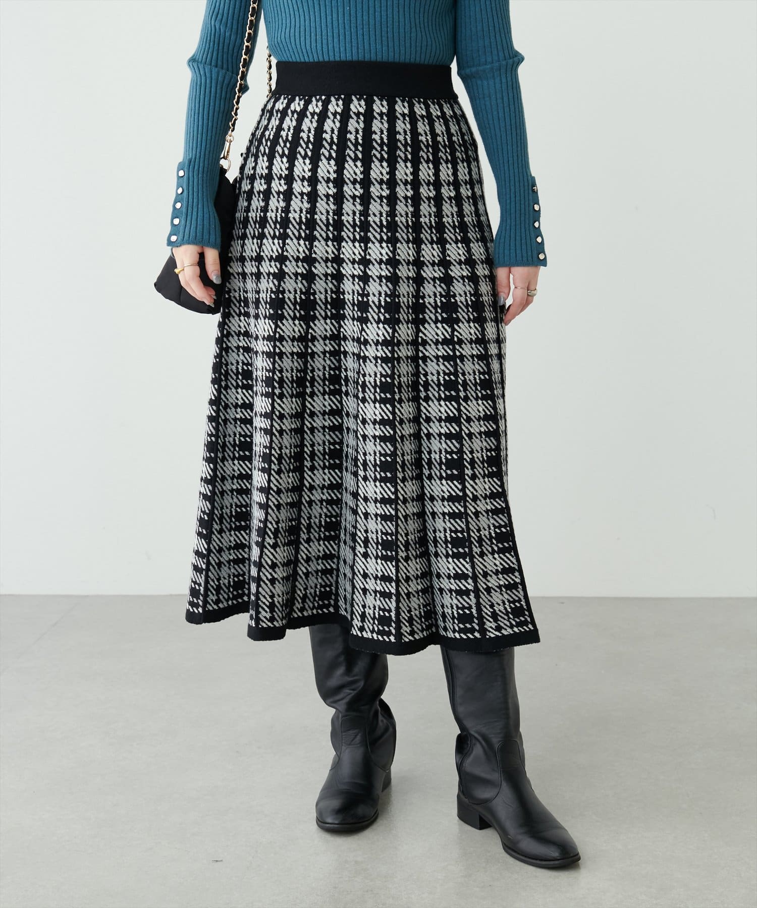 細かなチェック柄の配色とひらりと広がるプリーツで柔らかな印象に。