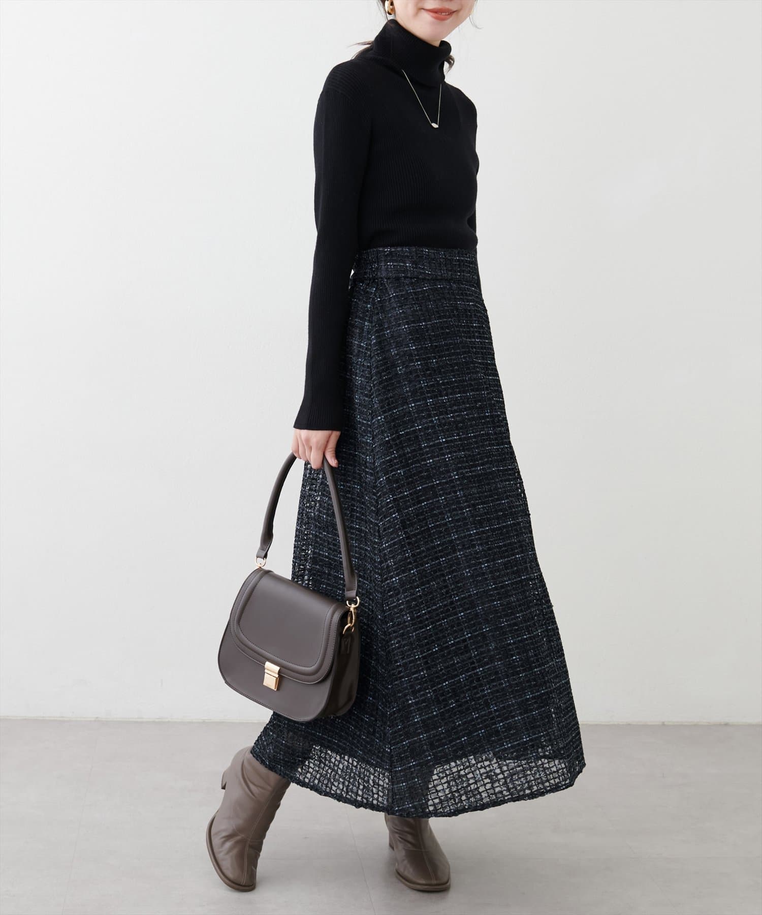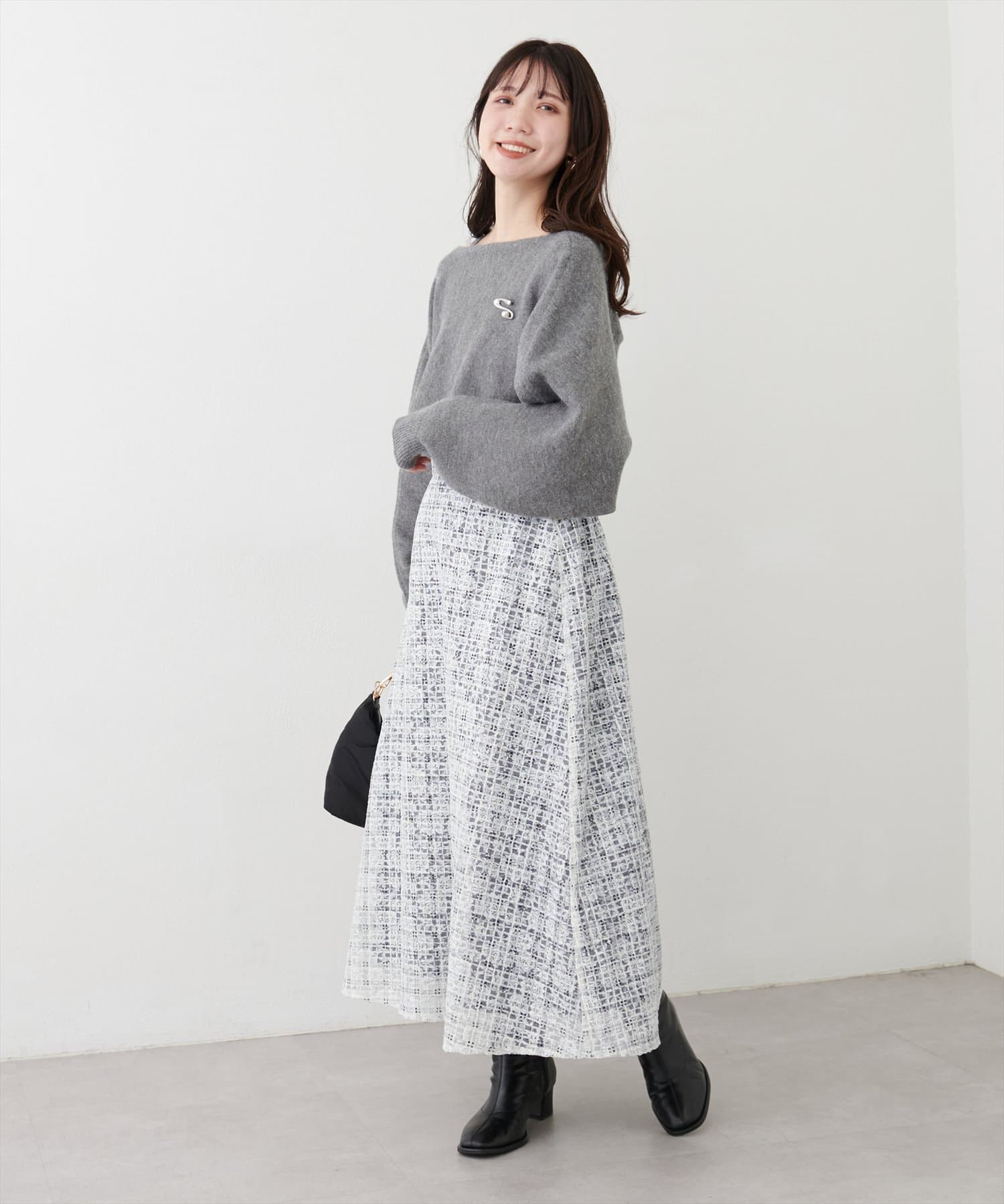 ざっくり編みのニットやドレープ感のあるブラウスと合わせればフェミニンな印象に。
