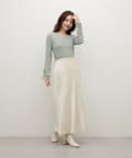 ウエストが後ろゴム仕様なので、トップスをボトムインしたスタイリングもアウトでもきれいにお召し頂けます。