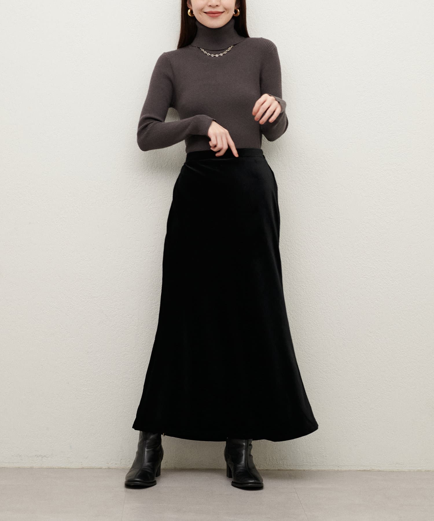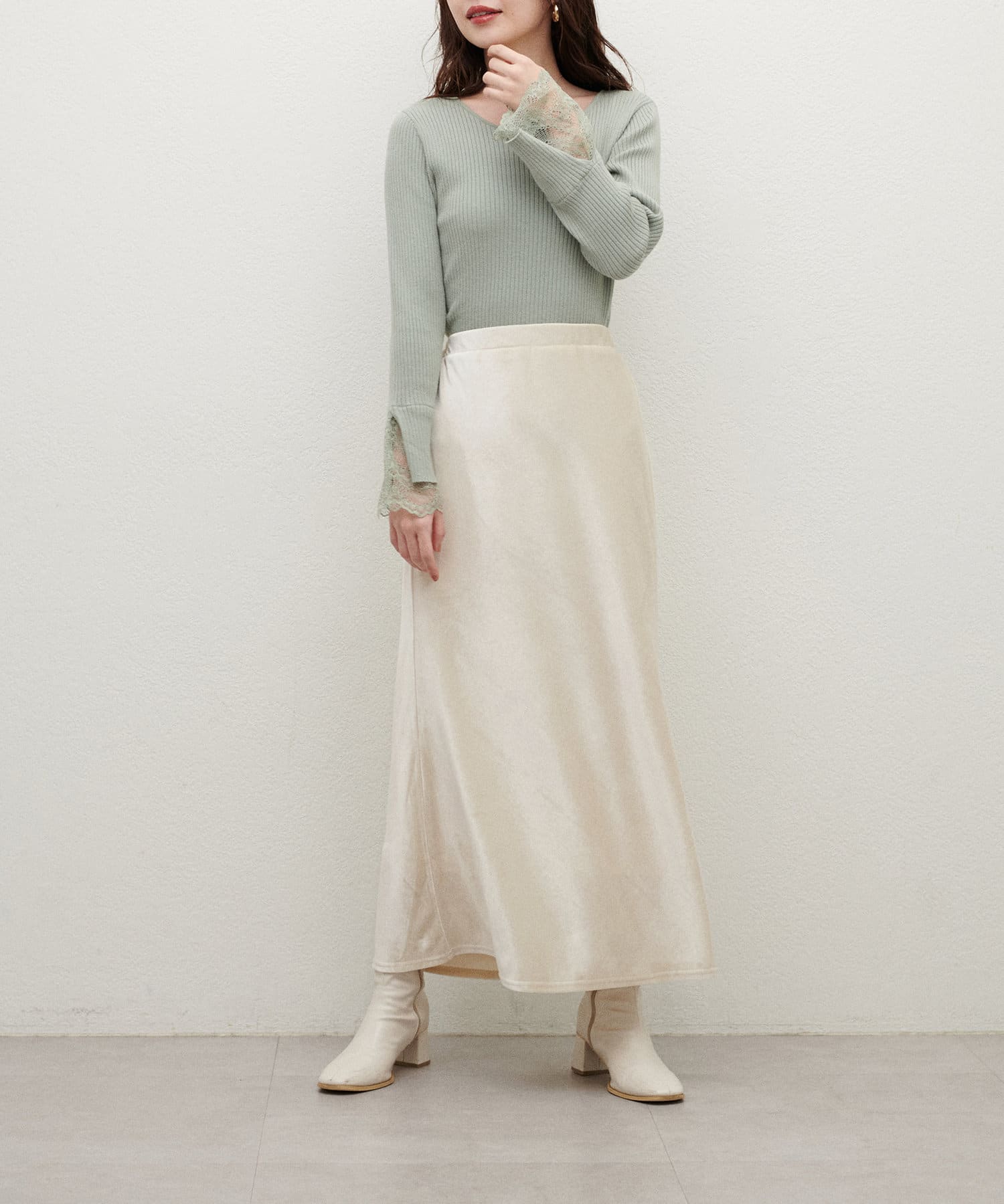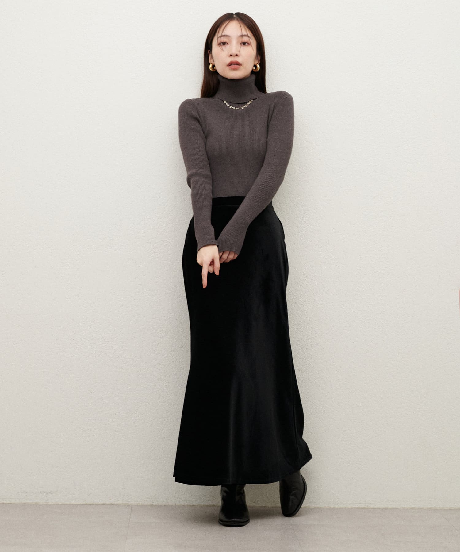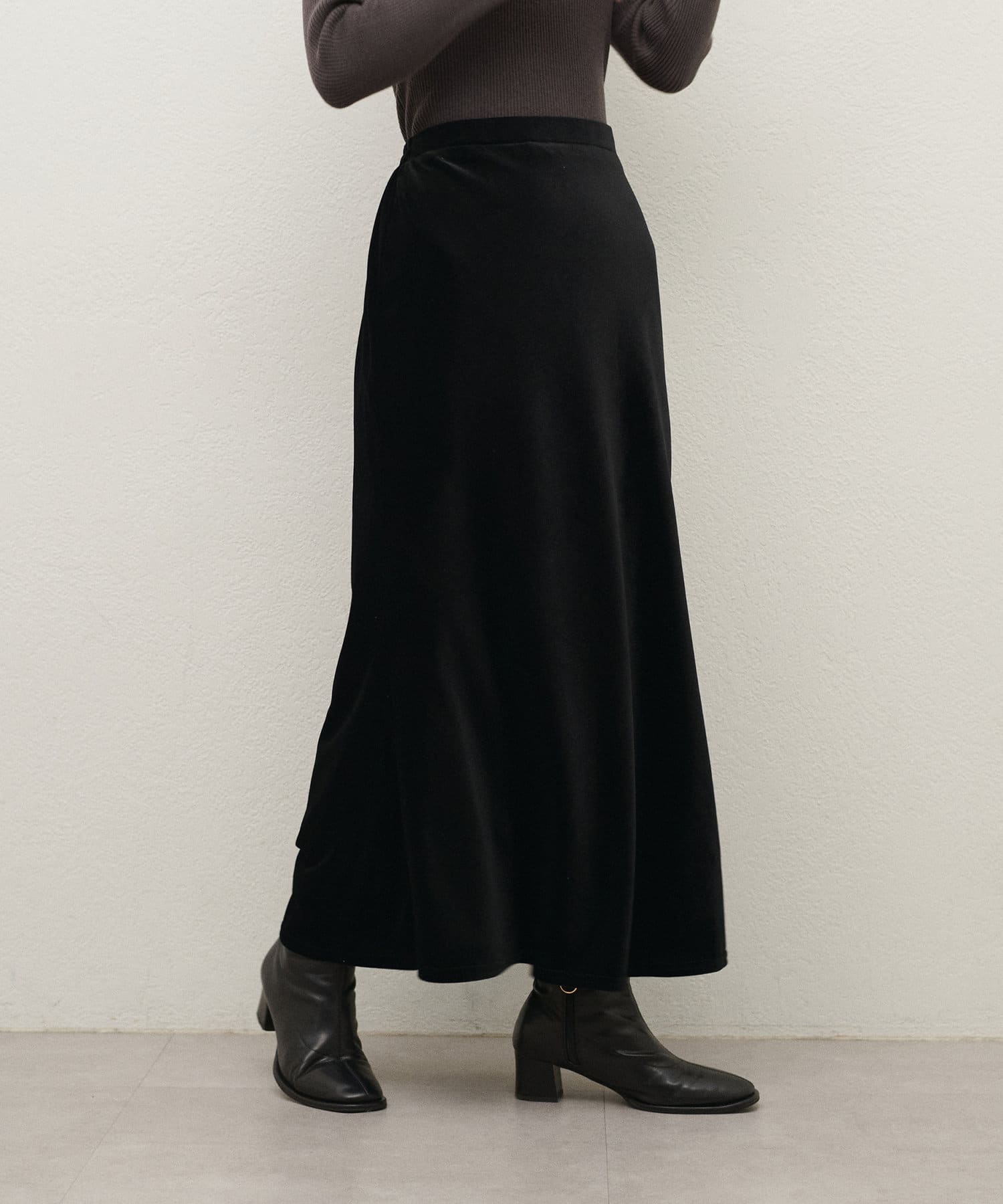 ベロアのテクスチャーで魅せる大人なスタイルに仕上がり、