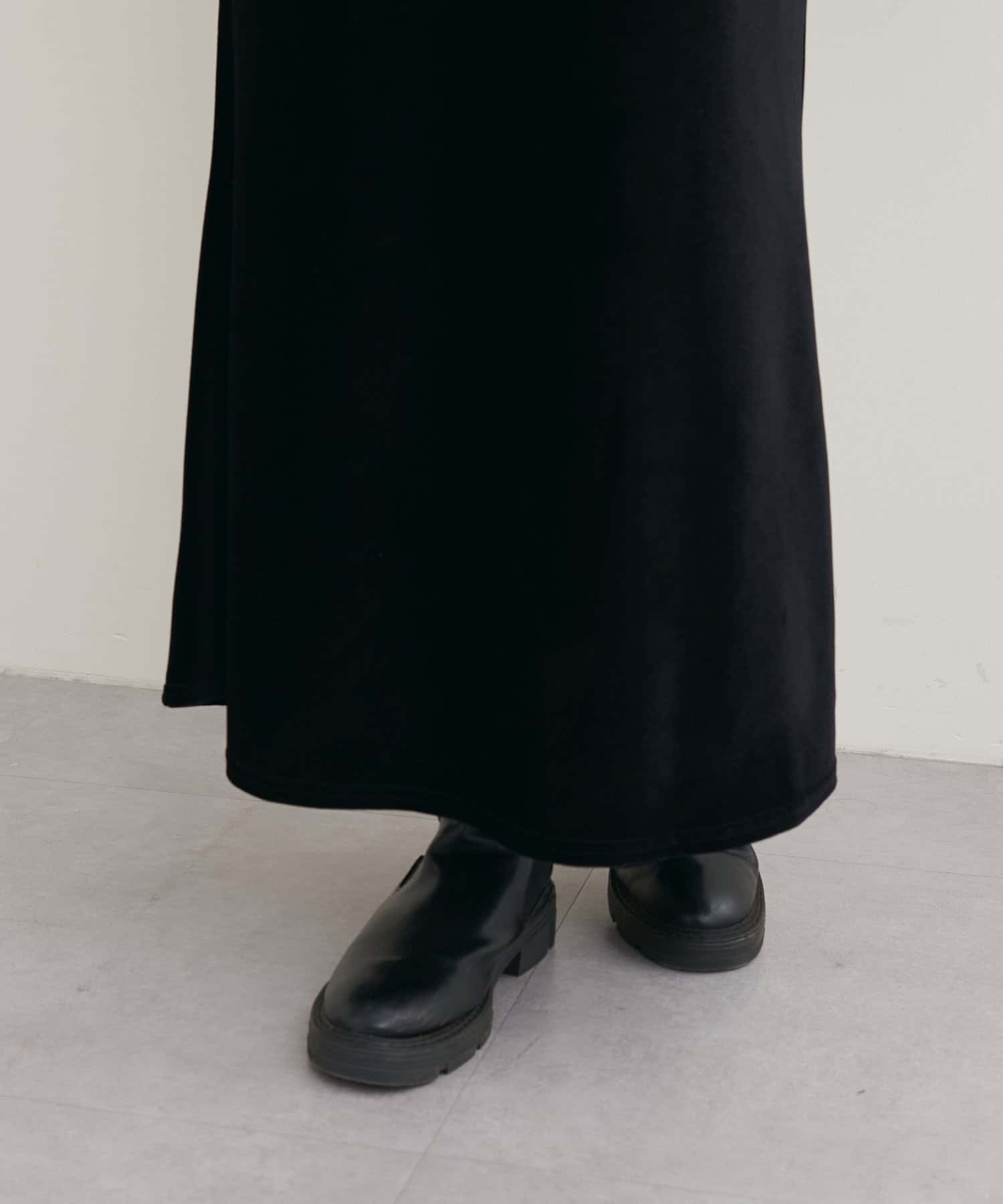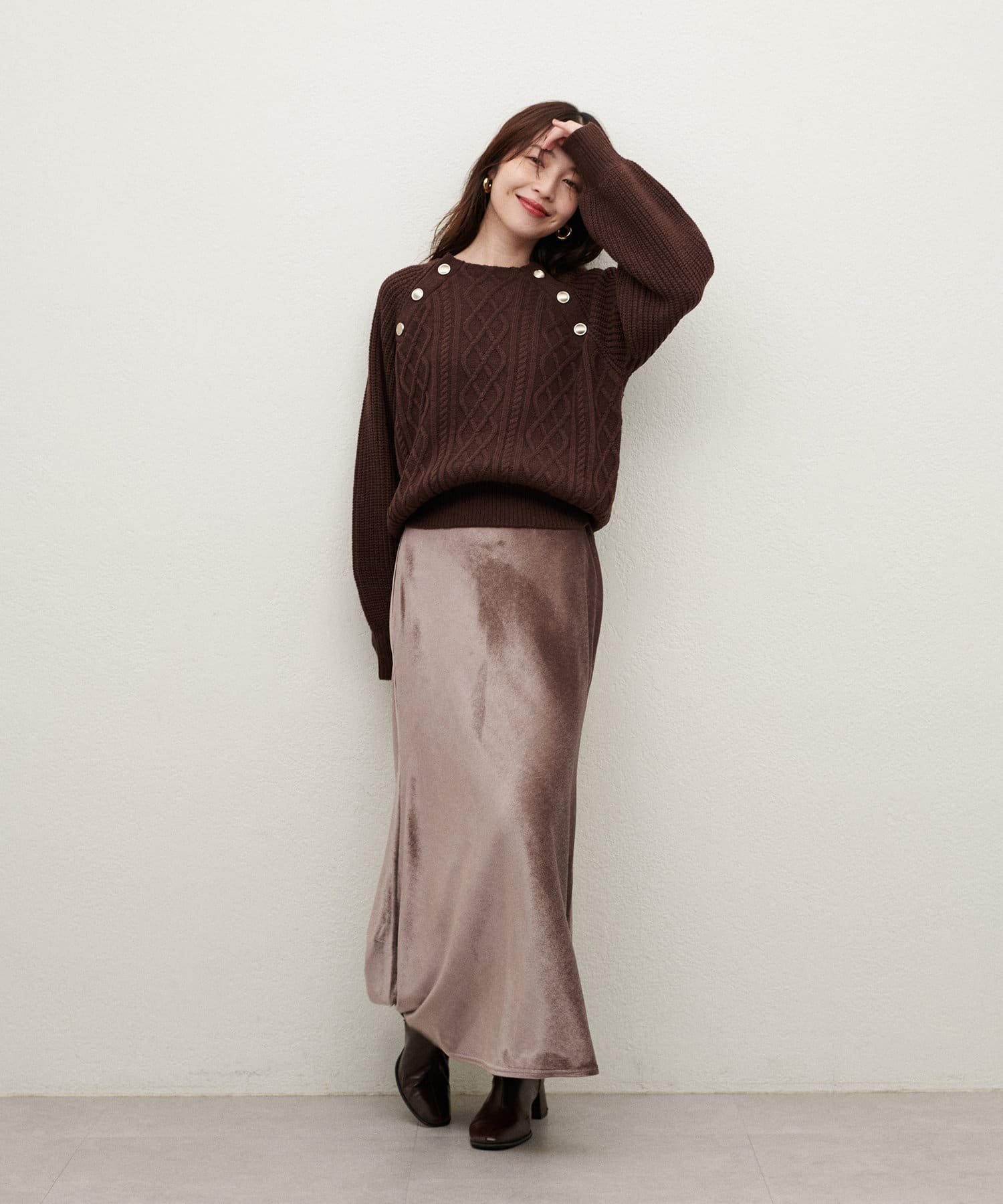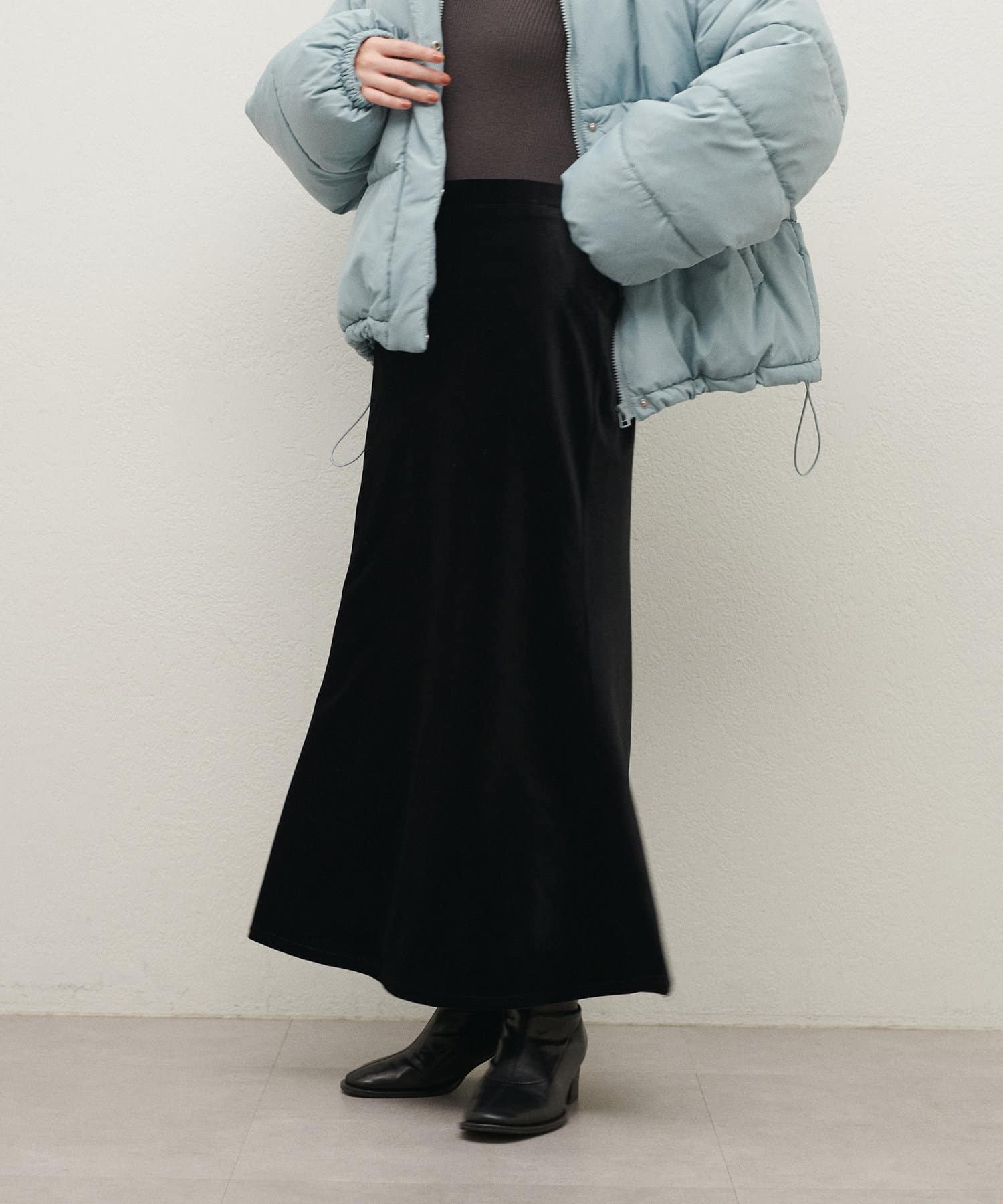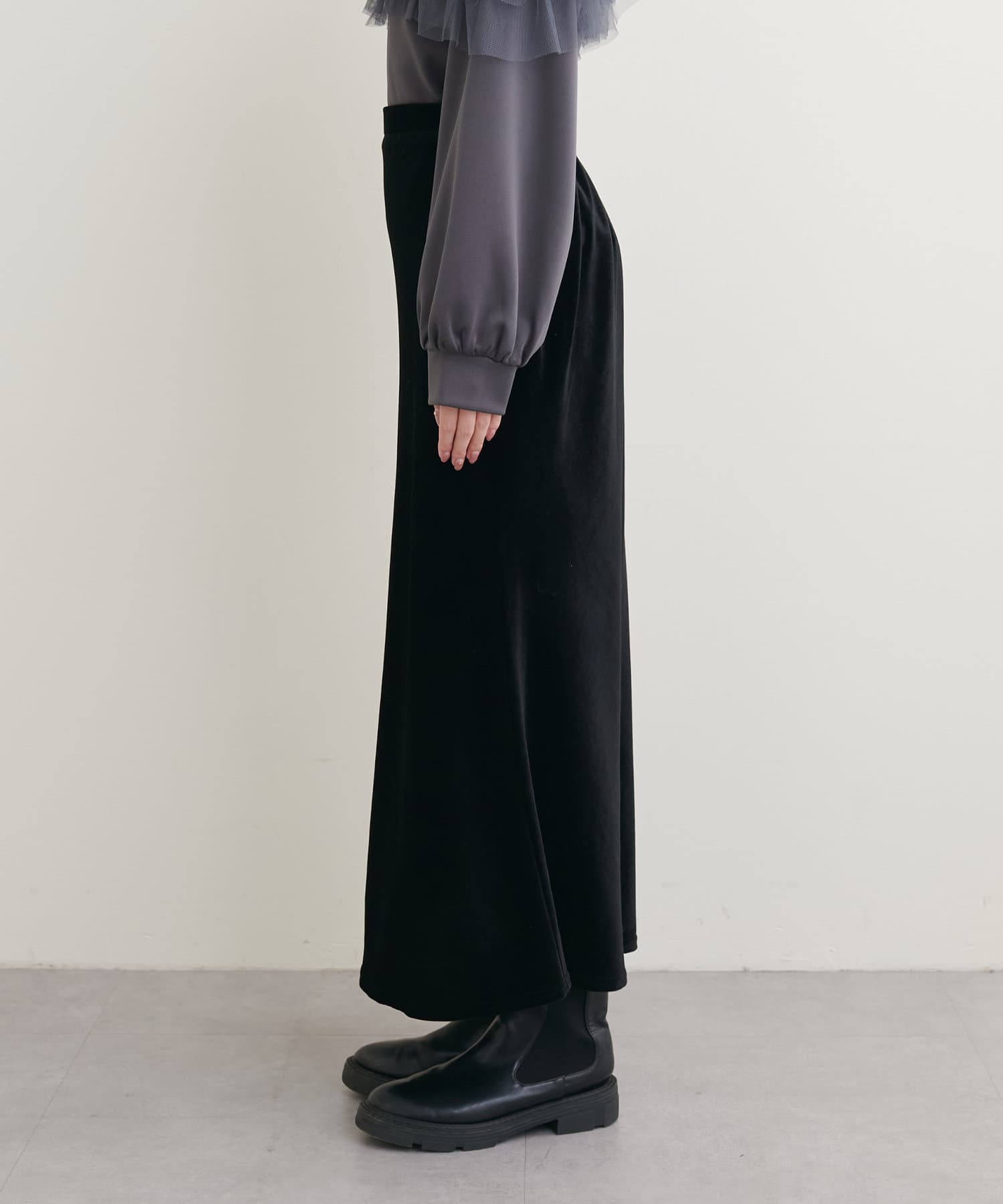 ベロアのテクスチャーで魅せる大人なスタイルに仕上がり、