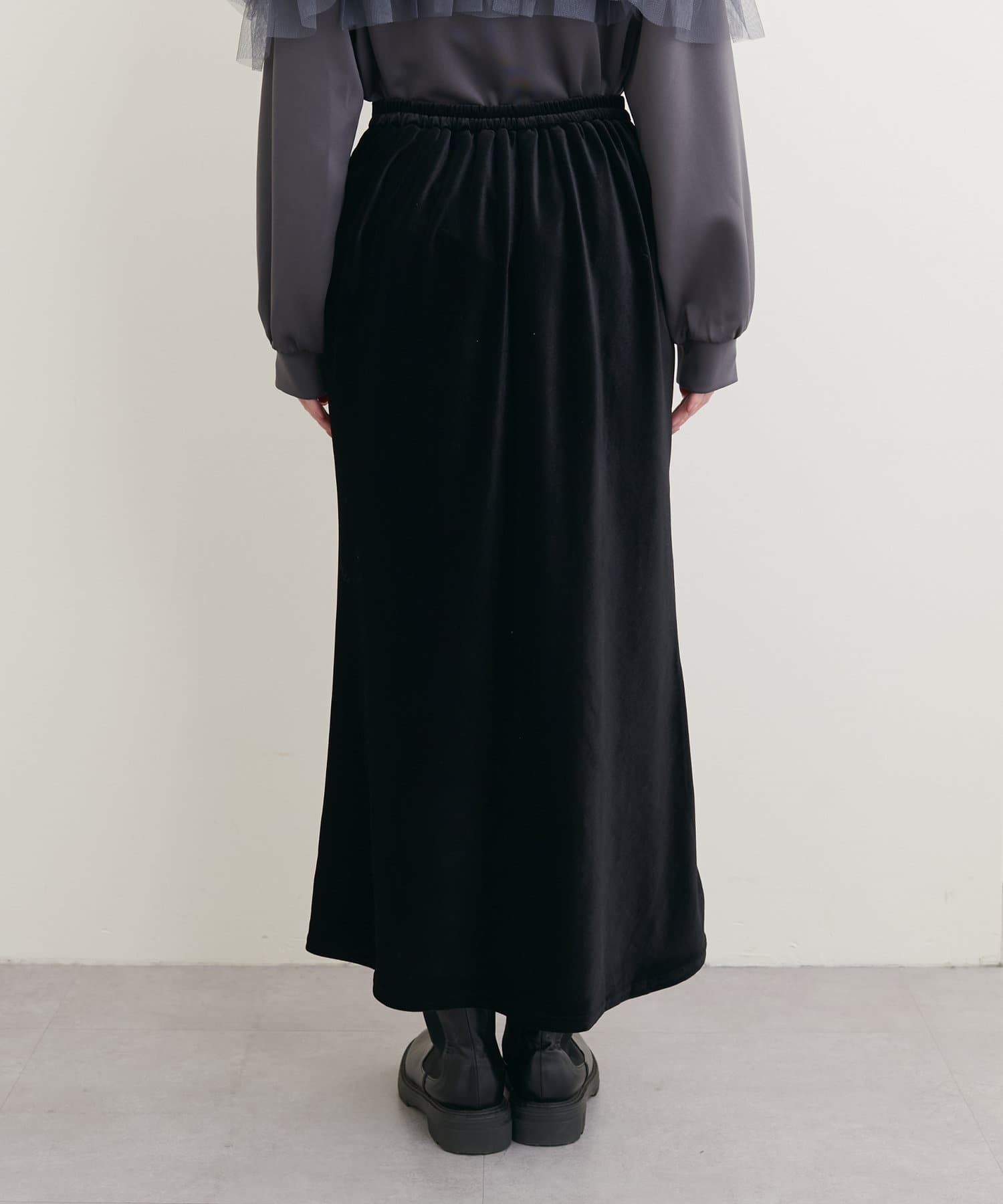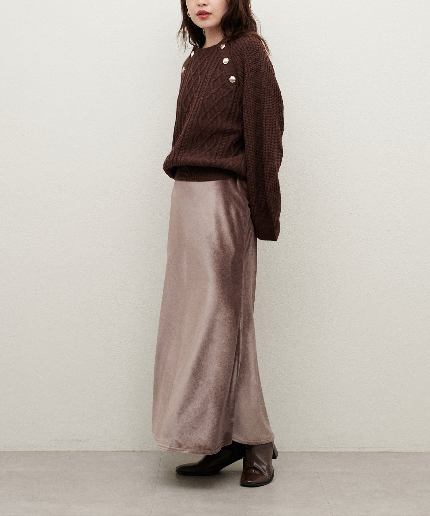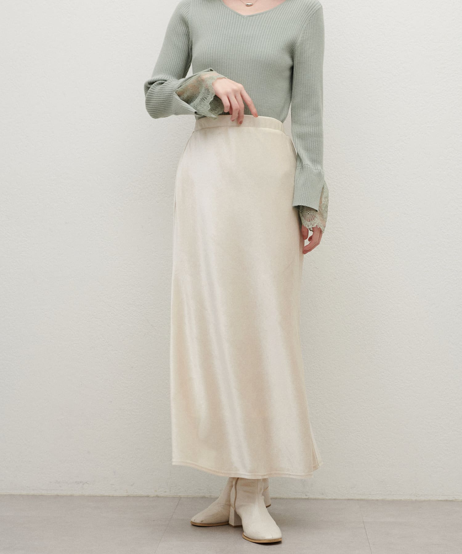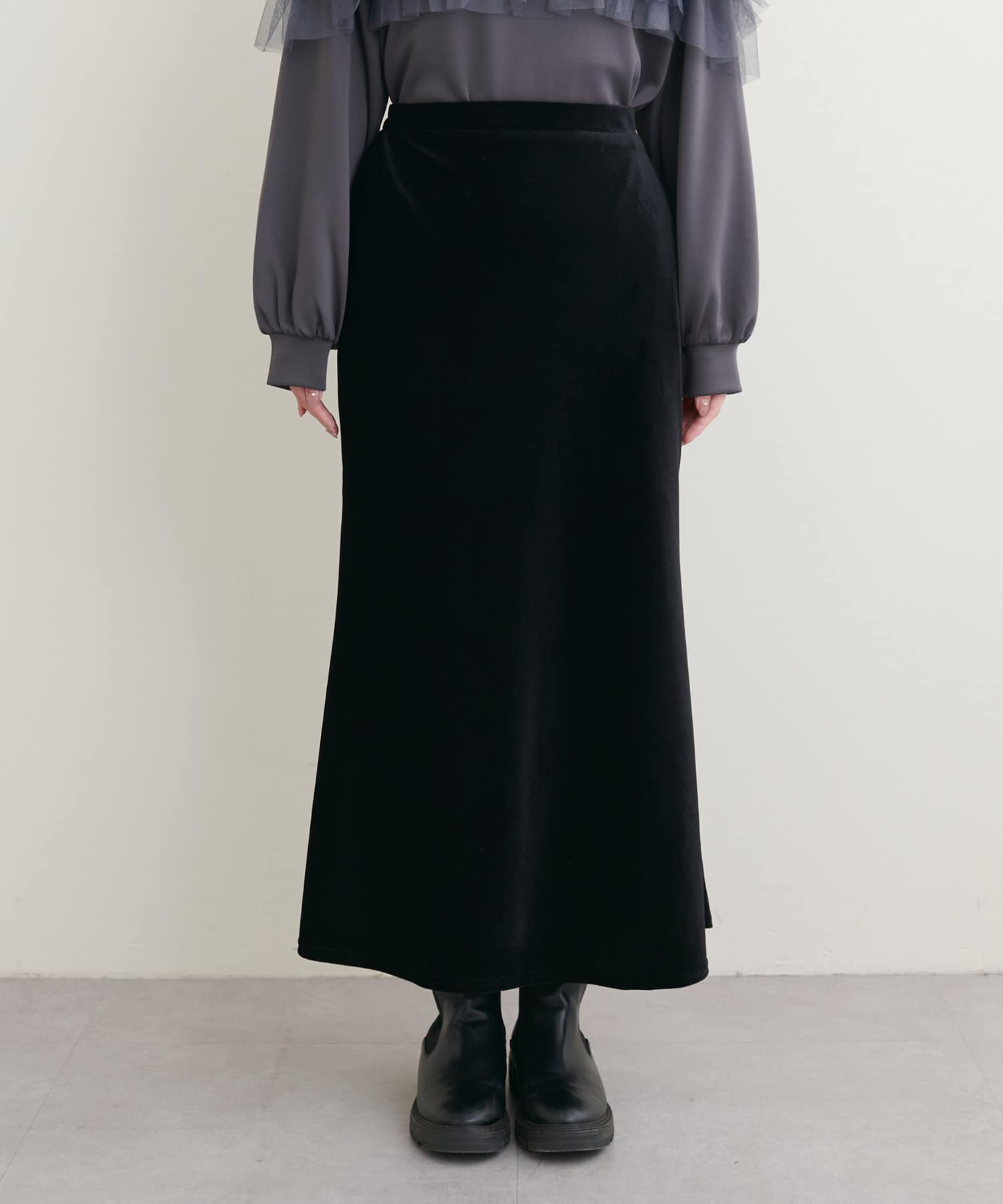 ベロアのテクスチャーで魅せる大人なスタイルに仕上がり、