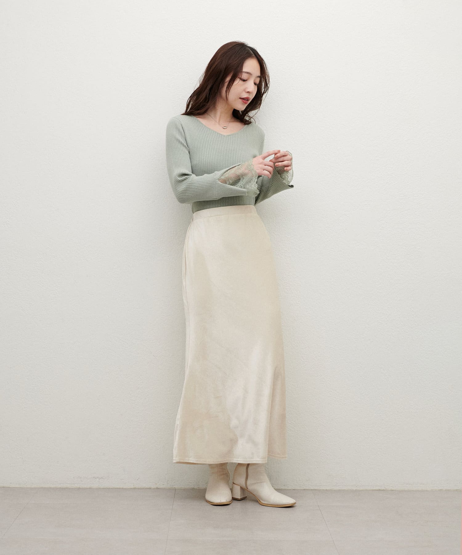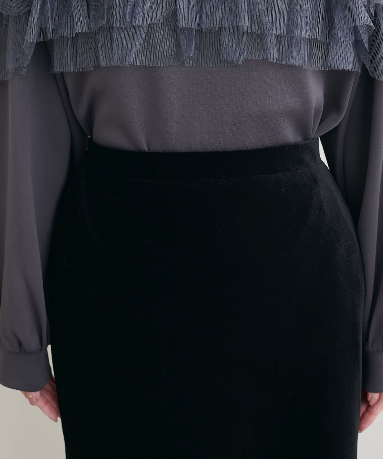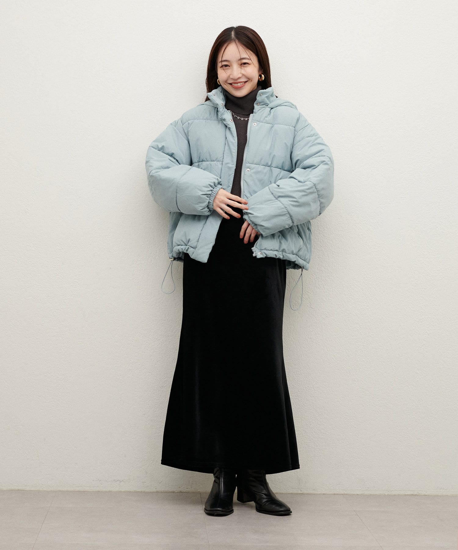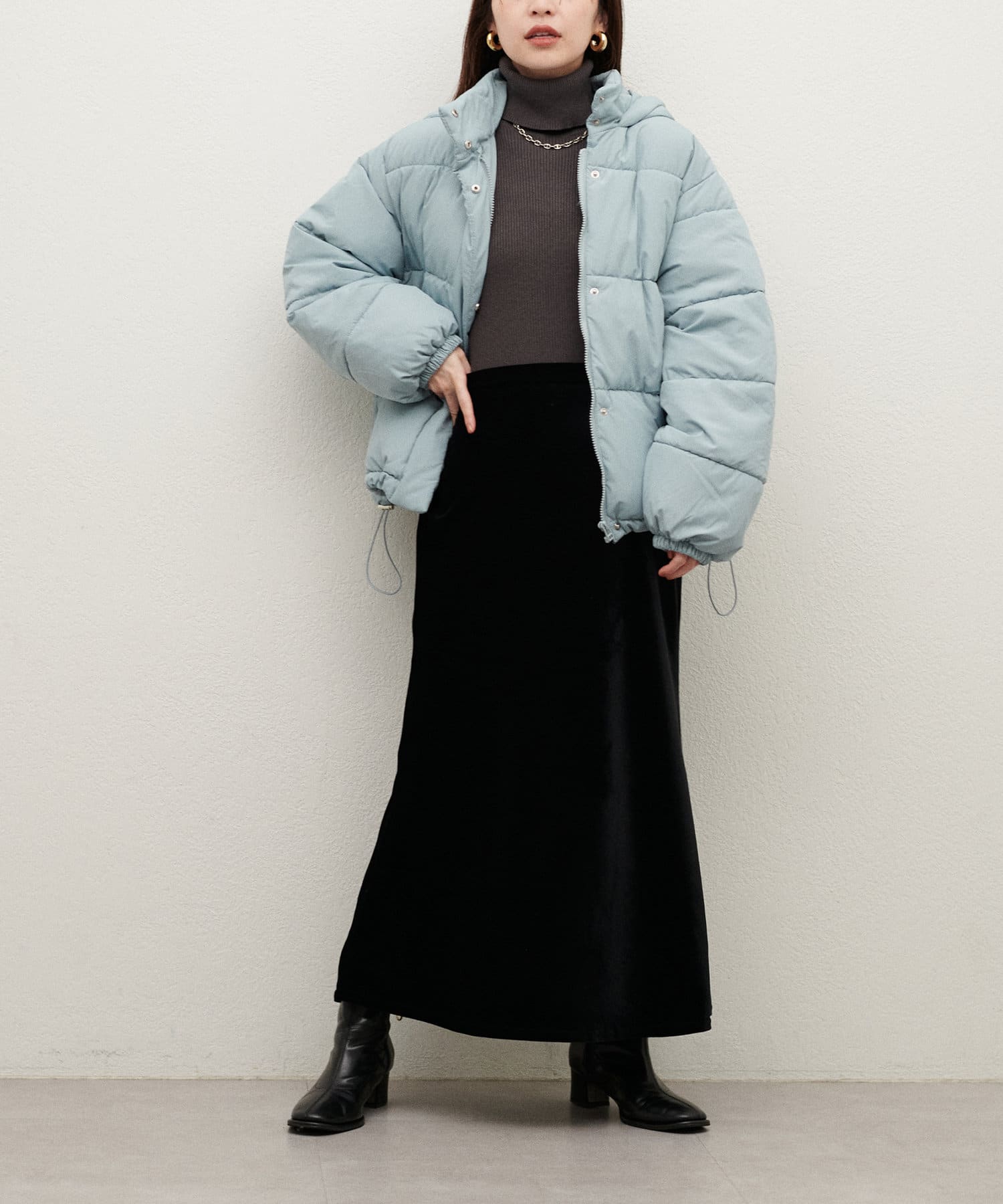 ベロアのテクスチャーで魅せる大人なスタイルに仕上がり、