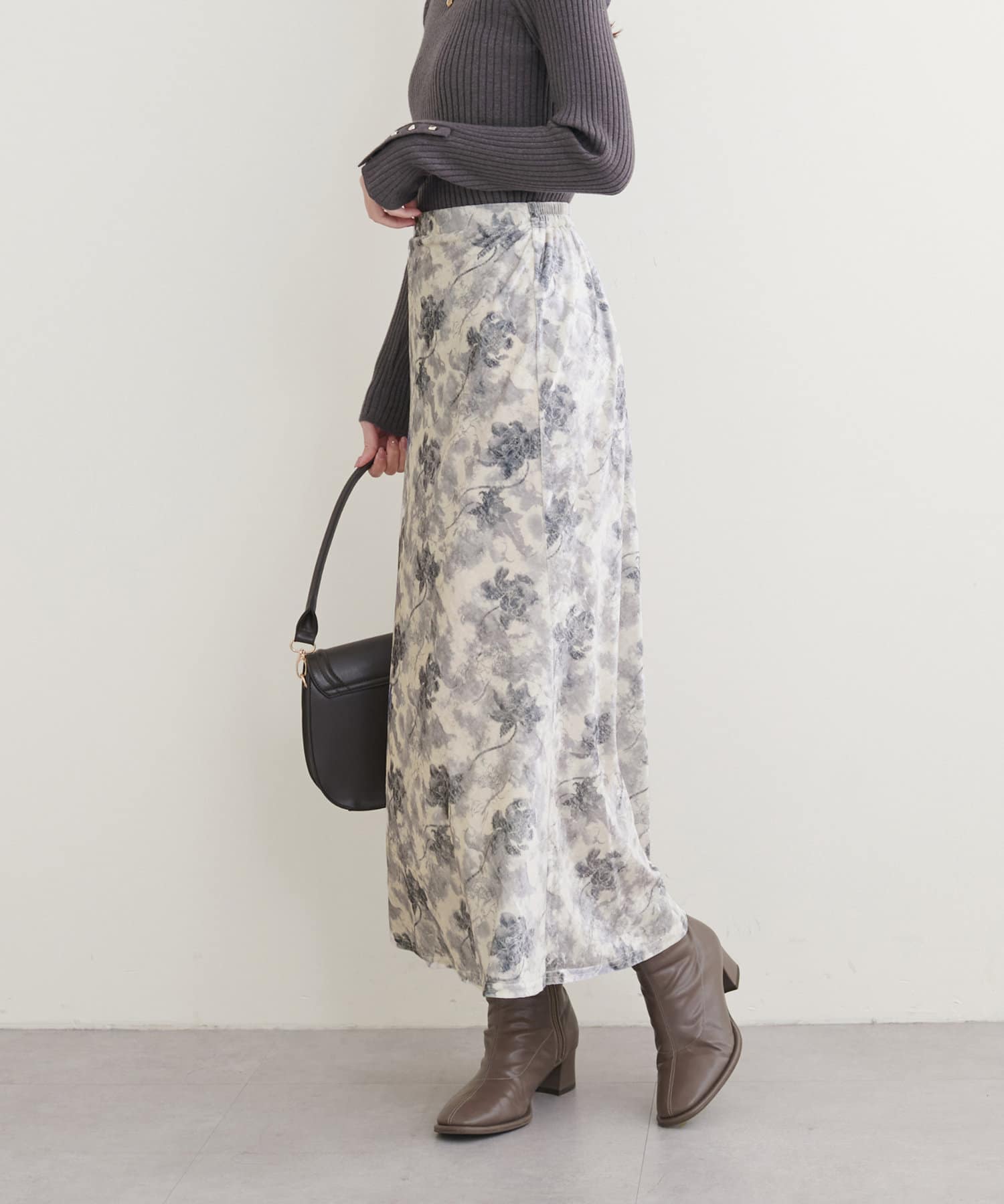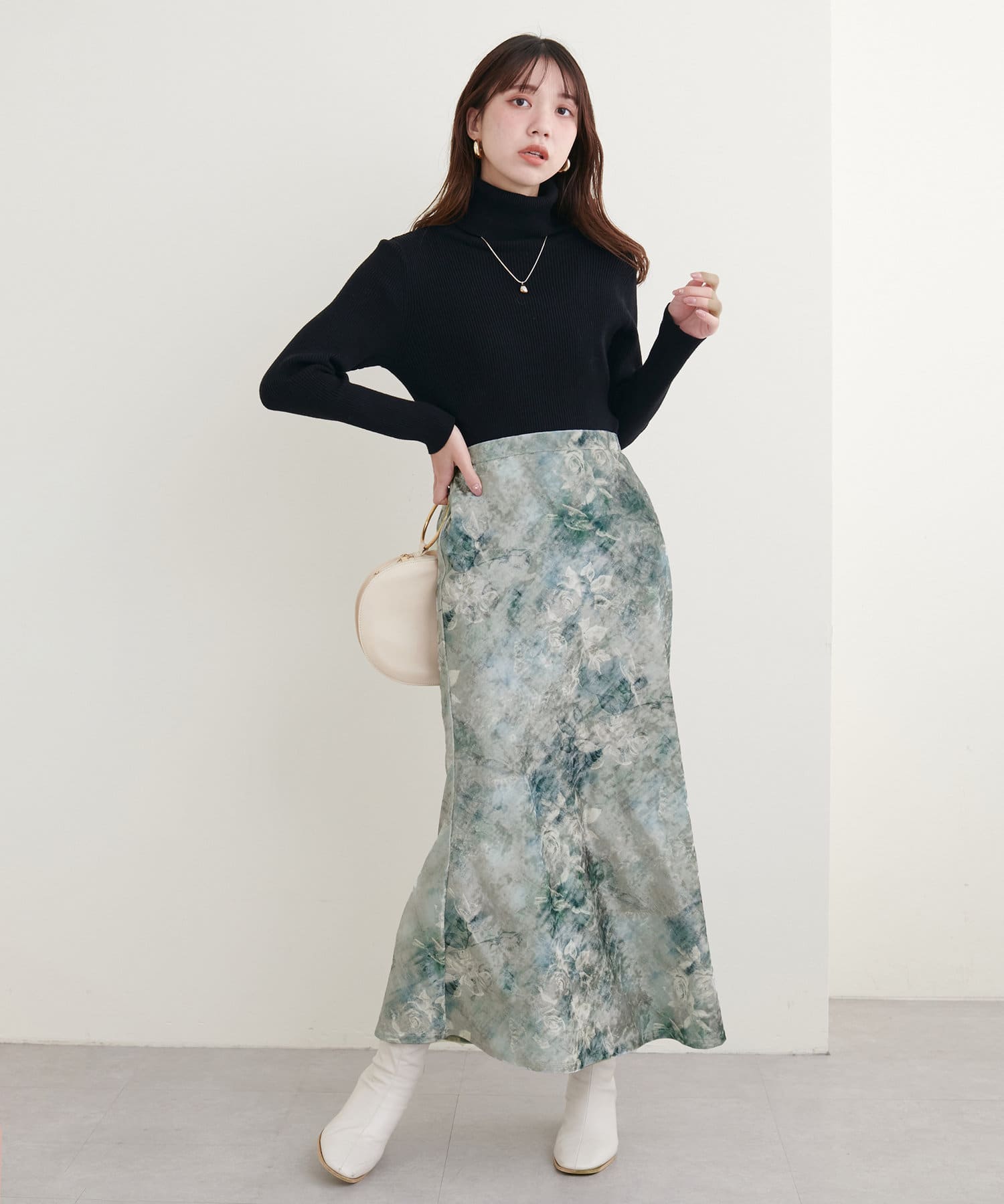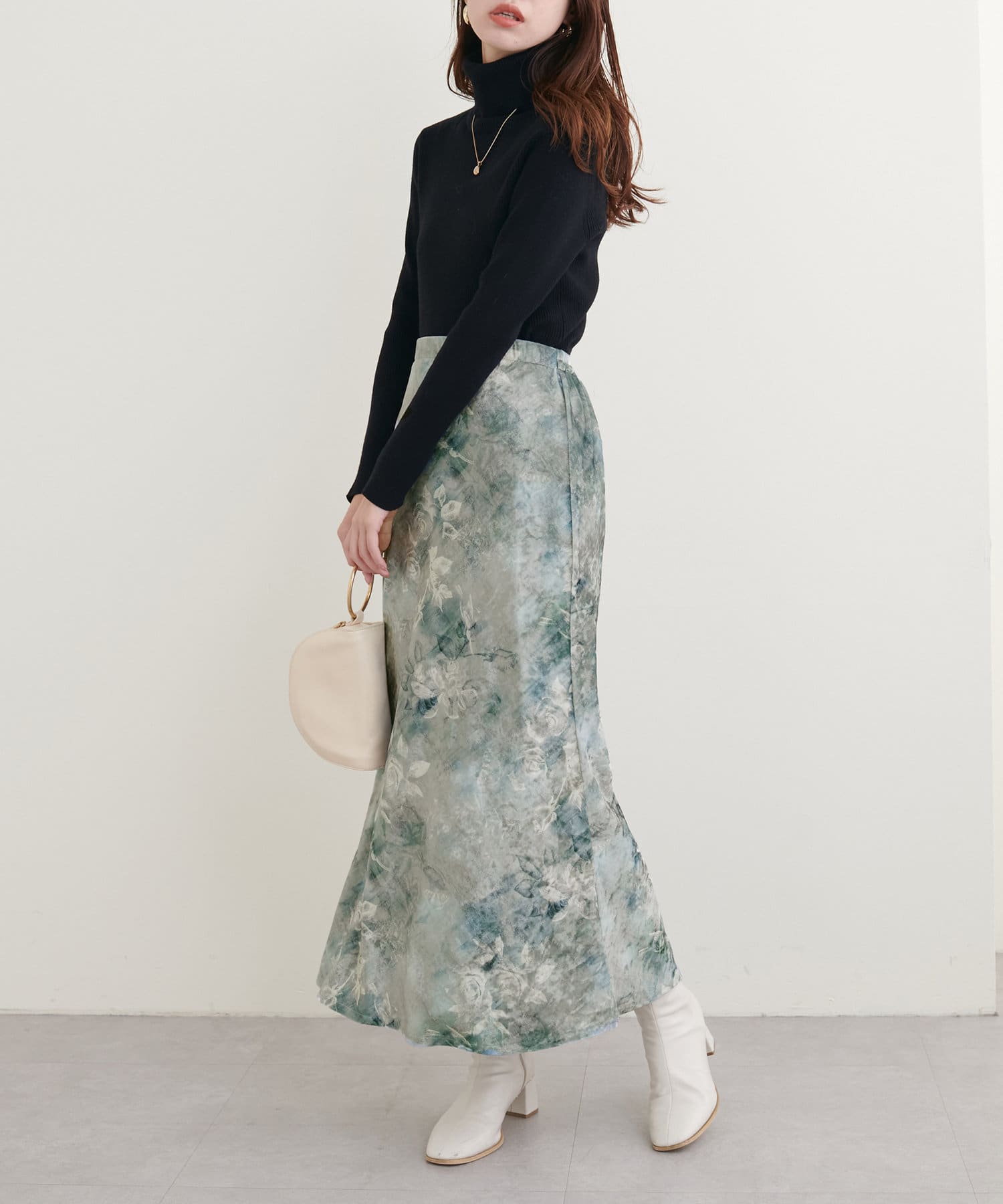 柄は1枚で存在感があるのでシンプルなトップスと合わせるのがおすすめ。