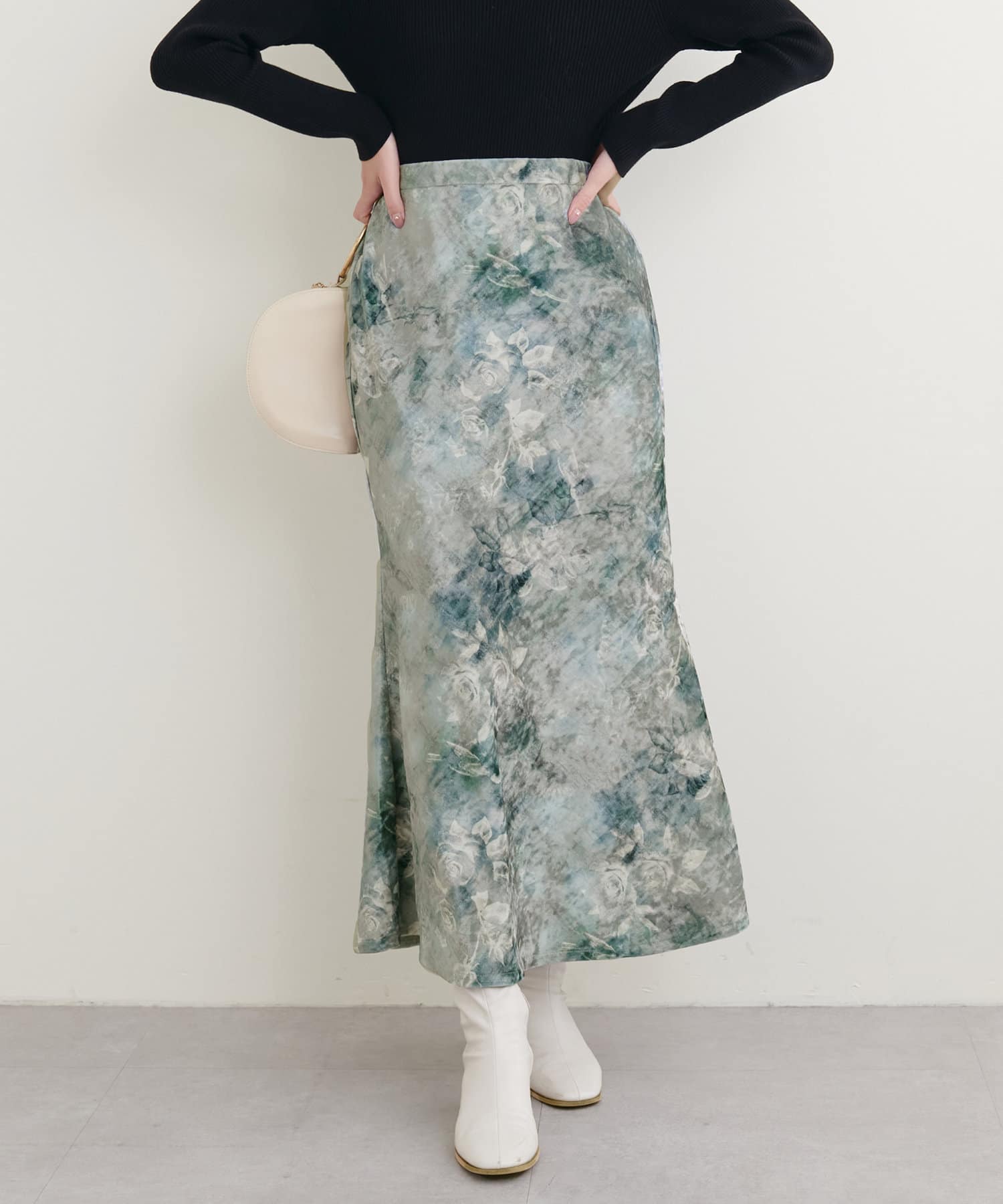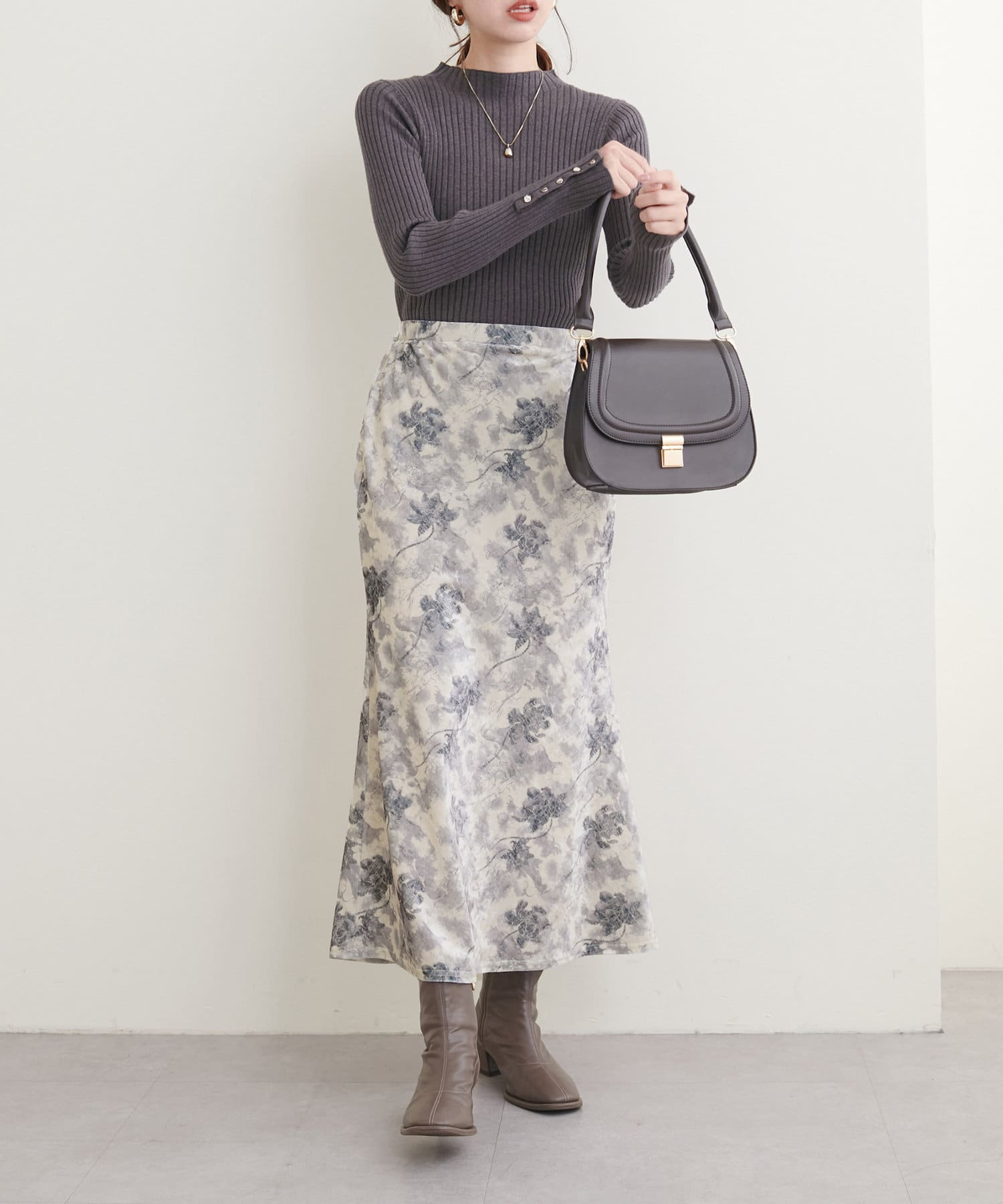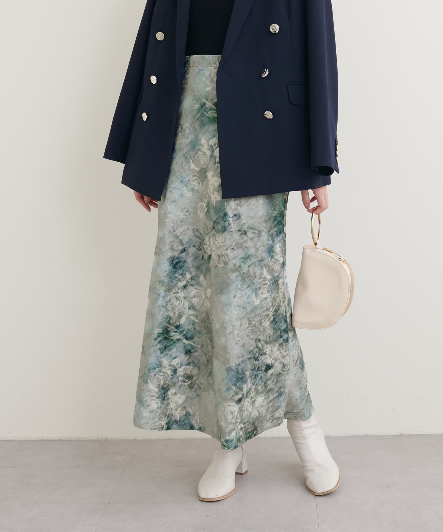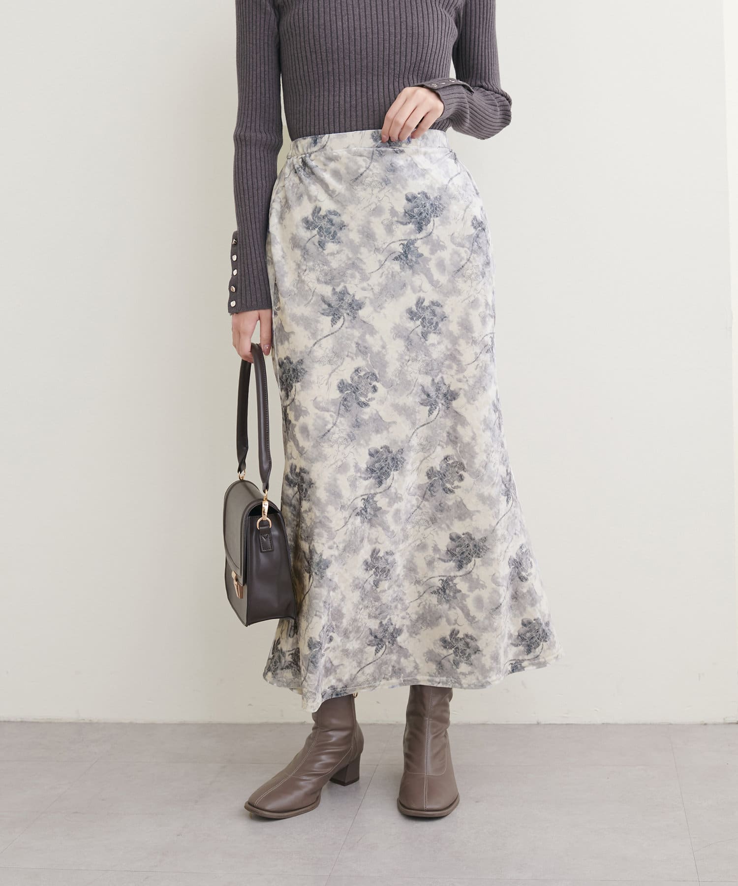 柄は1枚で存在感があるのでシンプルなトップスと合わせるのがおすすめ。