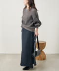 ボリューム感があるトップスでもメリハリのついたスタイリングになります。