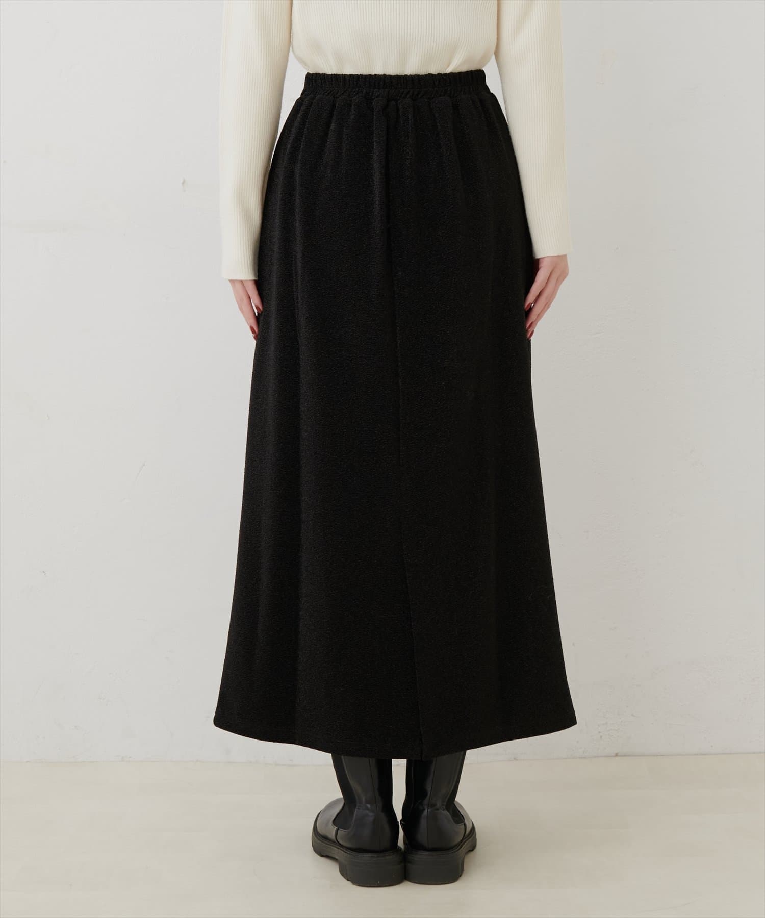 バックスリット入りで動きやすさもばっちり◎ウエストはゴム仕様で着脱もラクラク。