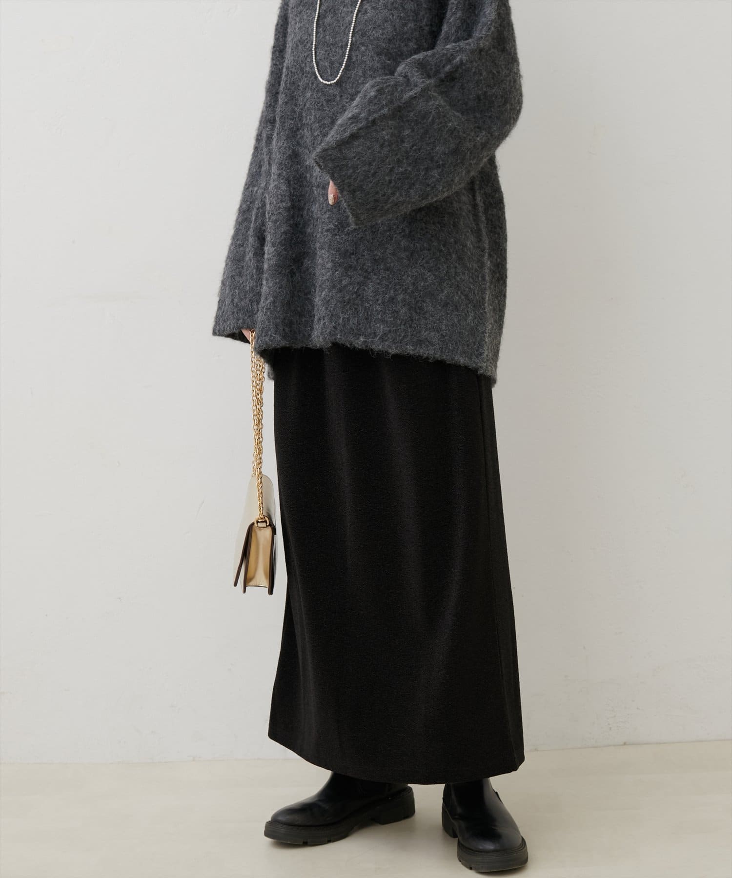 ストンと落ちてすっきりとした印象のIラインシルエットながら、ボディラインを拾いにくいのが魅力。