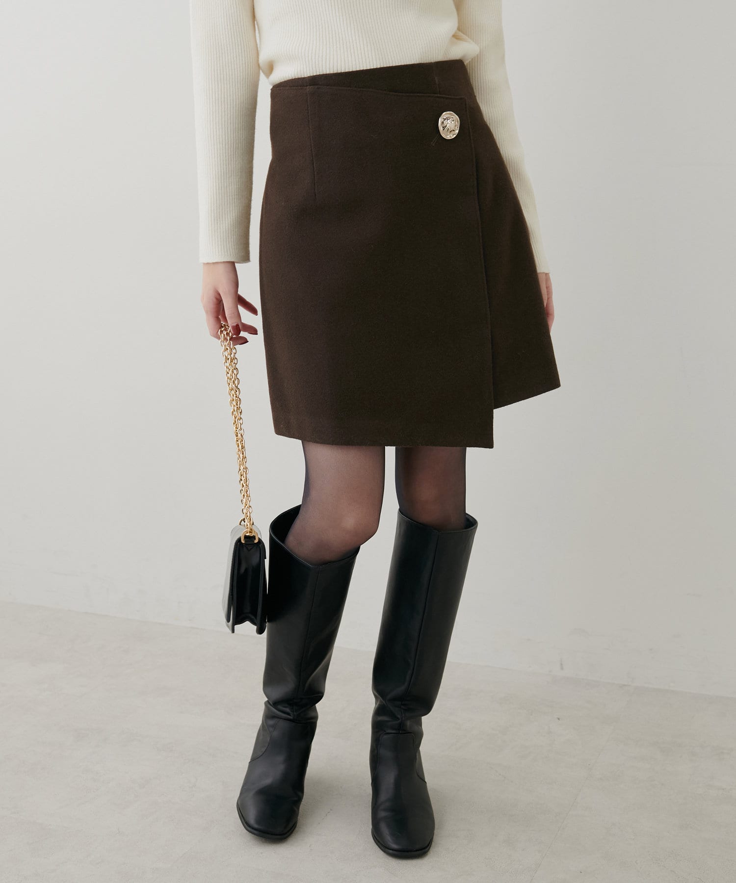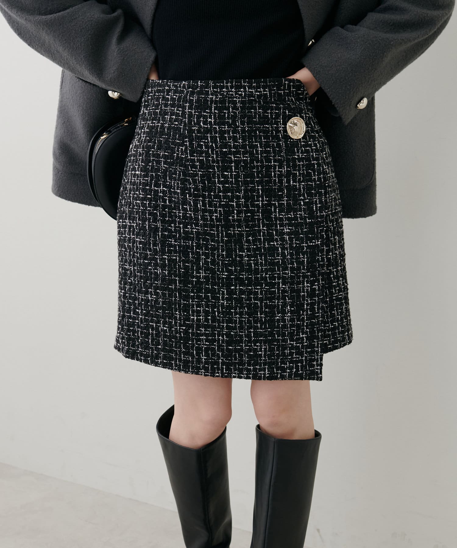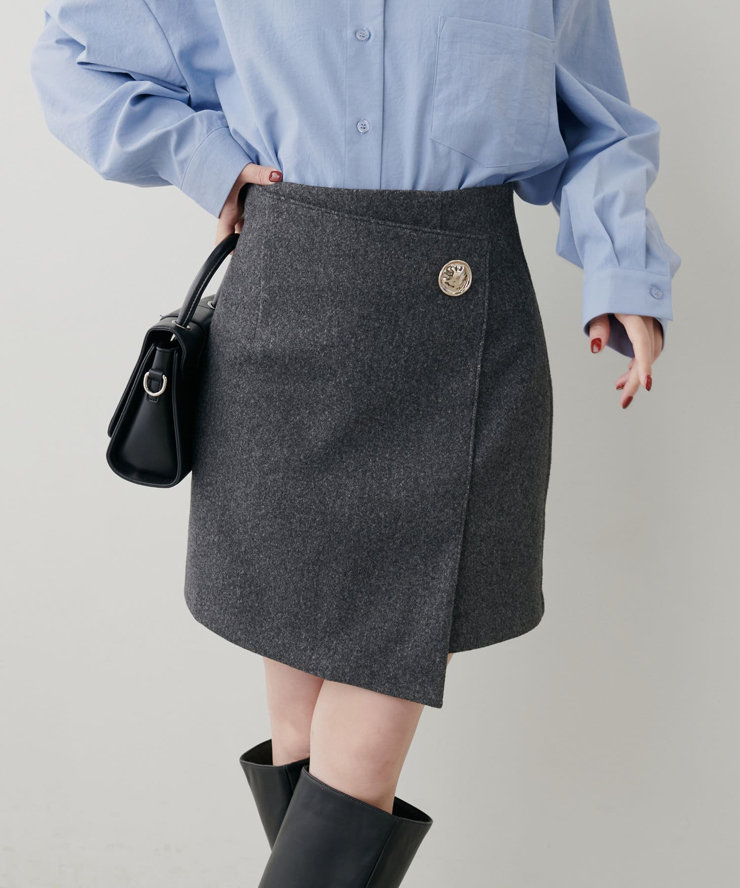 ラップスカートのようなデザインが特徴の一枚。