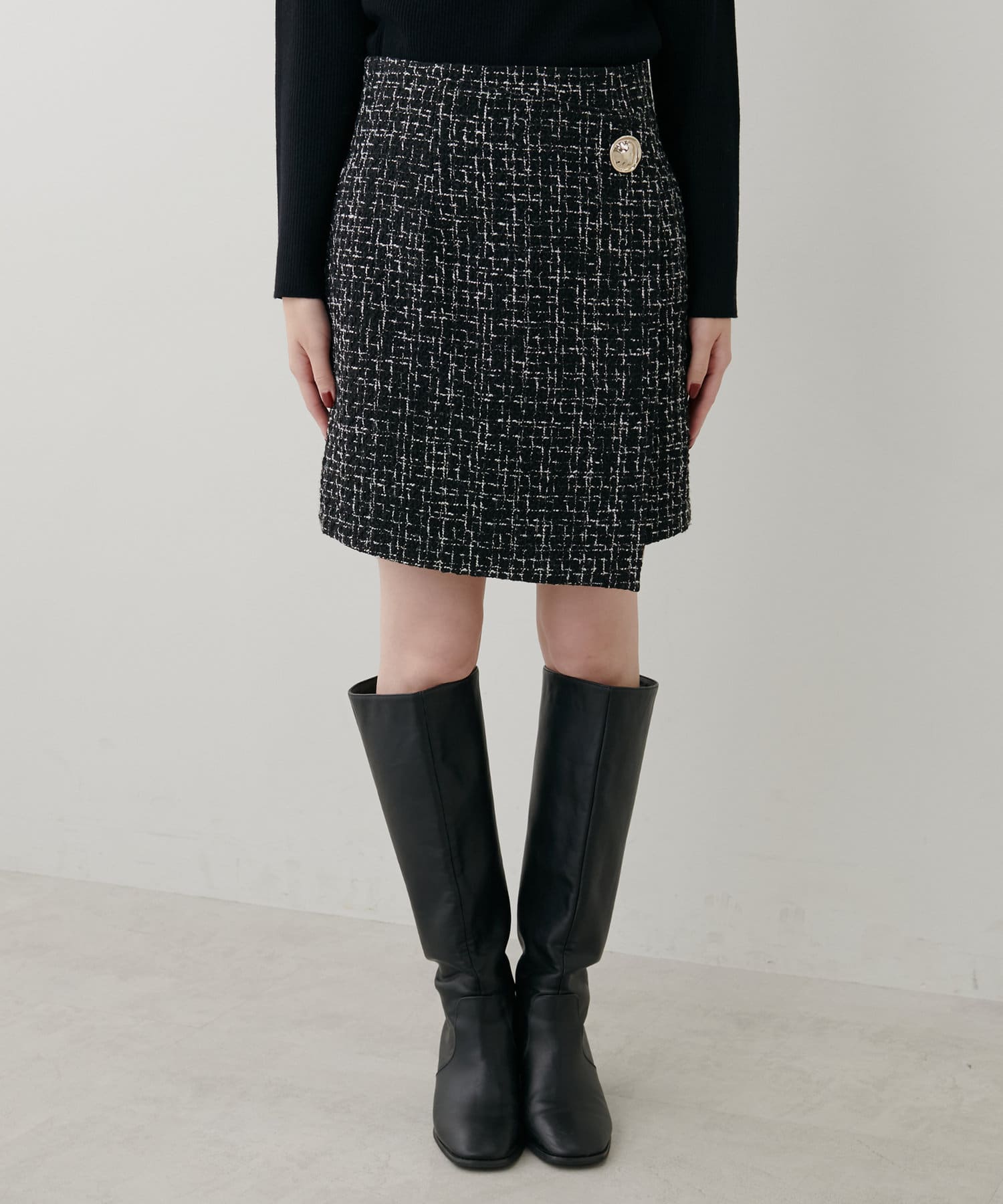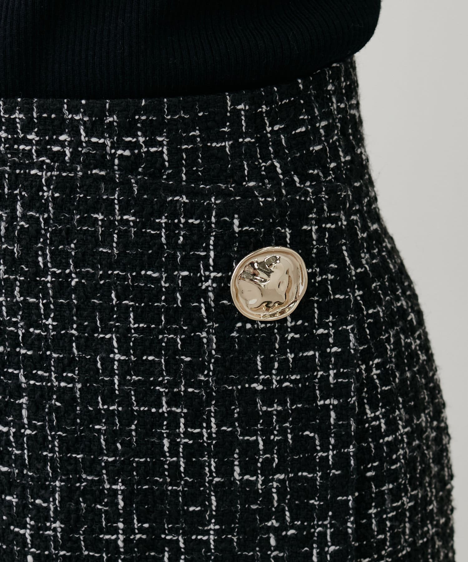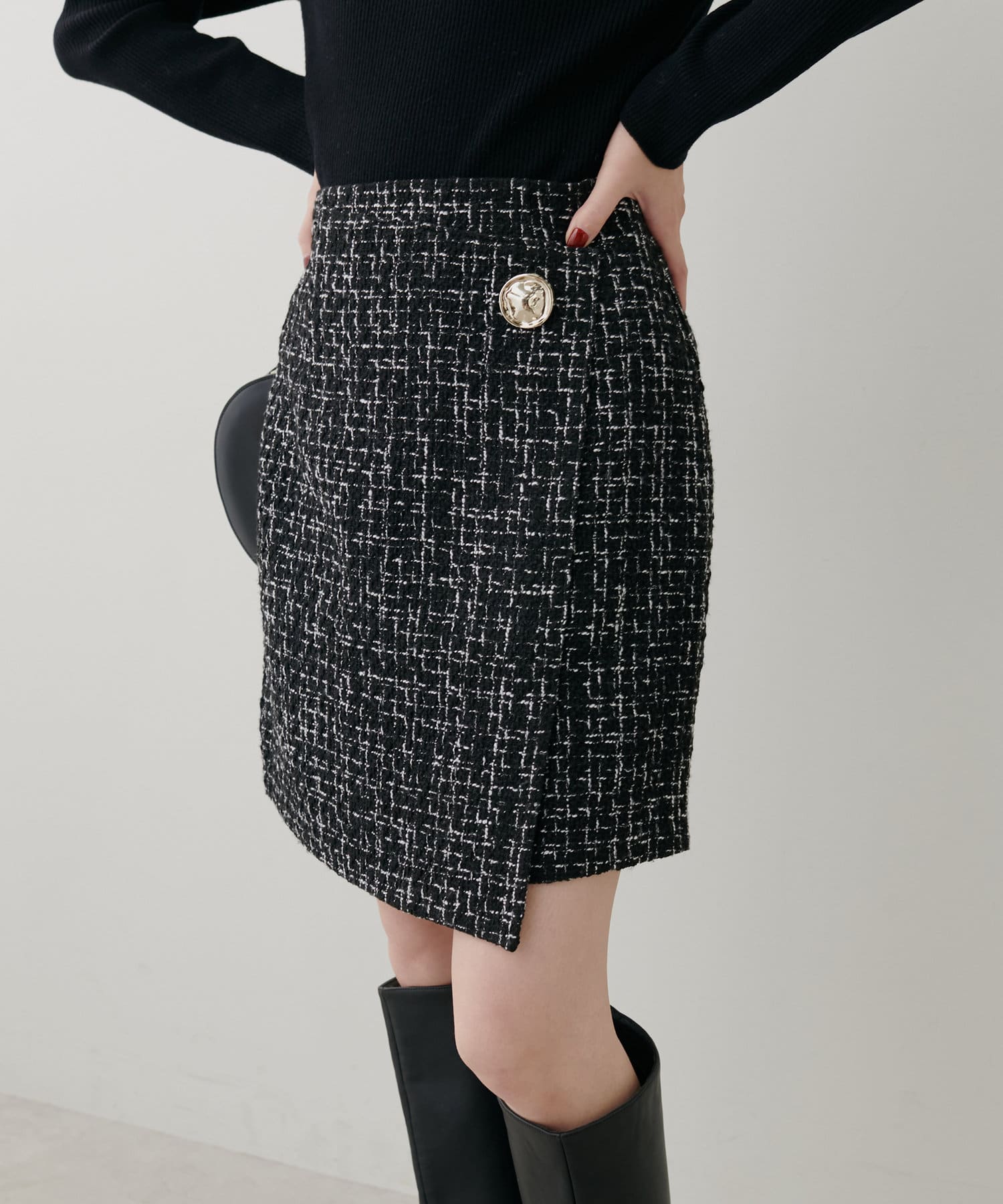 ラップスカートのようなデザインが特徴の一枚。