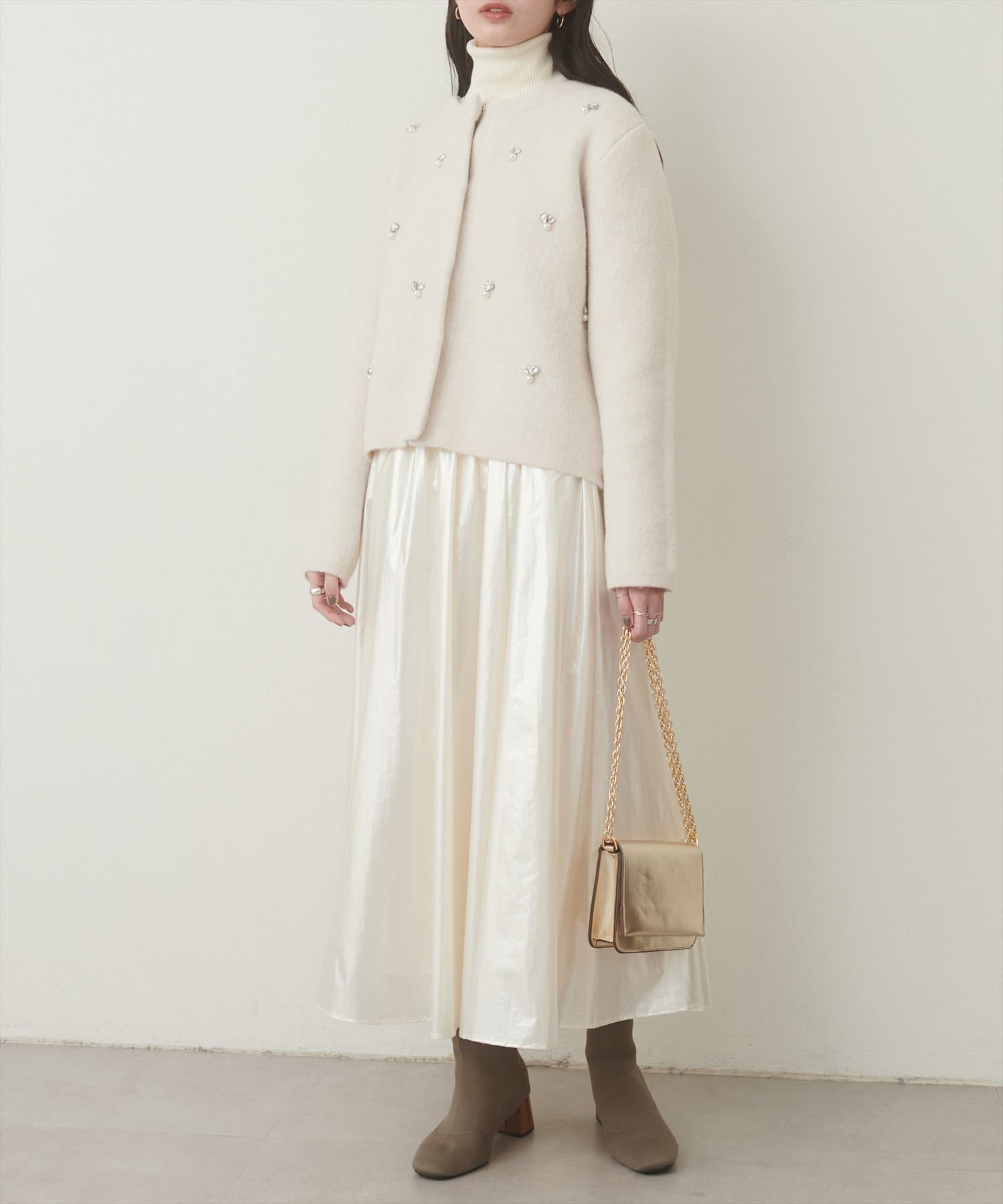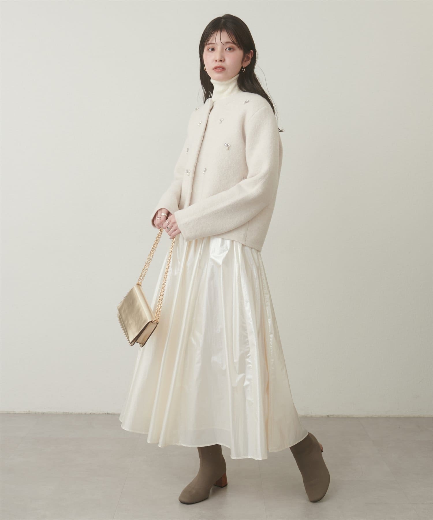 裾に向けて大きく広がるシルエットで揺れ感も◎。