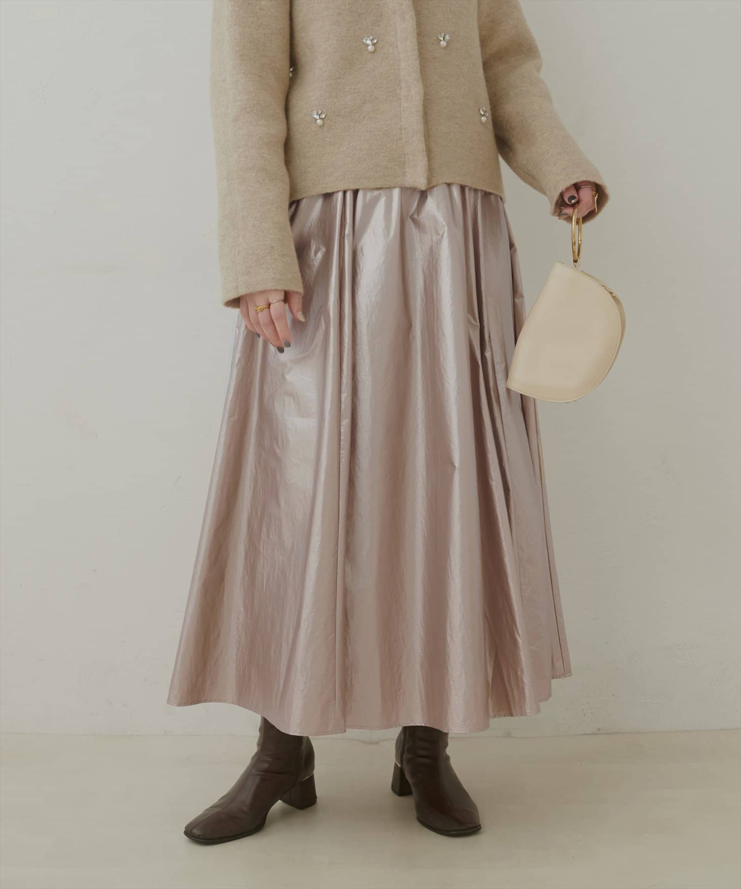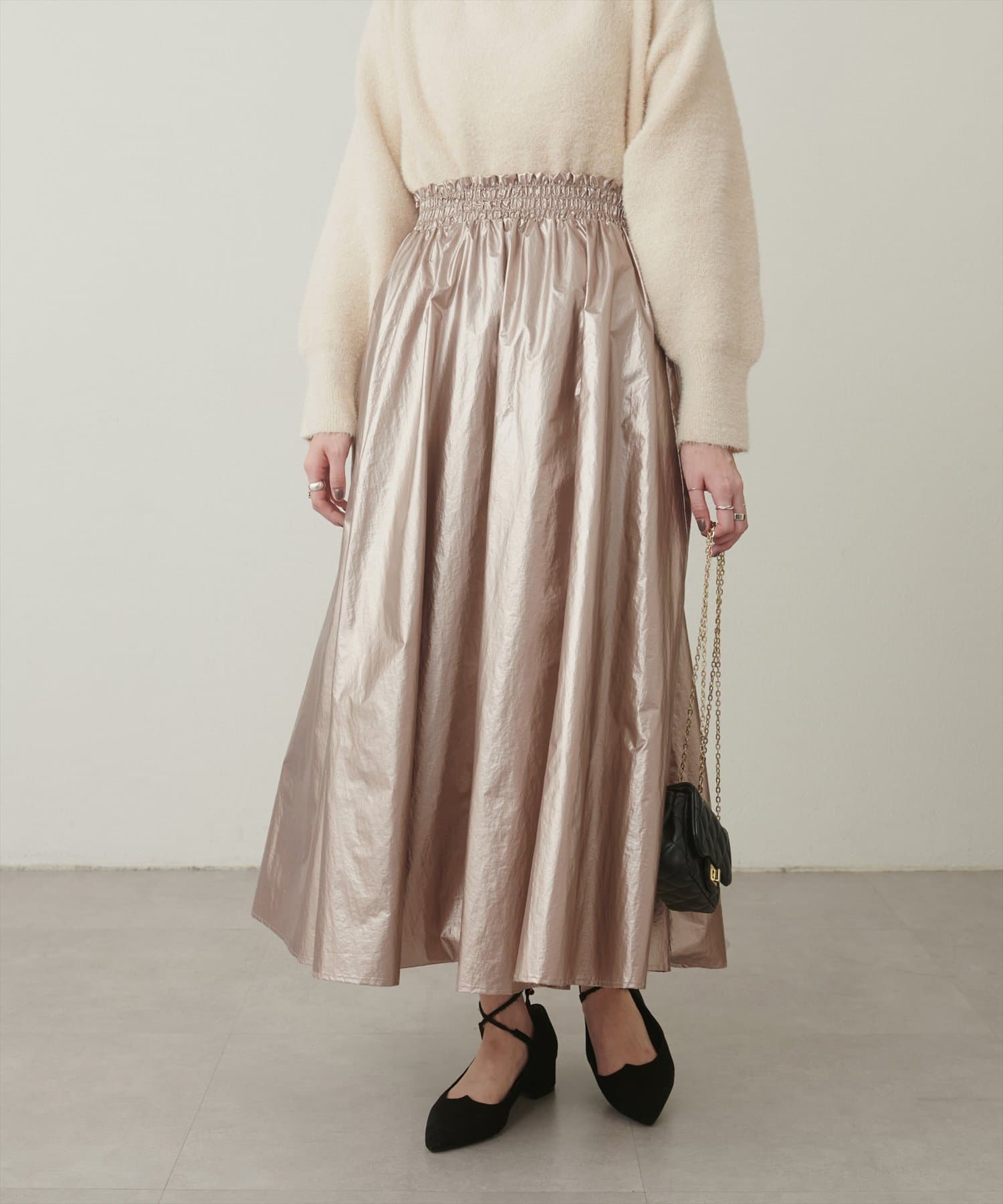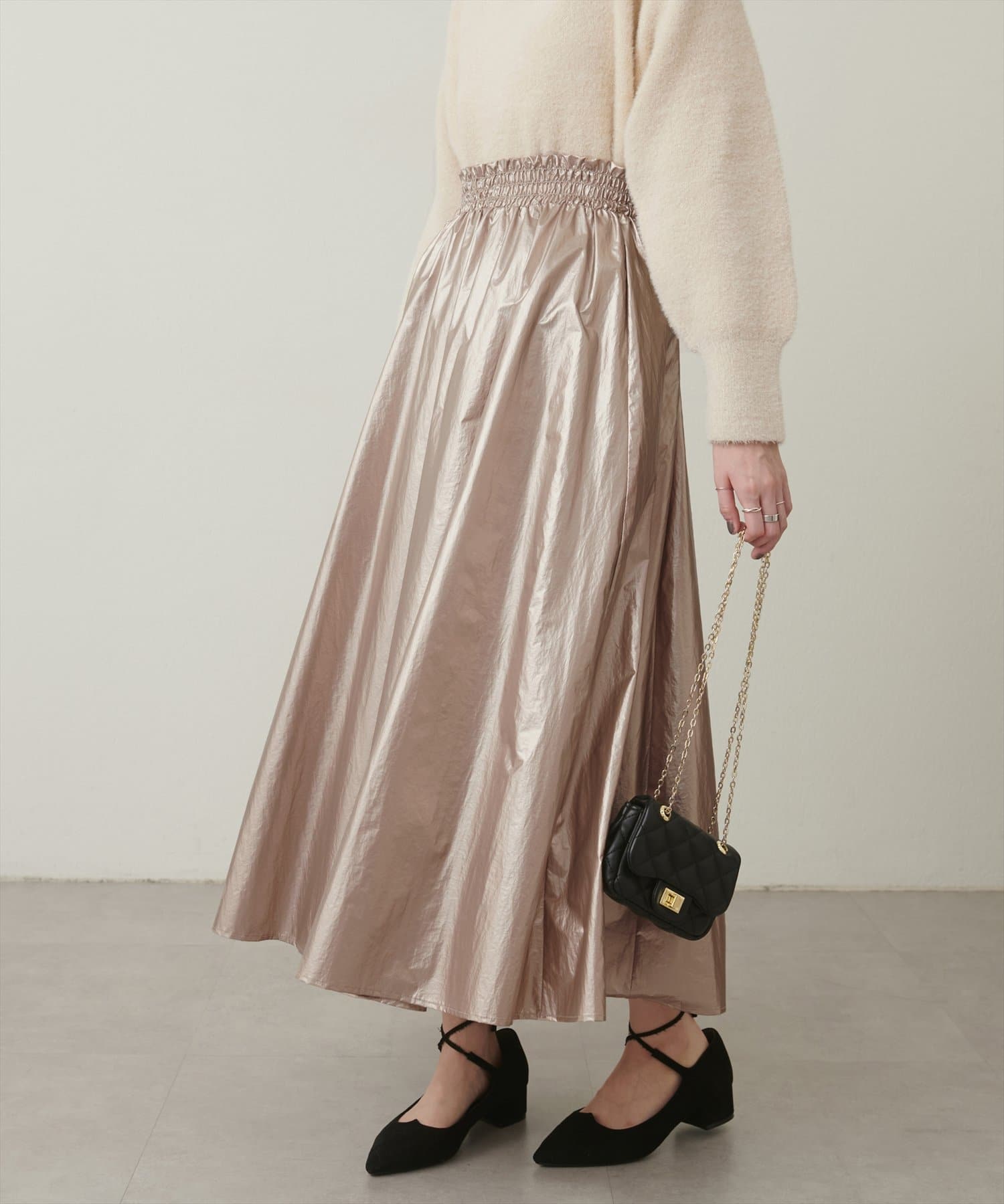 【大人ナチュ】ウエストシャーリングシャイニースカート