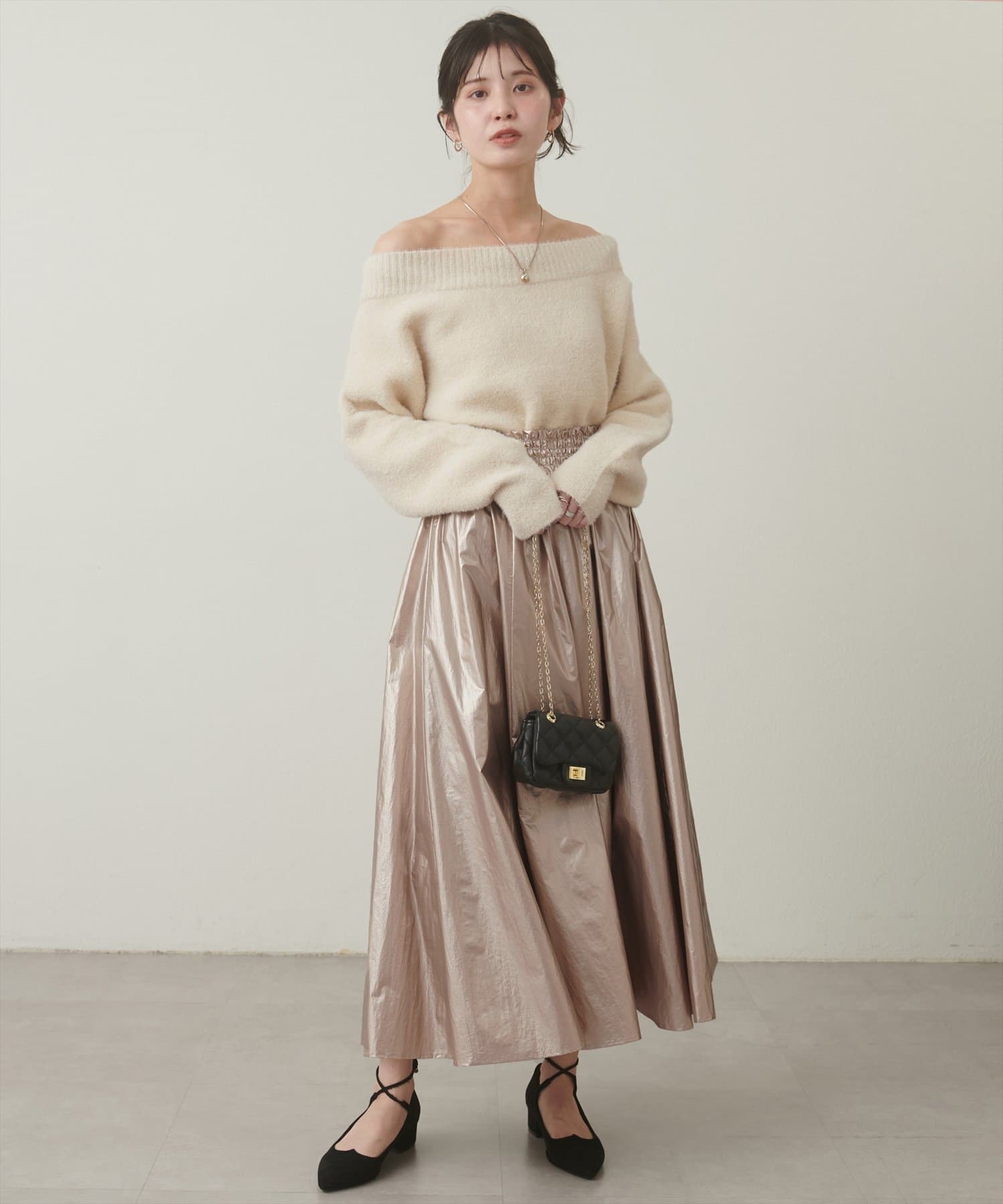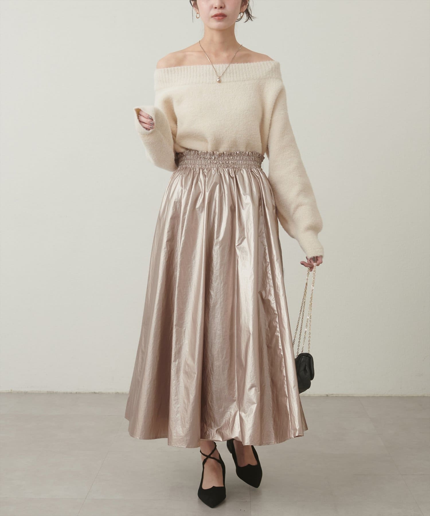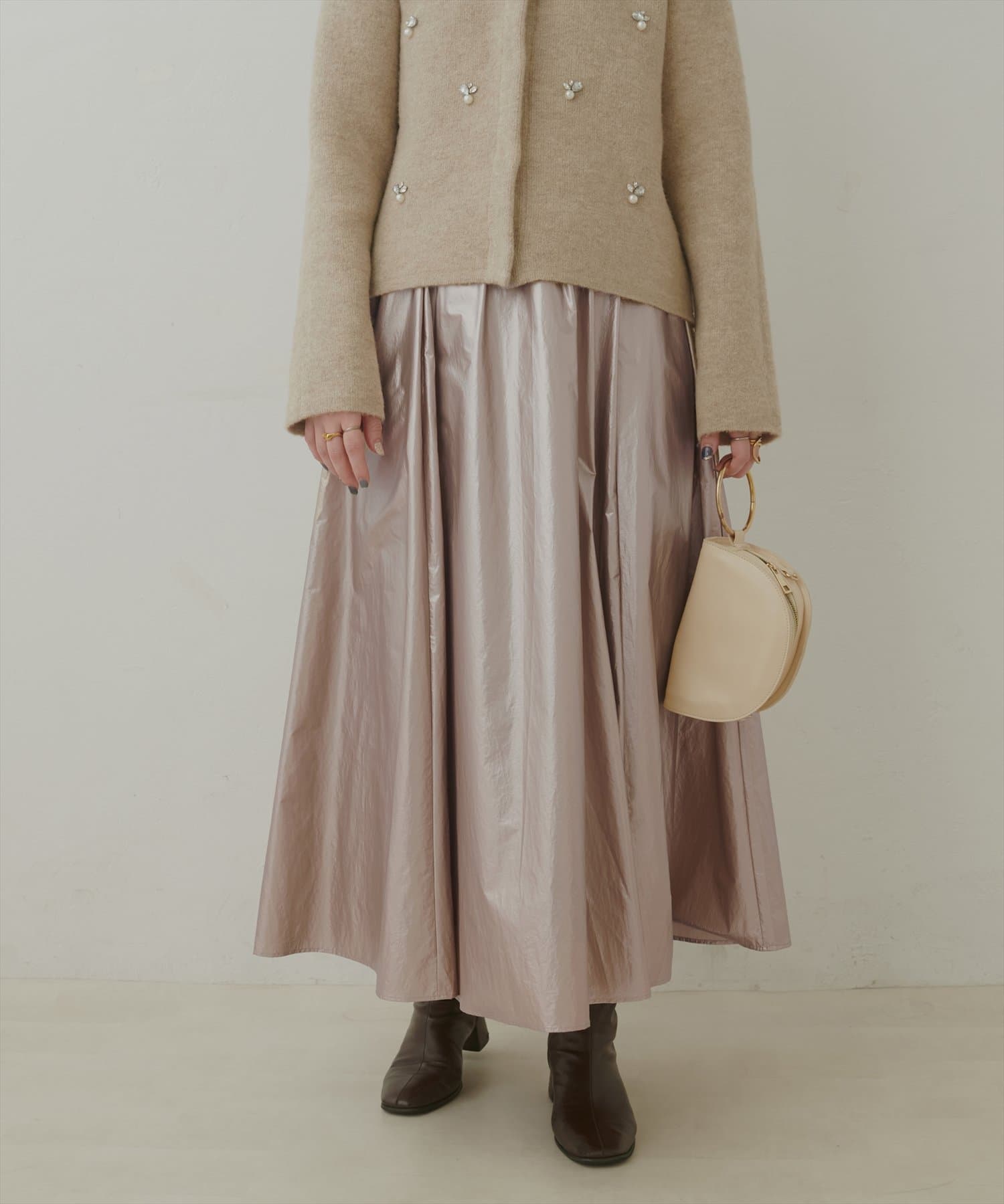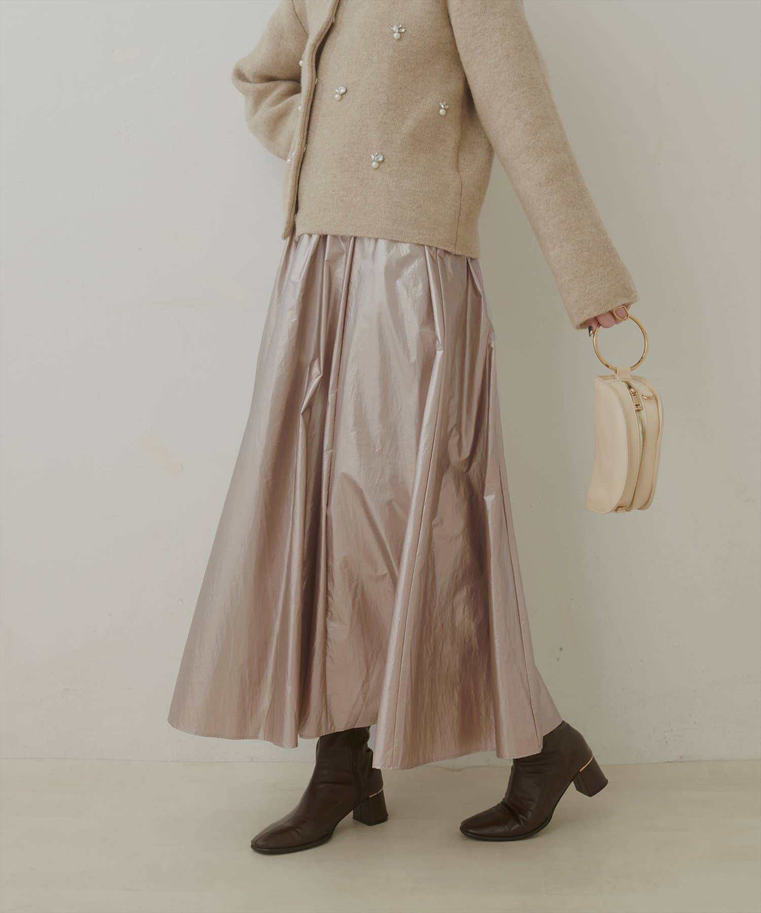 【大人ナチュ】ウエストシャーリングシャイニースカート