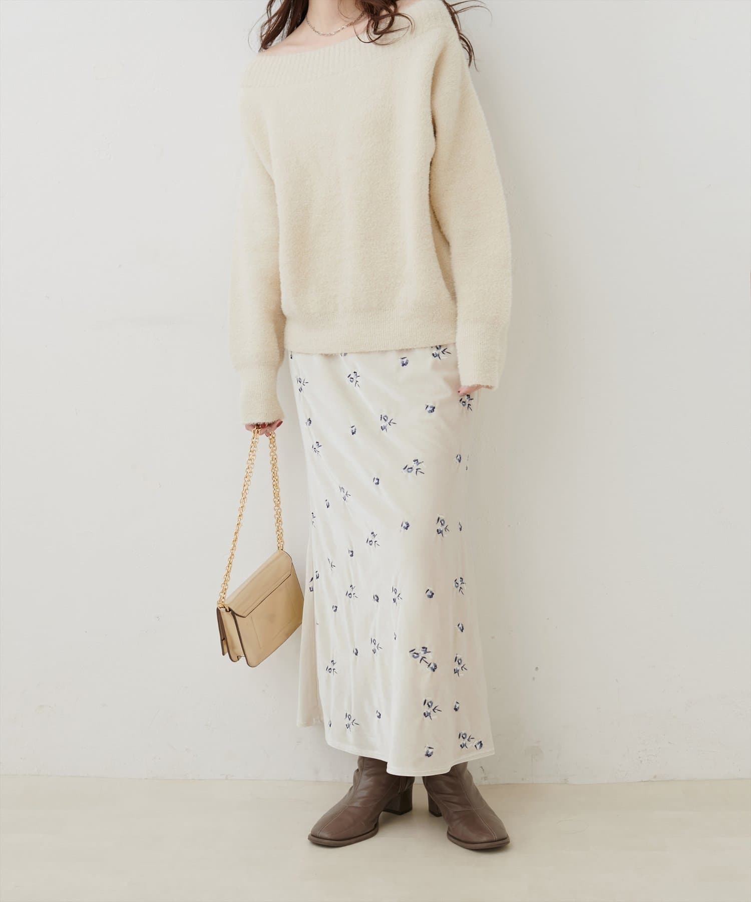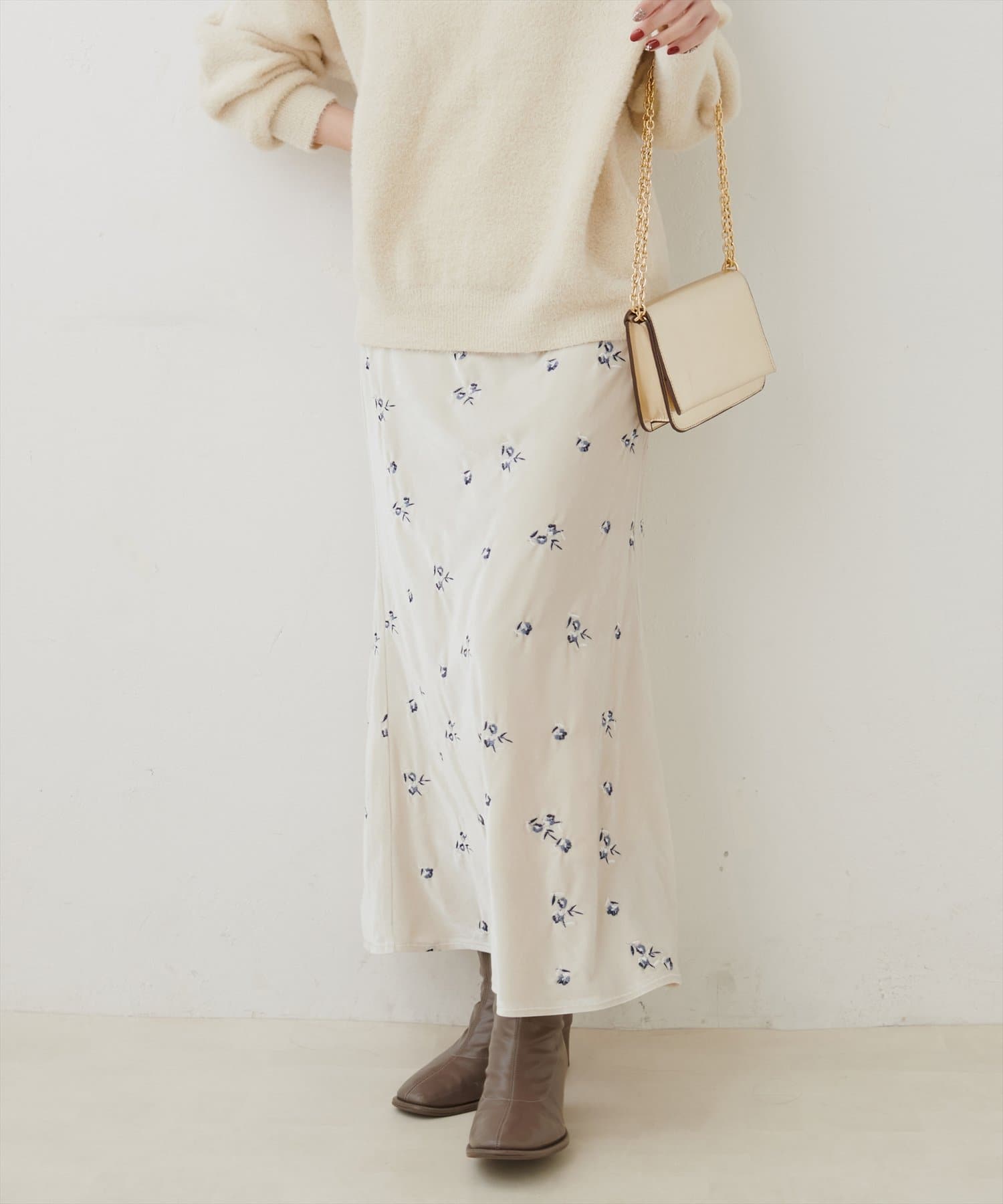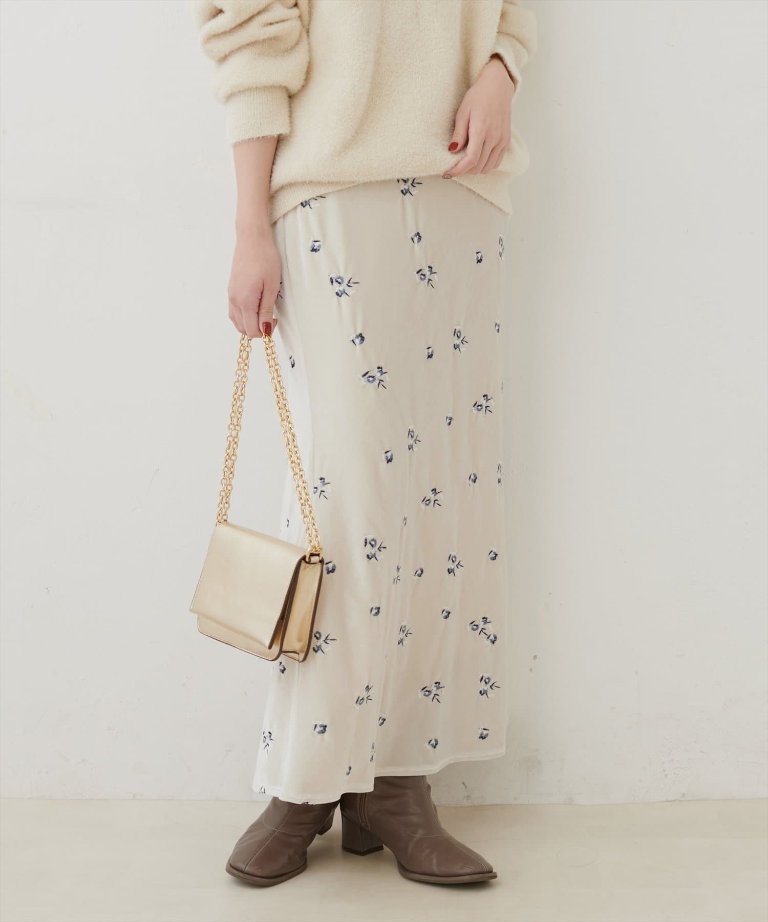 全体にささやかな花の刺繍が広がり、可愛らしさもプラスしてくれる1枚です。