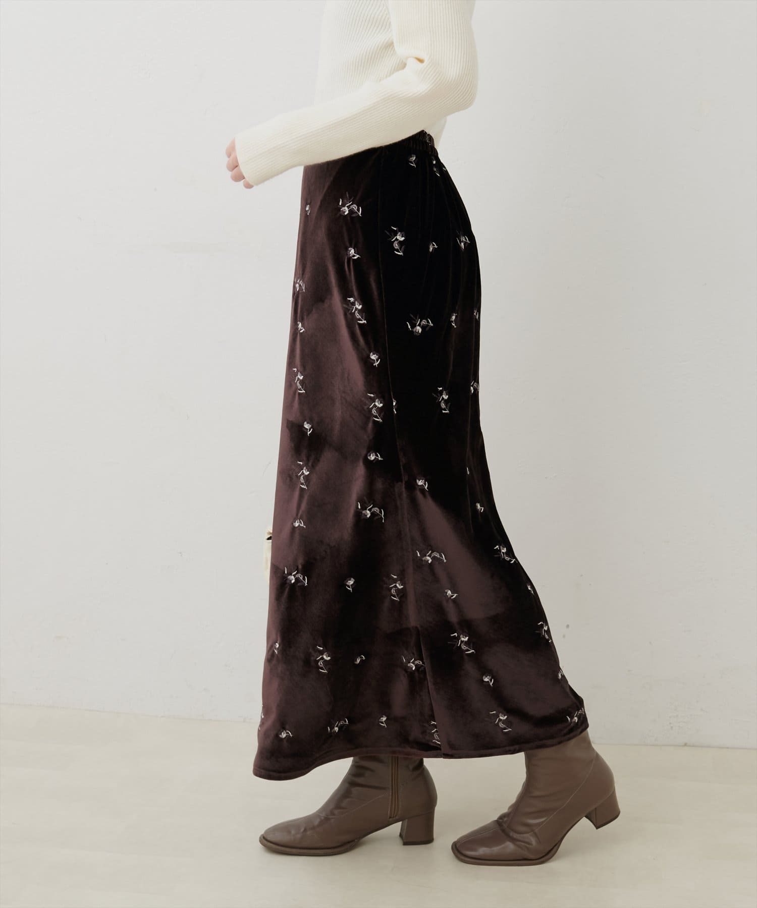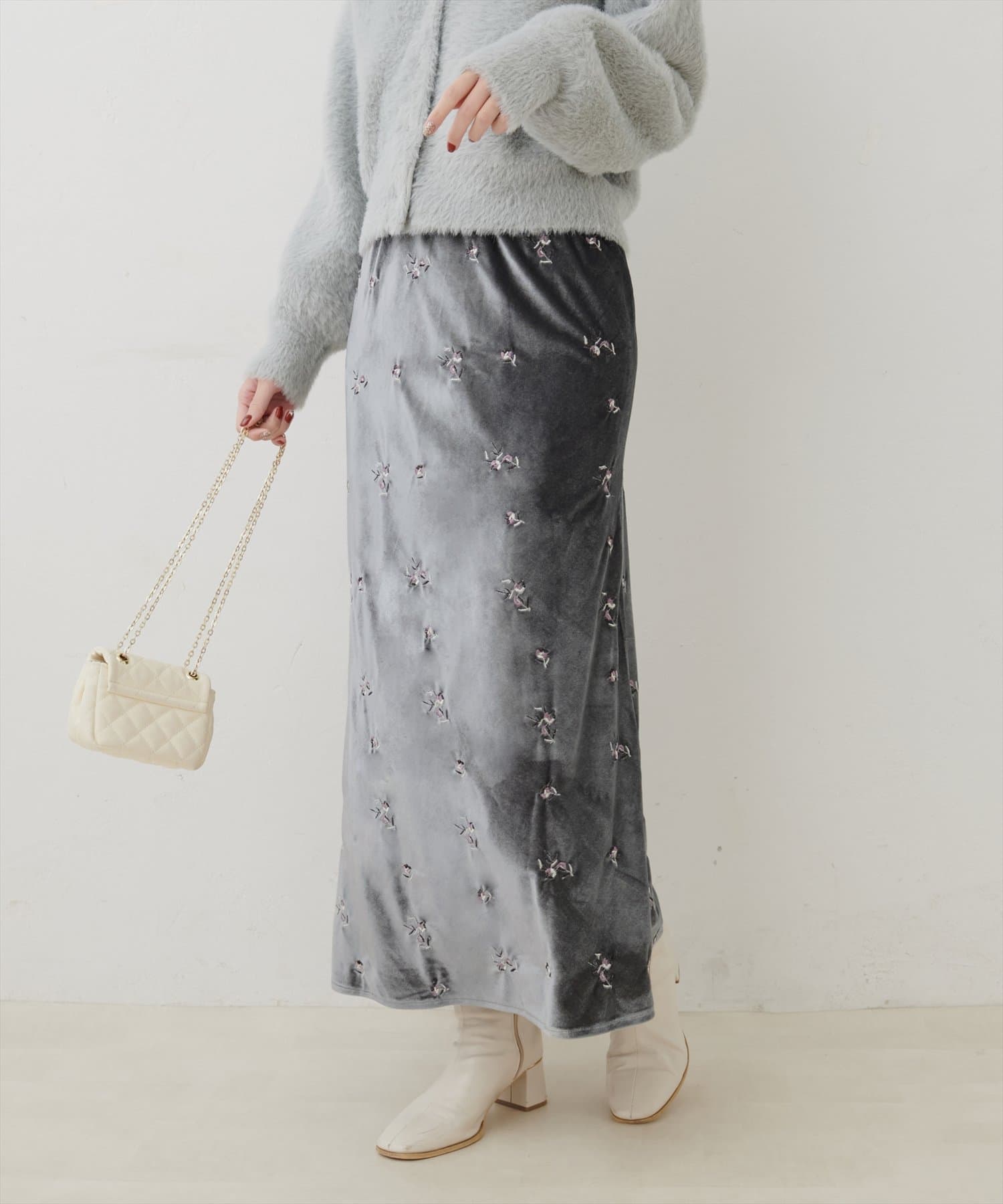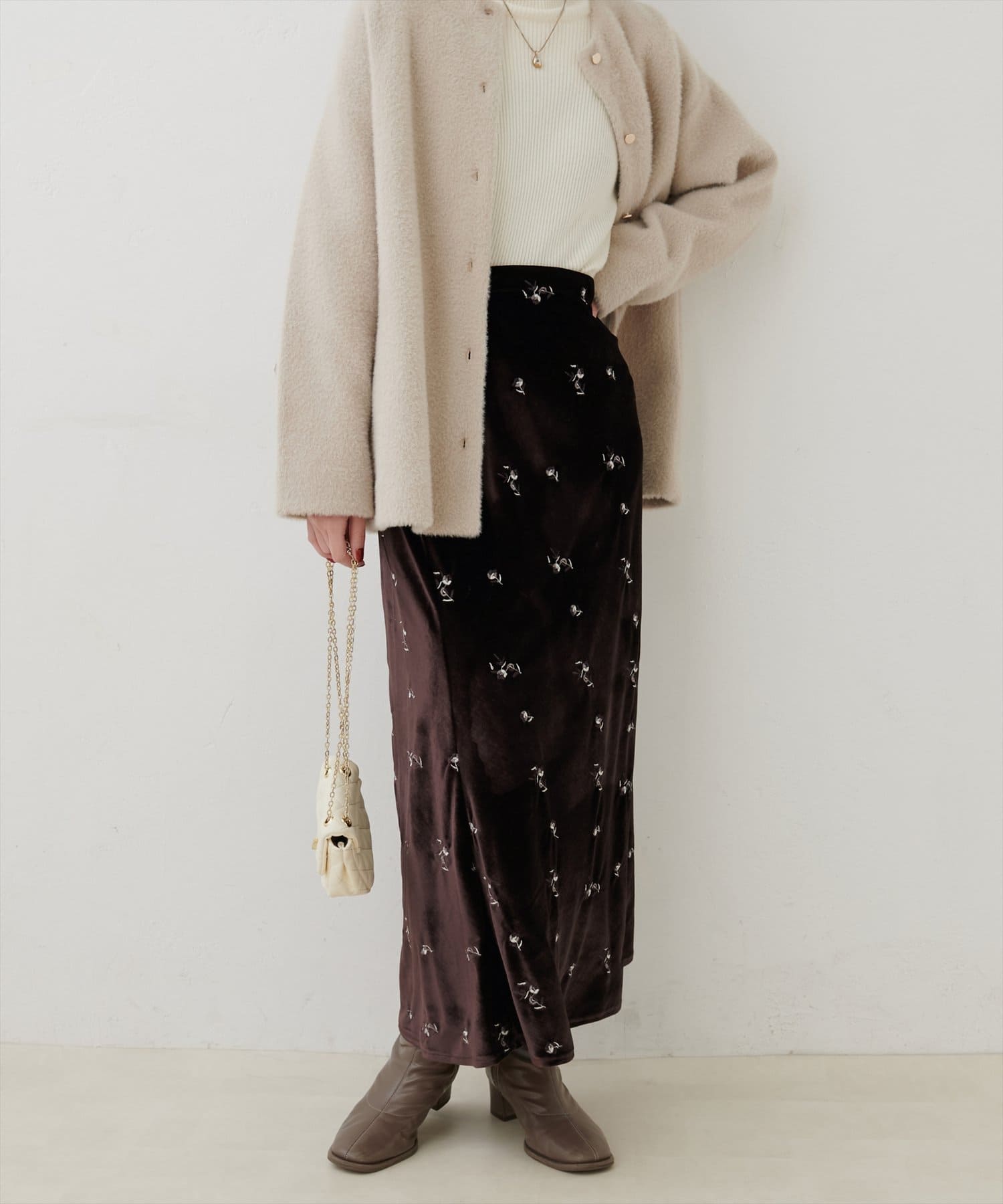 ベロアの上品な光沢感が魅力のスカートが登場。