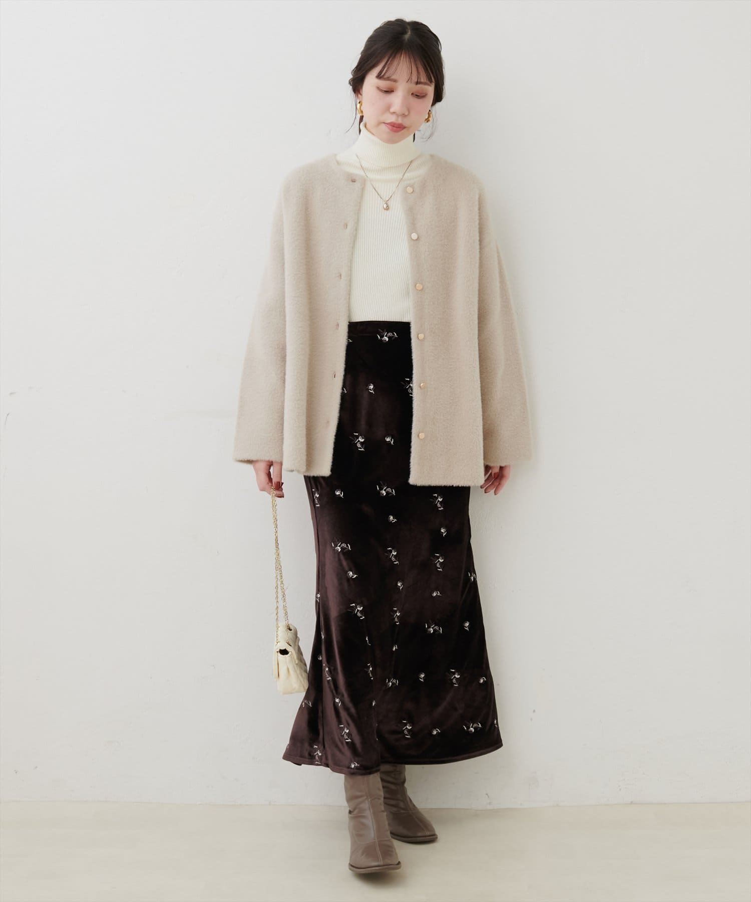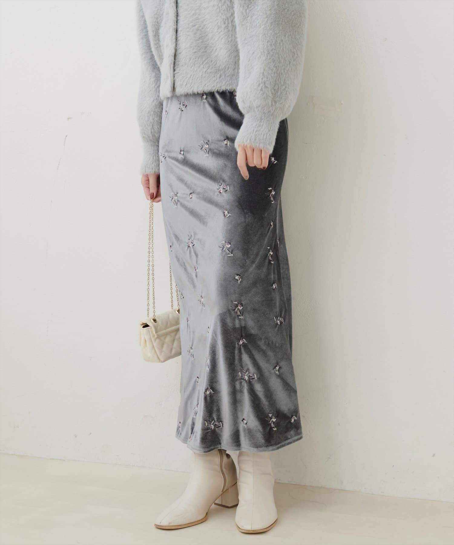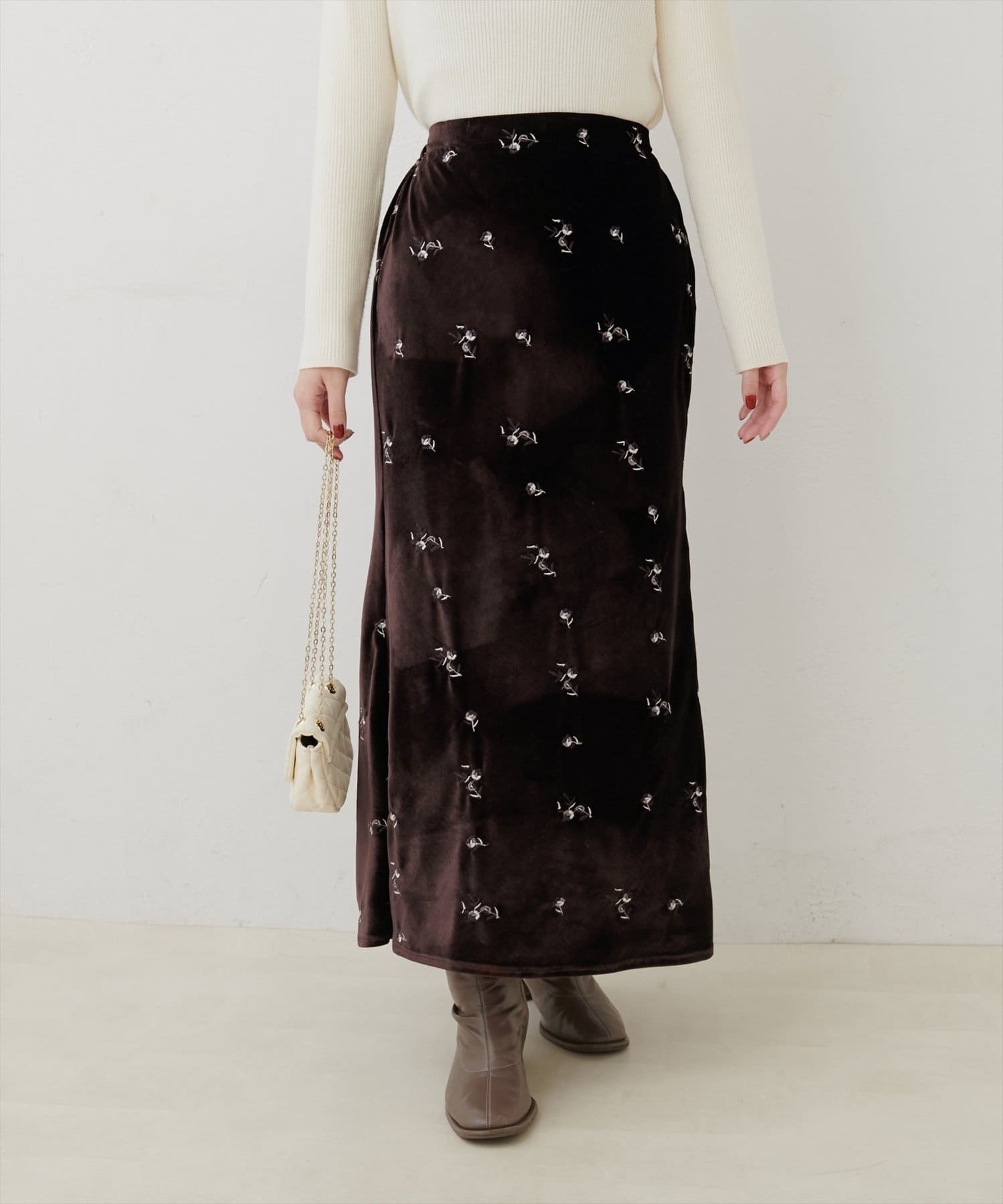 ベロアの上品な光沢感が魅力のスカートが登場。