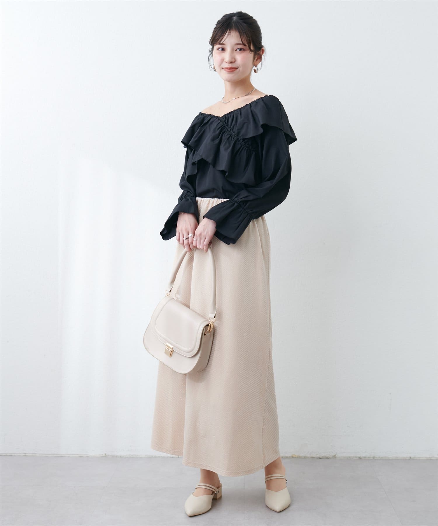 ルーズなサイジングのニットやカーディガンとの相性が◎。
