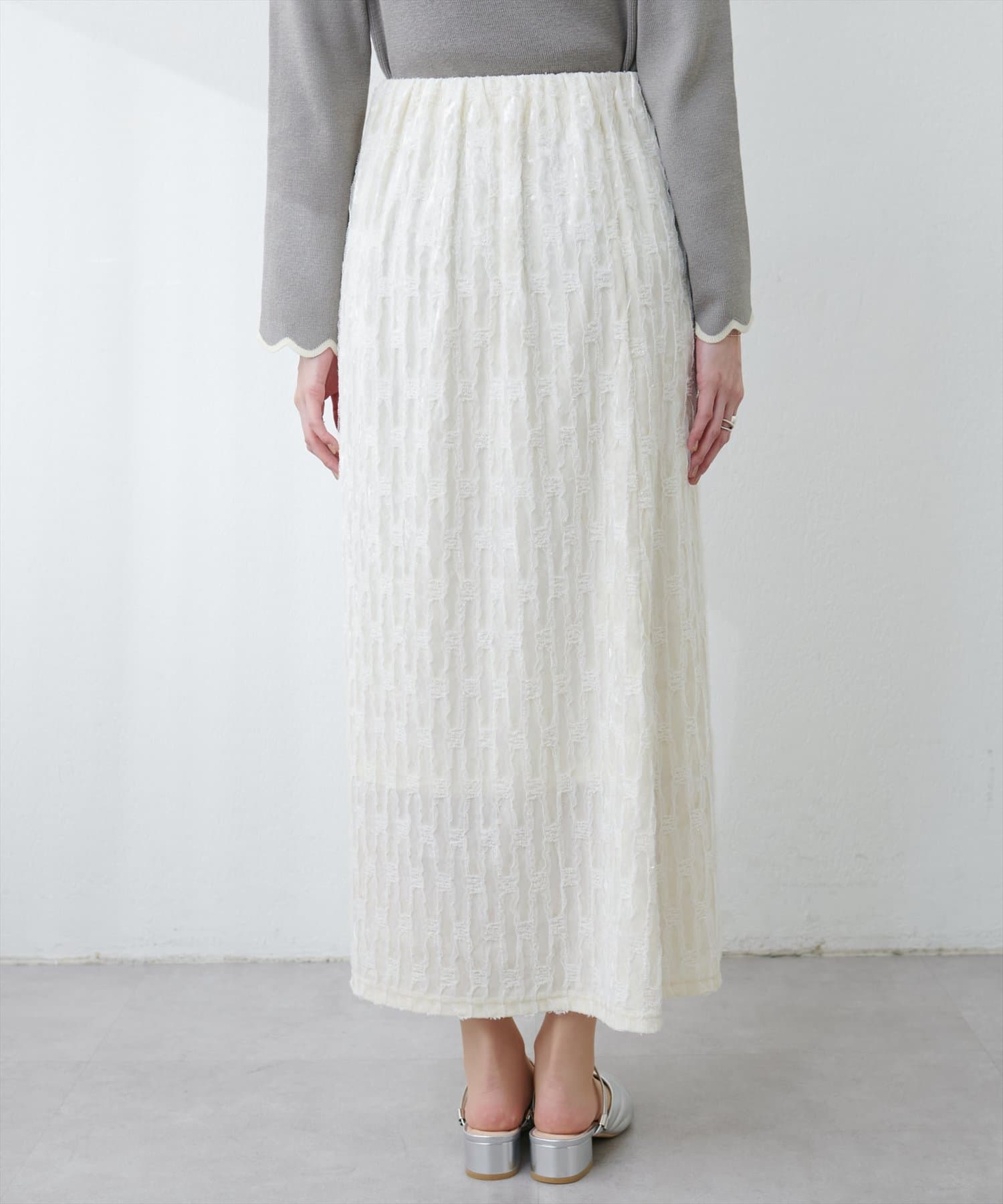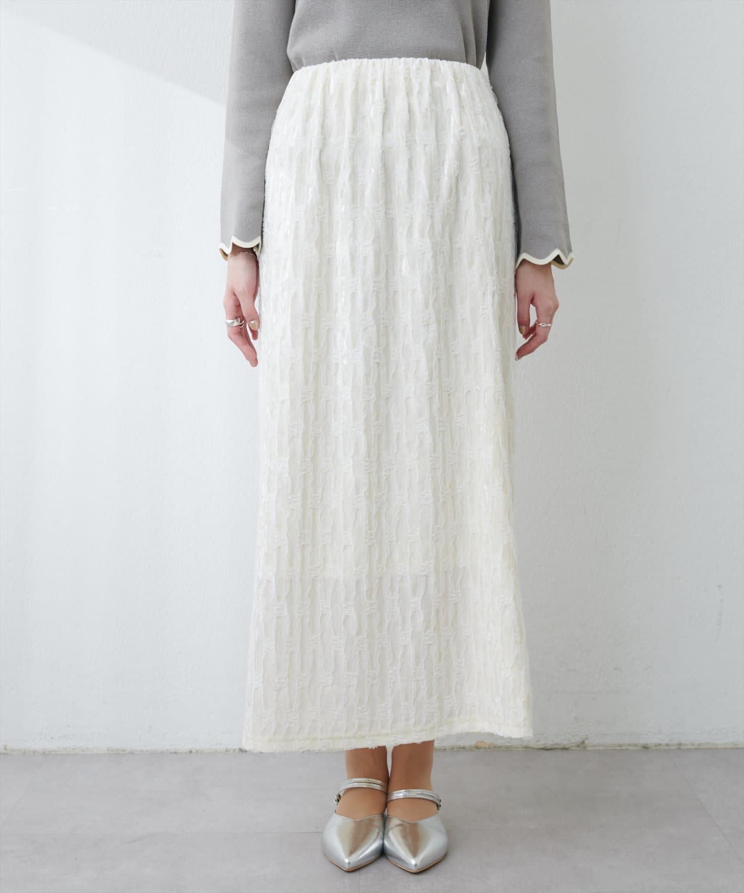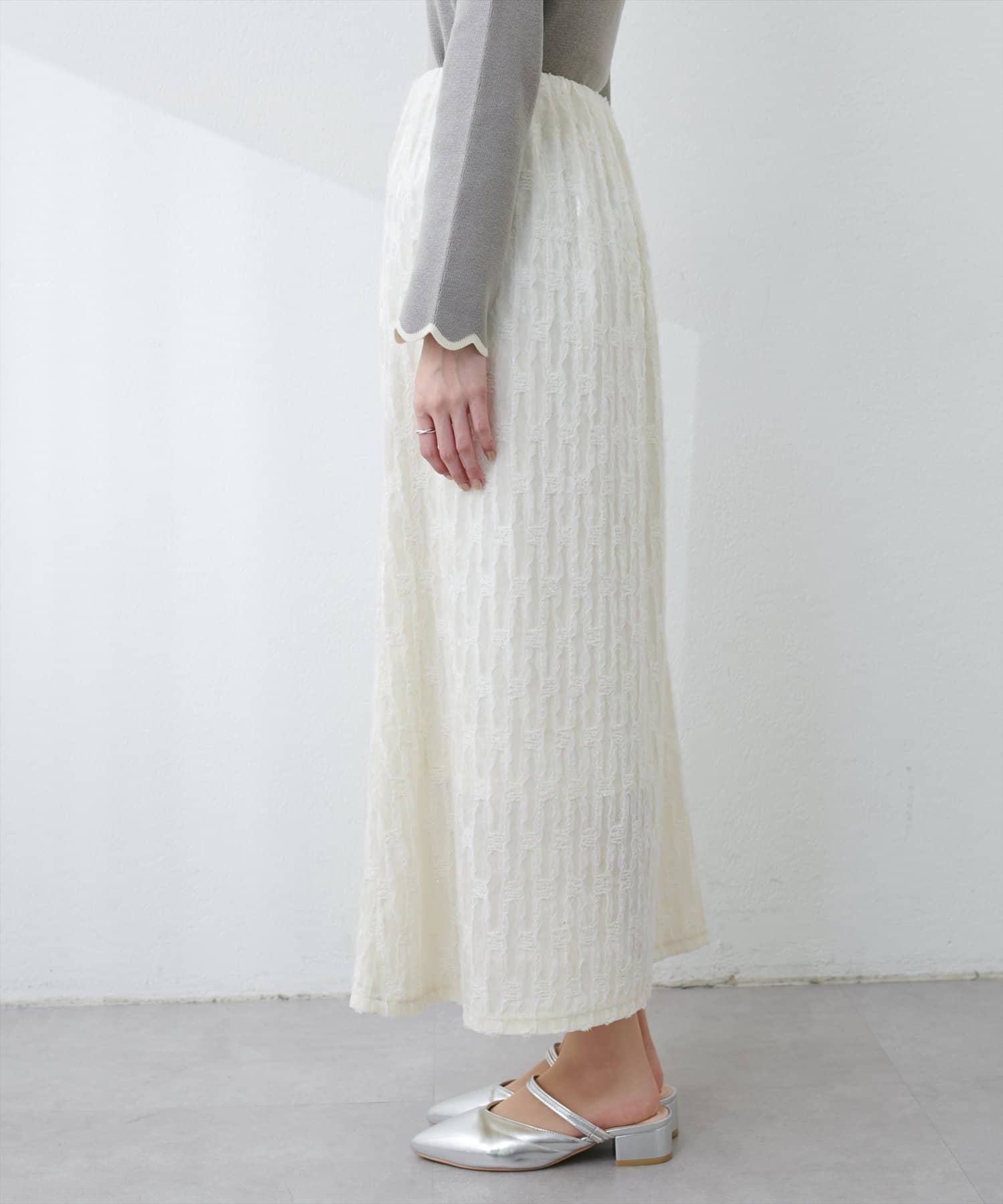オフホワイトはレースデザインが施されよりフェミニンな印象に。