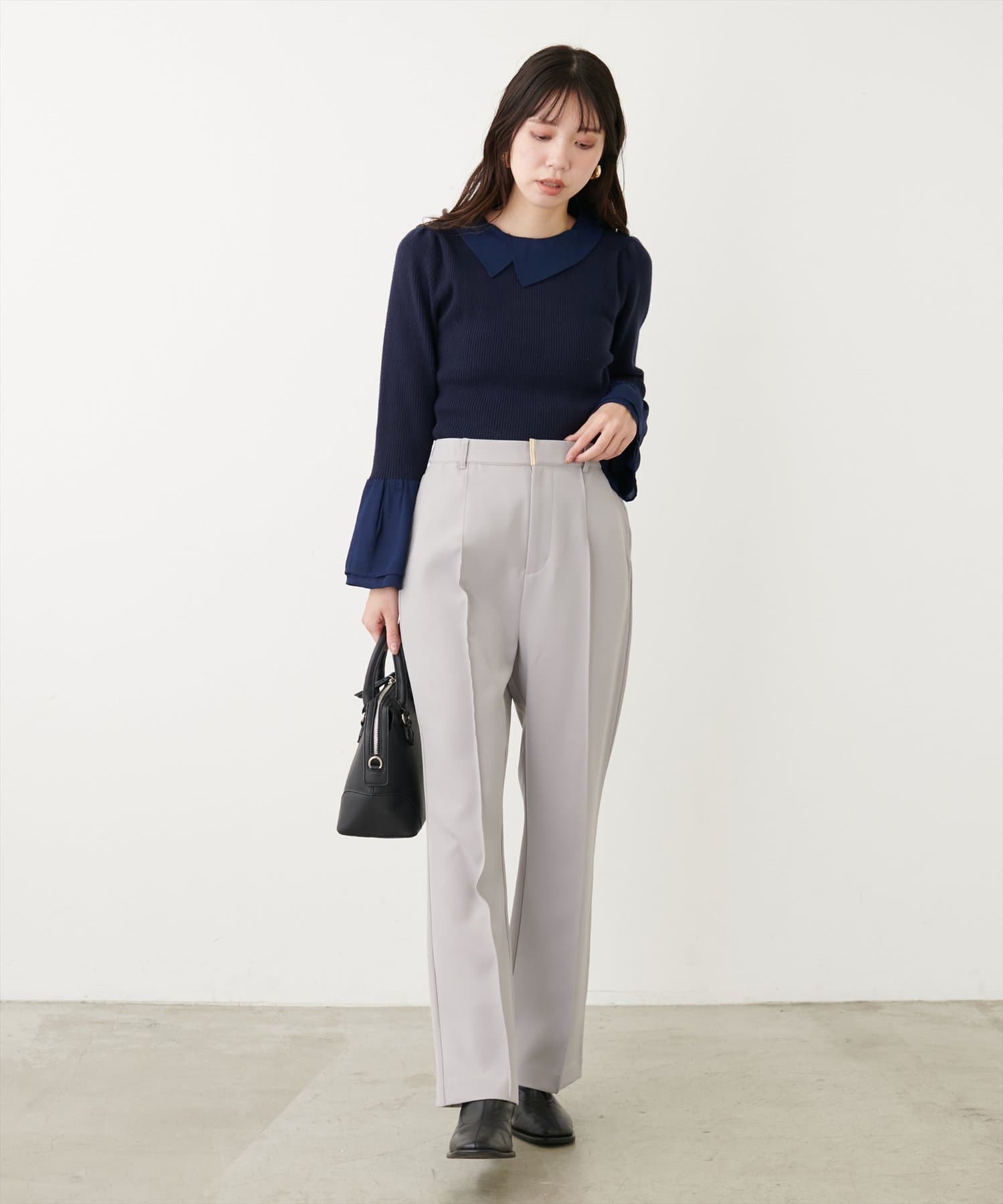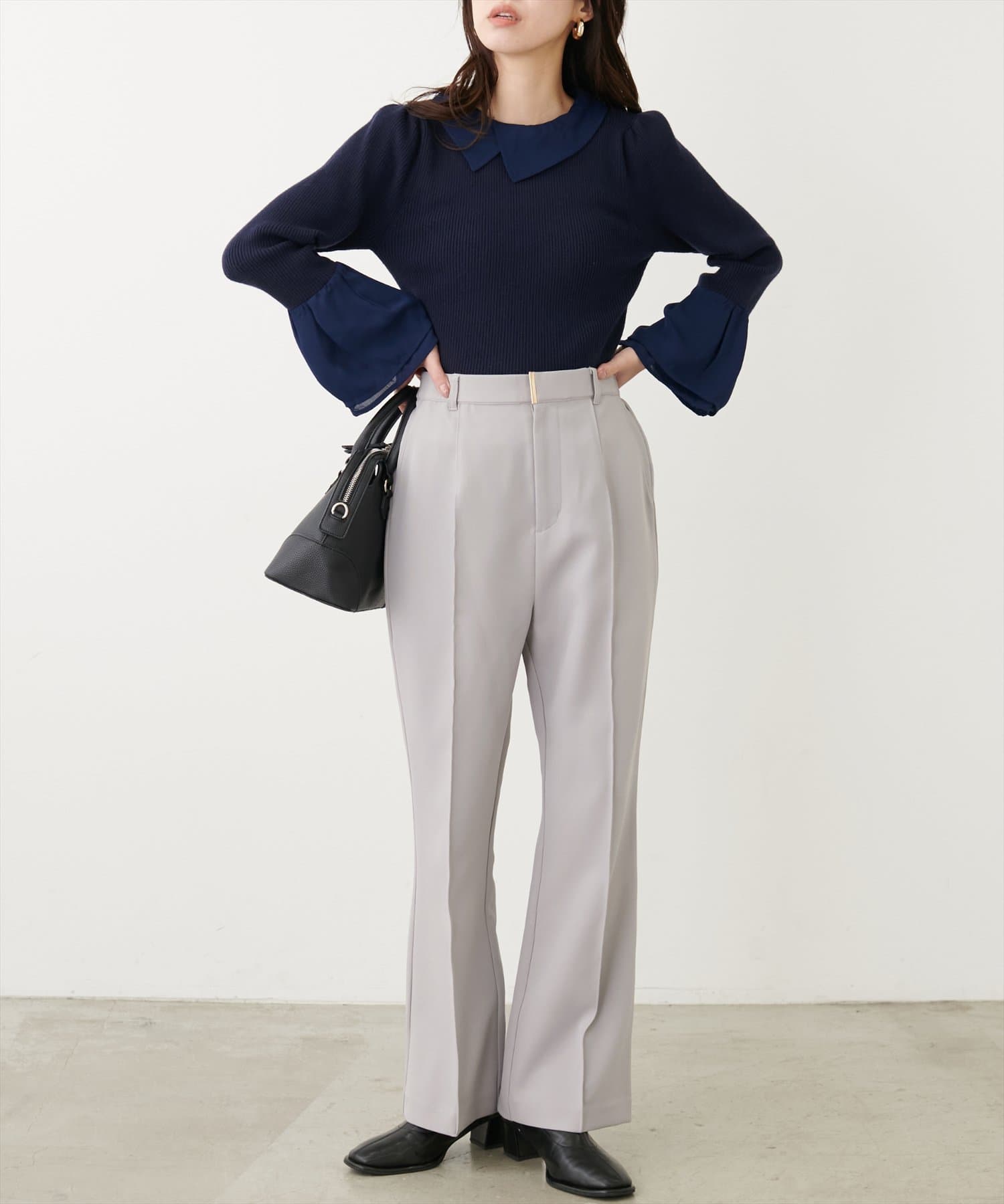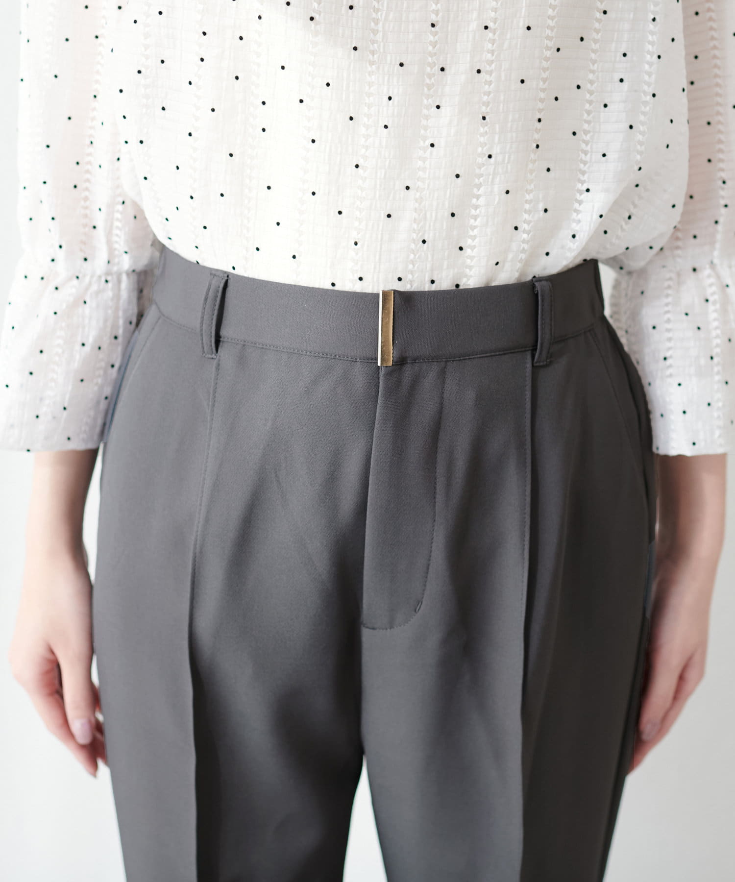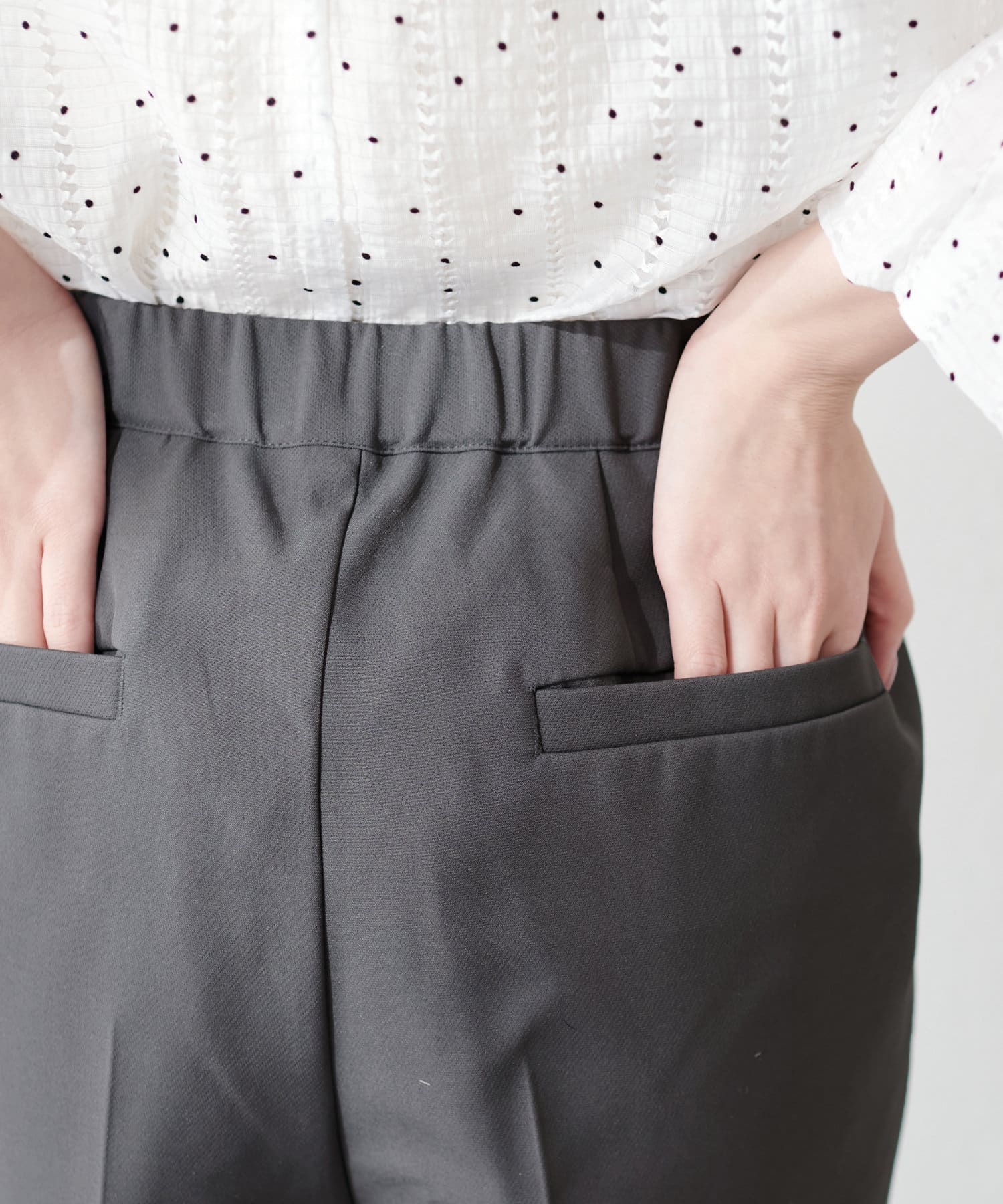 オフィスで着れるキレイメパンツ。ハイウエストで着れて、腰回りのふくらみを少しでも抑えて着てもらえるようにこだわりました。
