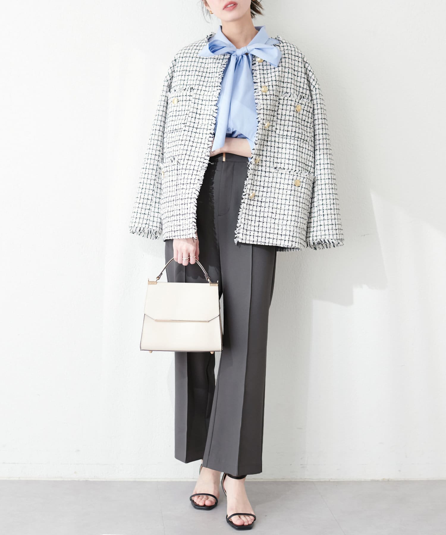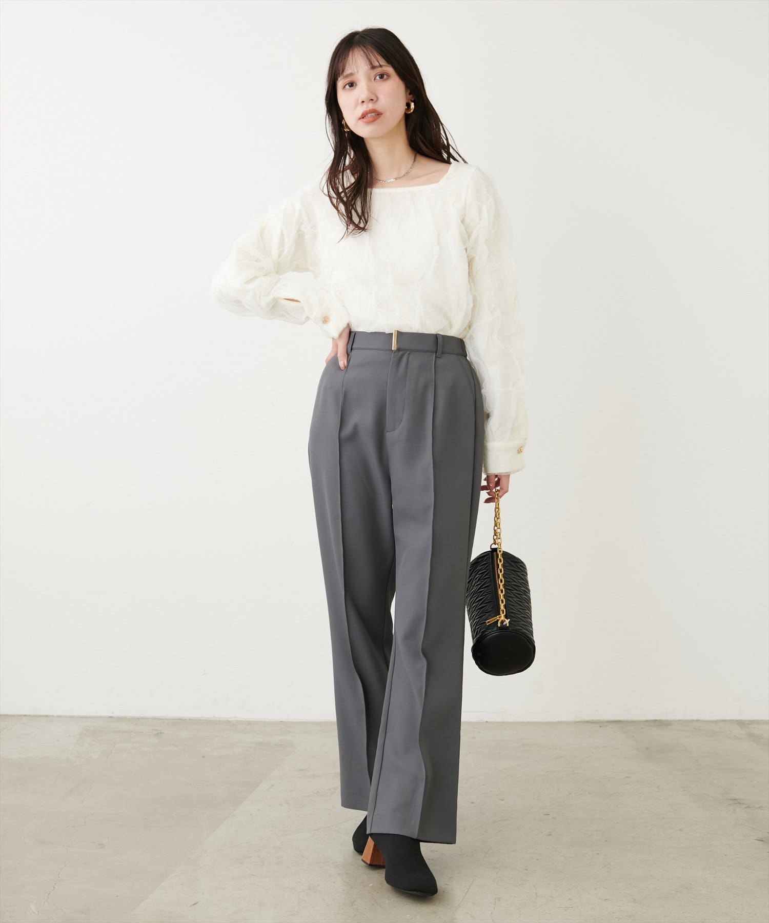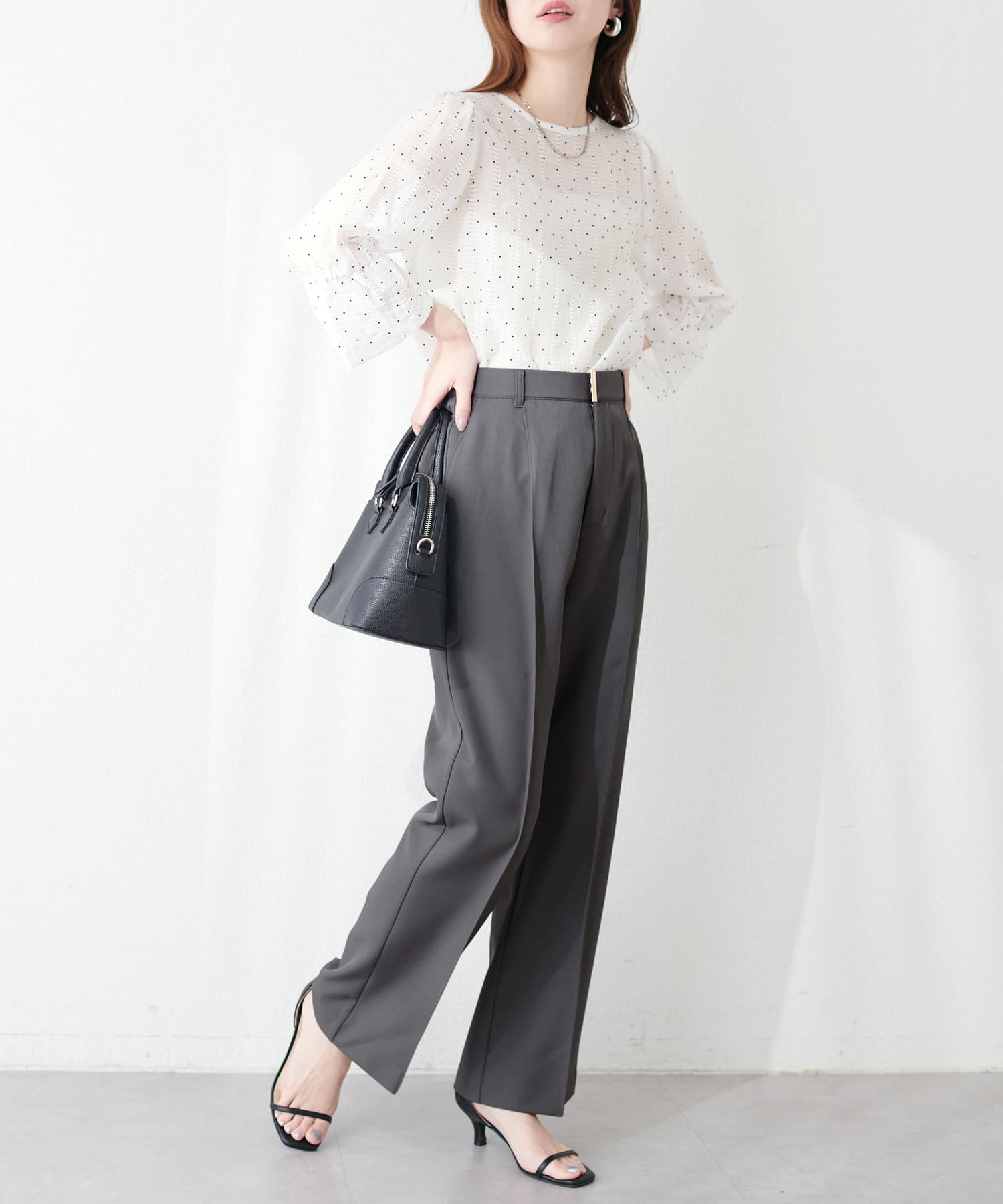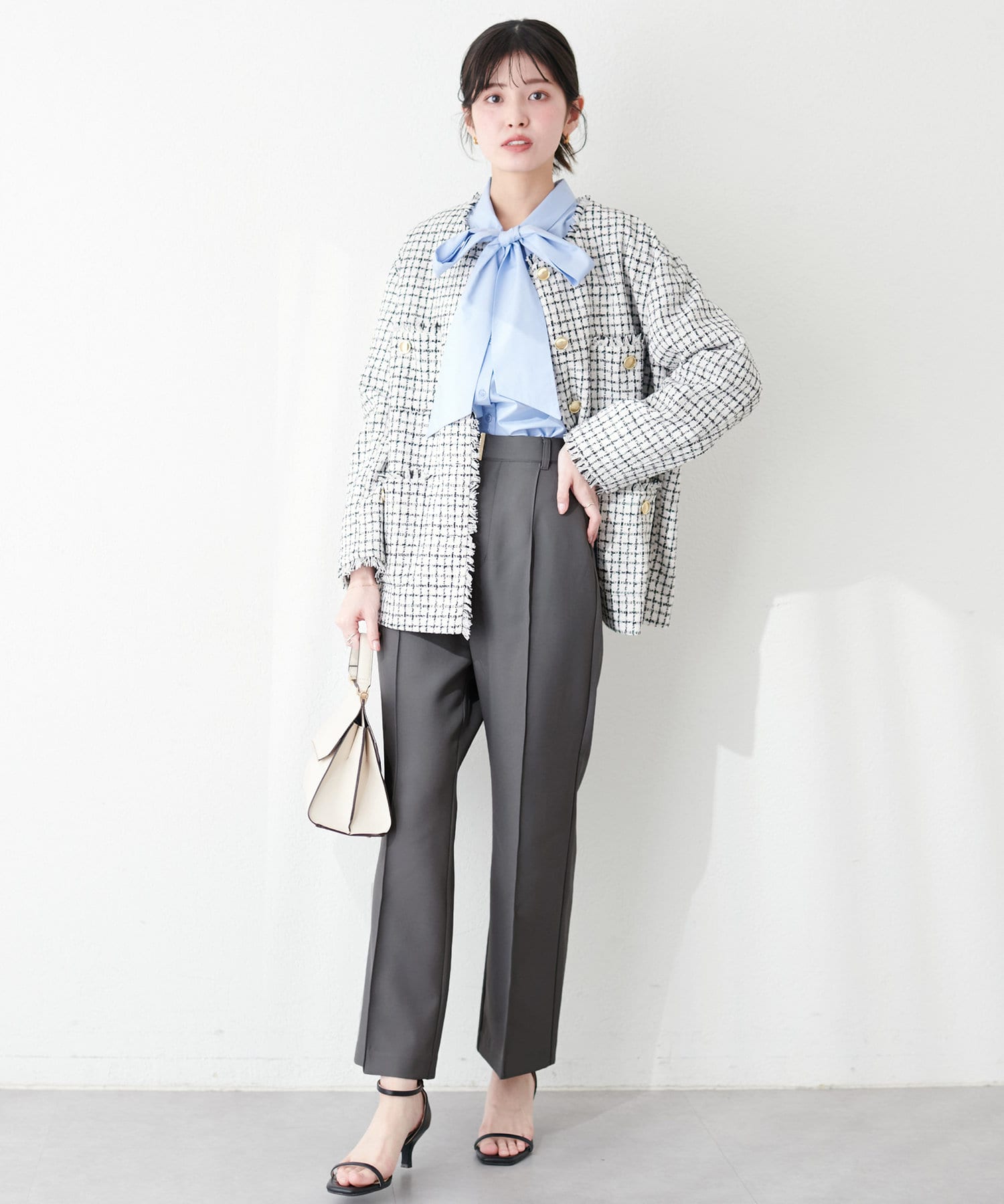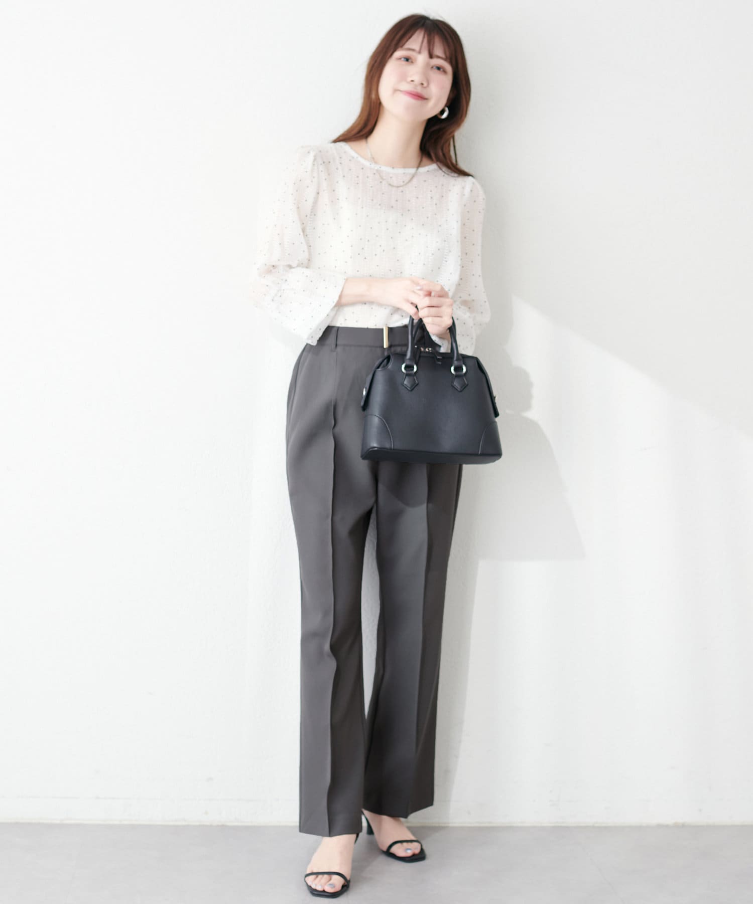 キレイメブラウスで合わせていただき、通勤コーデとして活躍してもらえます。