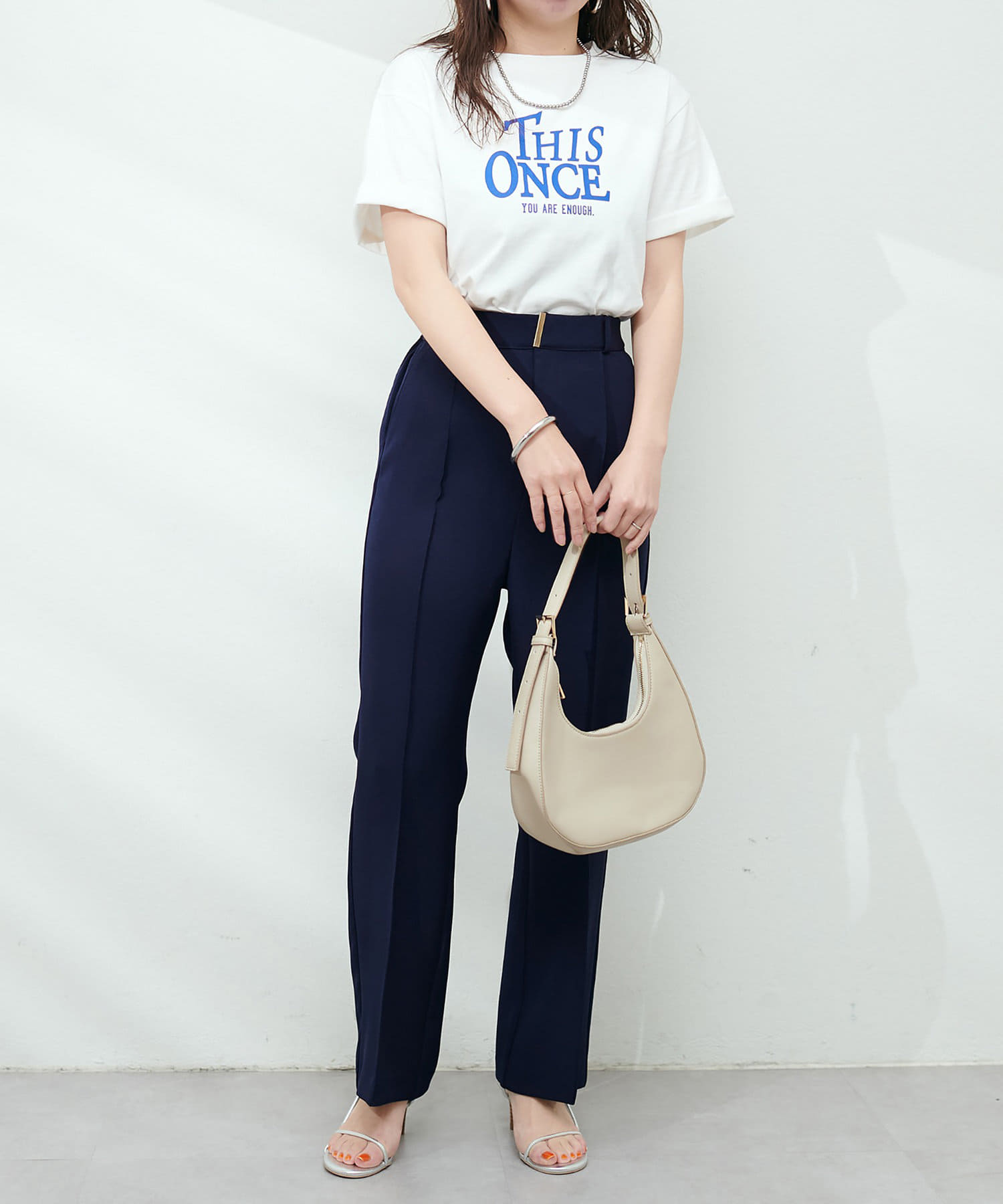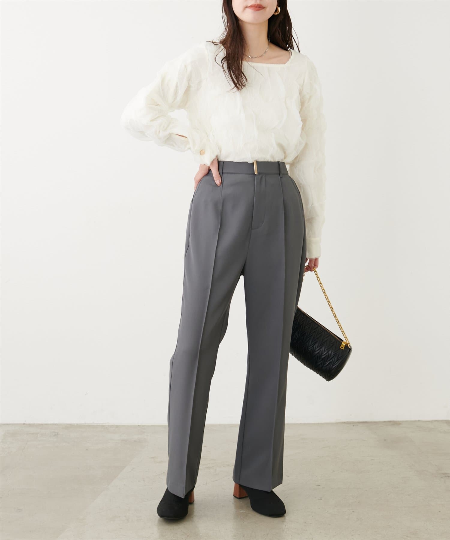 オフィスで活躍する、ハイウエストキレイめパンツ