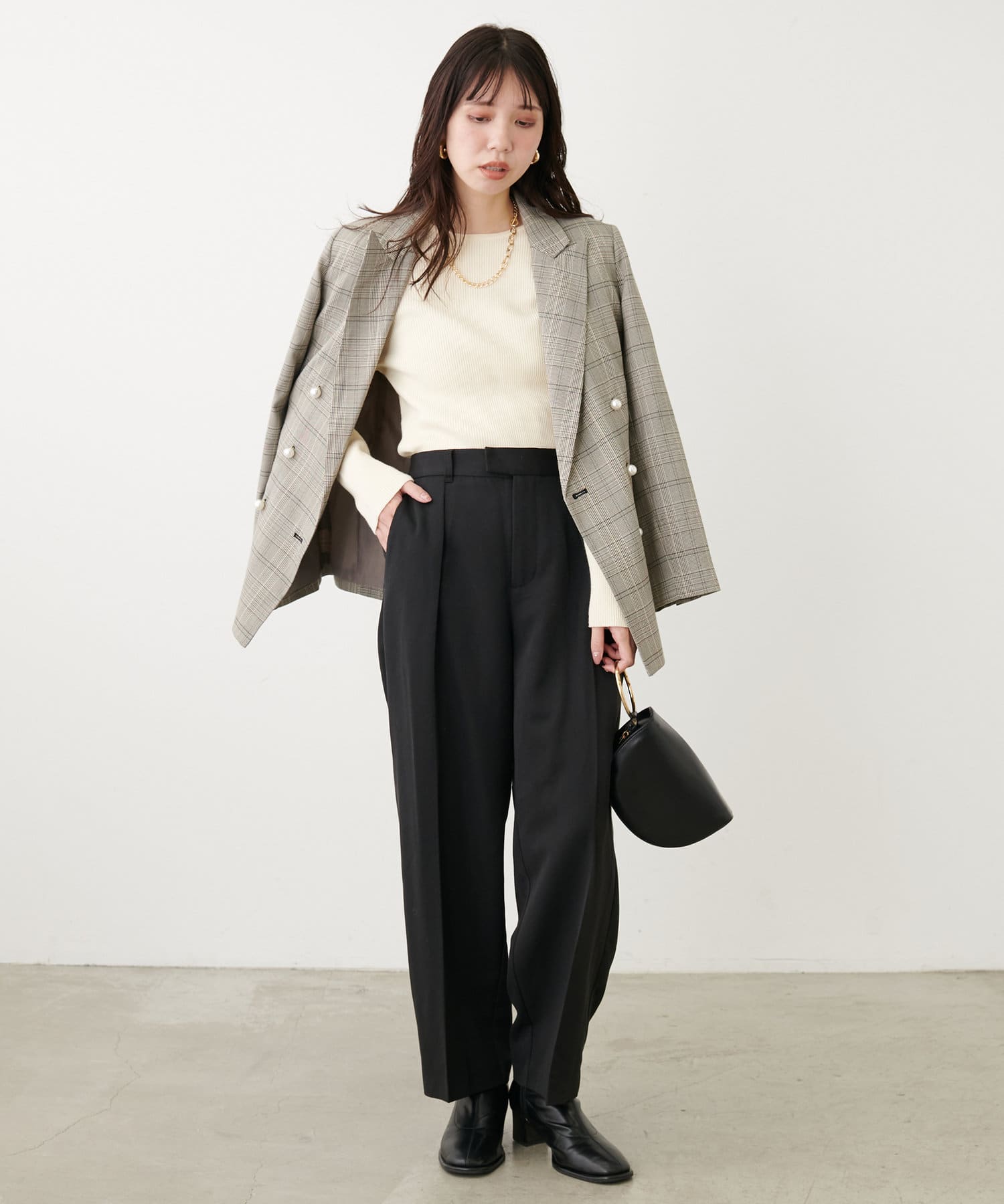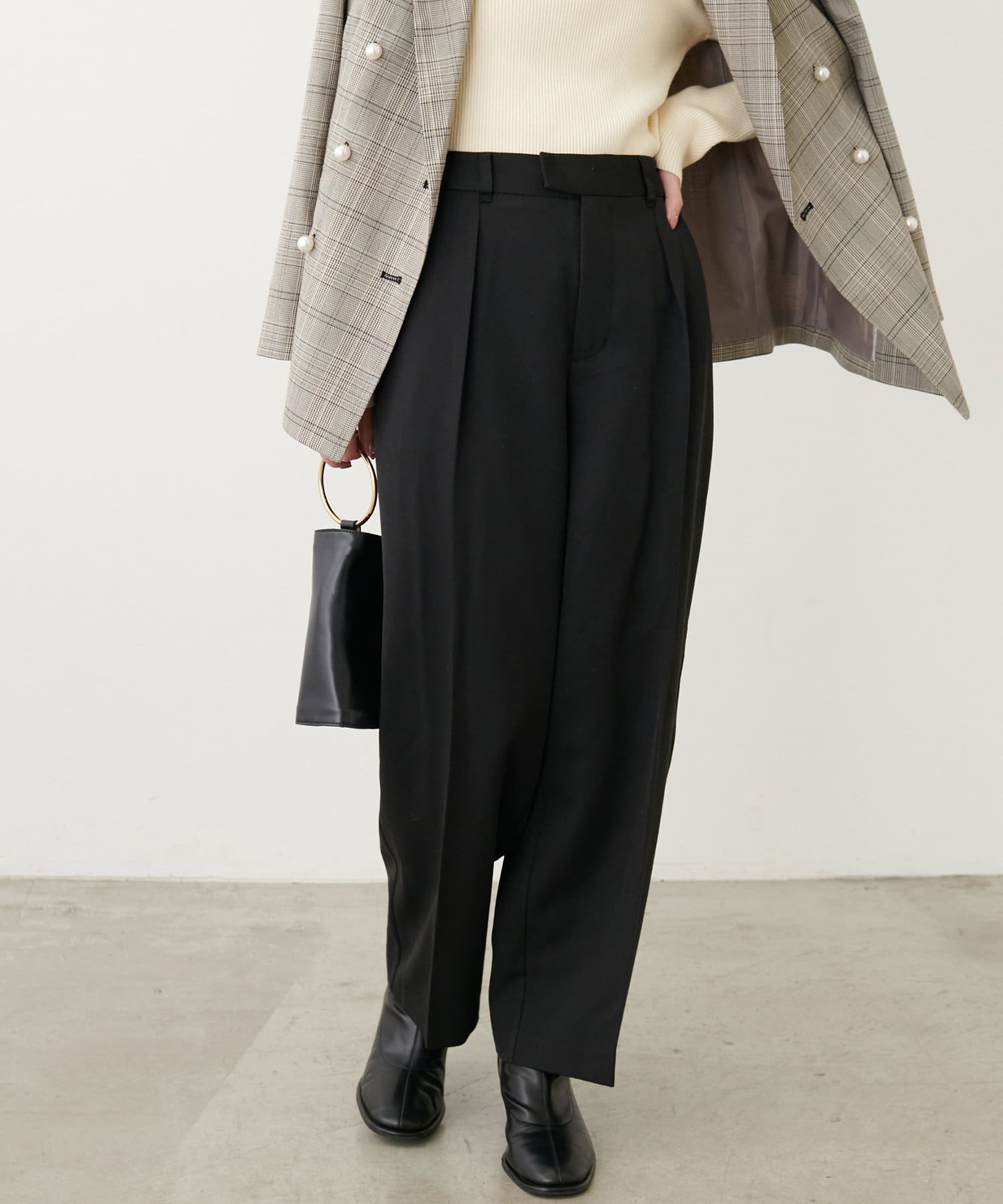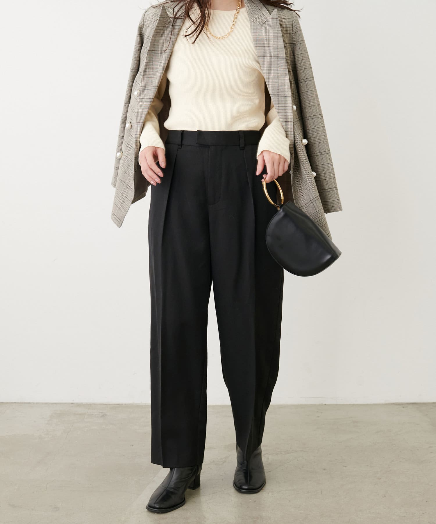 骨格ストレートのスタッフ考案のシンプルなタックパンツ