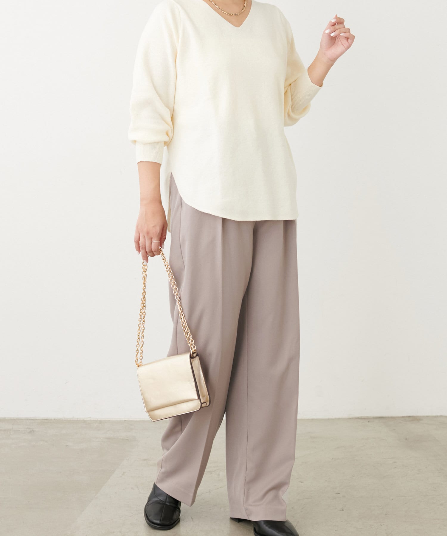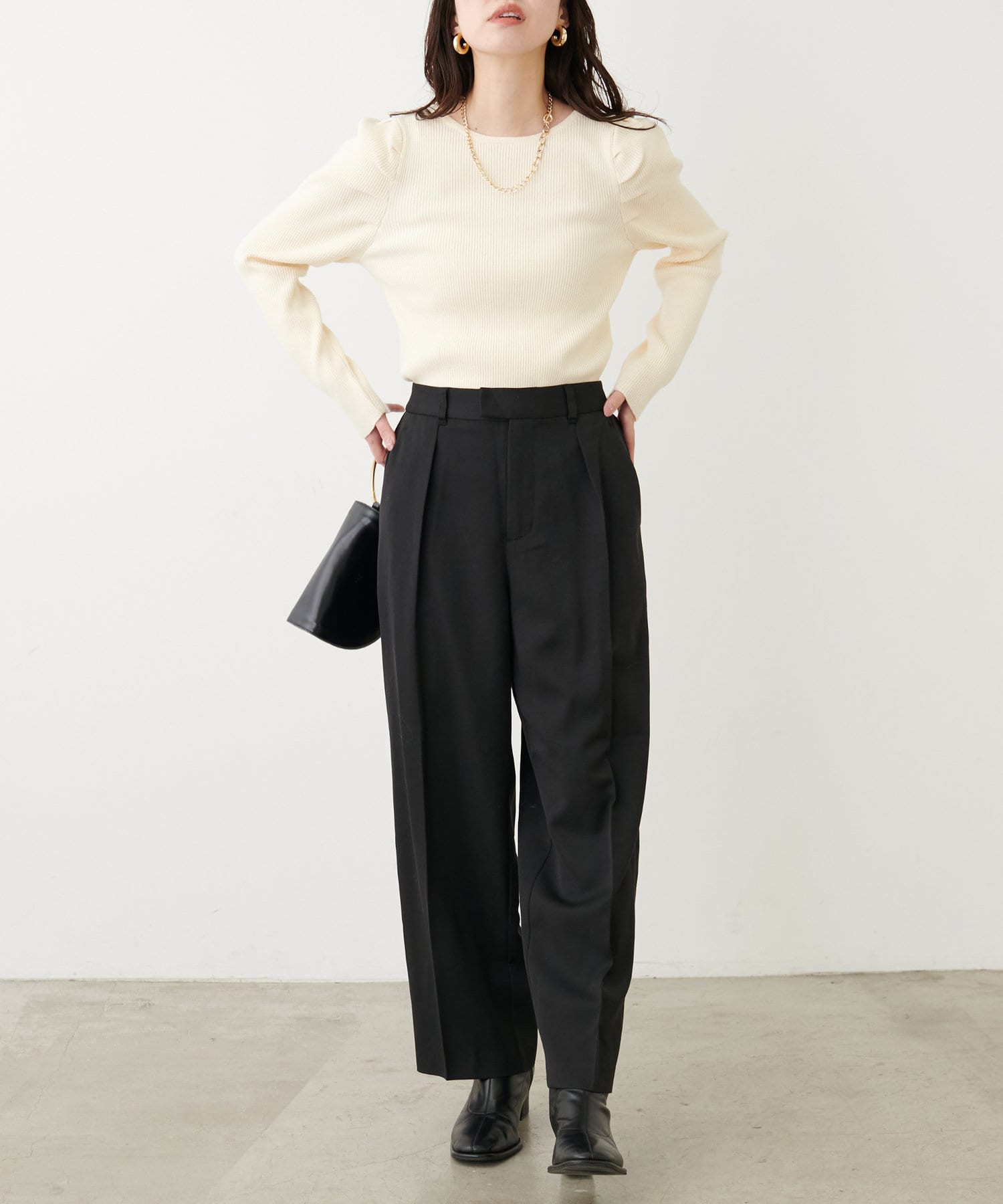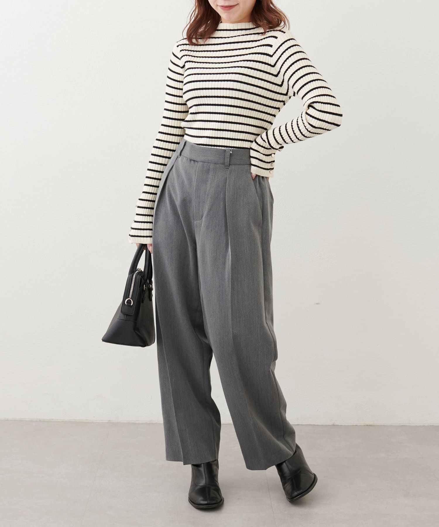骨格ストレートのスタッフ考案のシンプルなタックパンツ