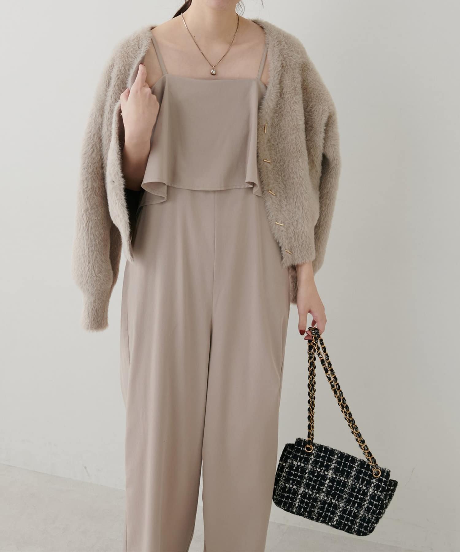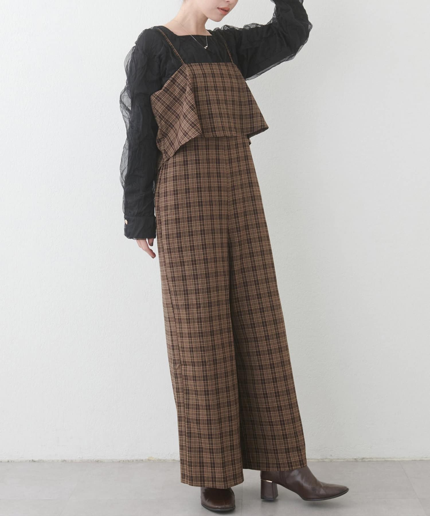 1枚でレイヤードスタイルのビスチェ風サロペ