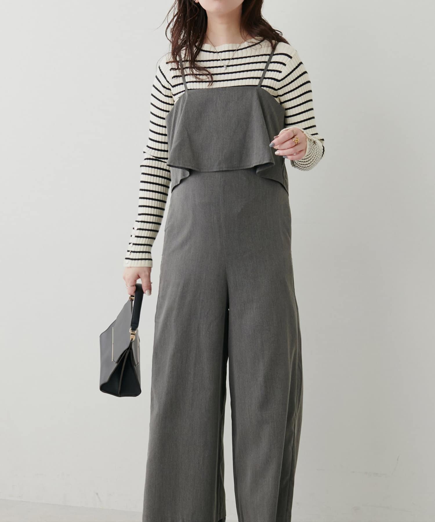 1枚でビスチェを重ねたようなレイヤードスタイルの叶うサロペット。