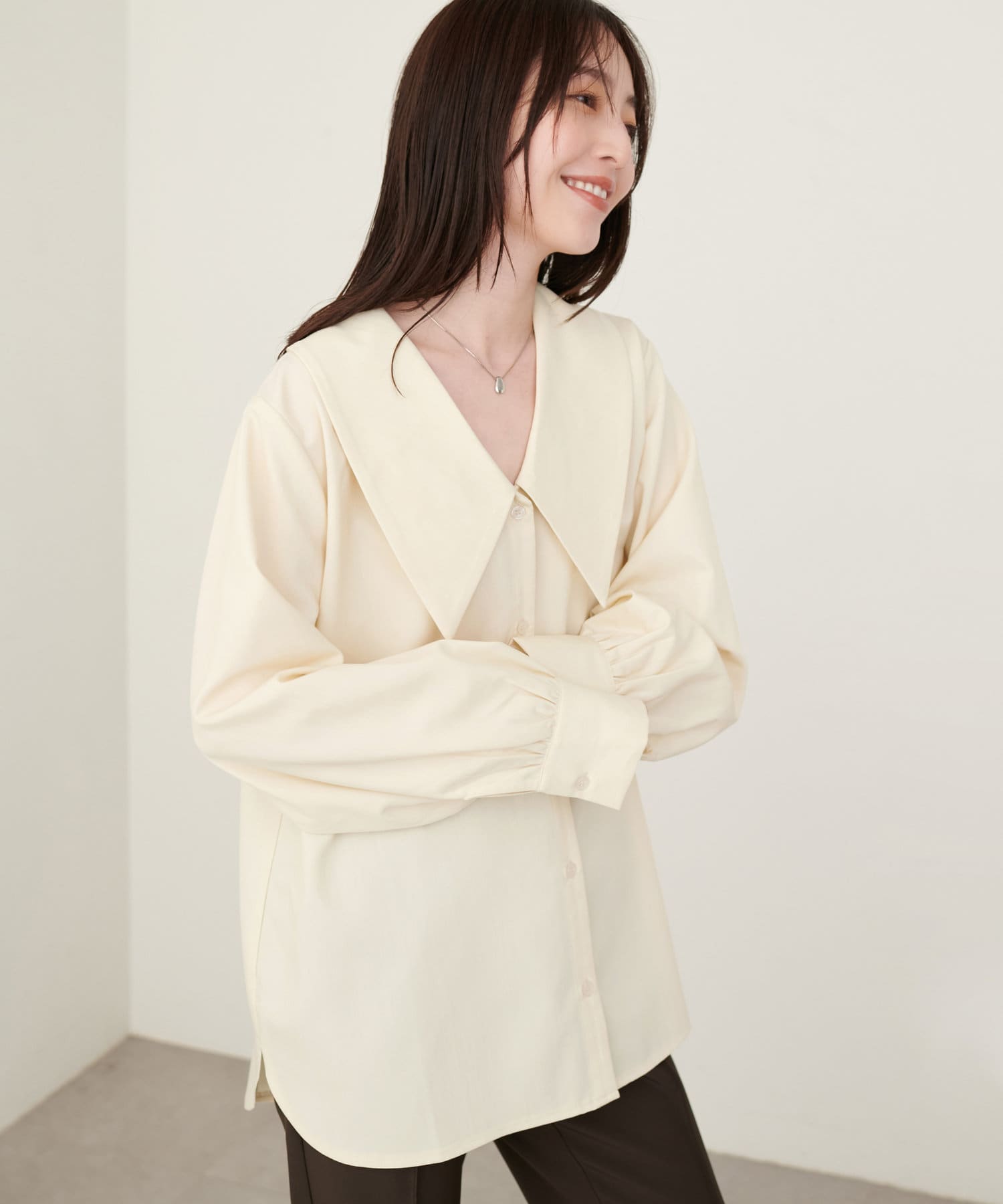 • natural couture(ナチュラルクチュール) 【WEB限定】BIG衿シャツブラウス
