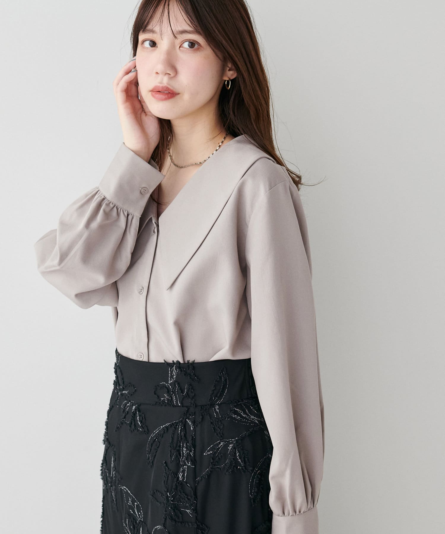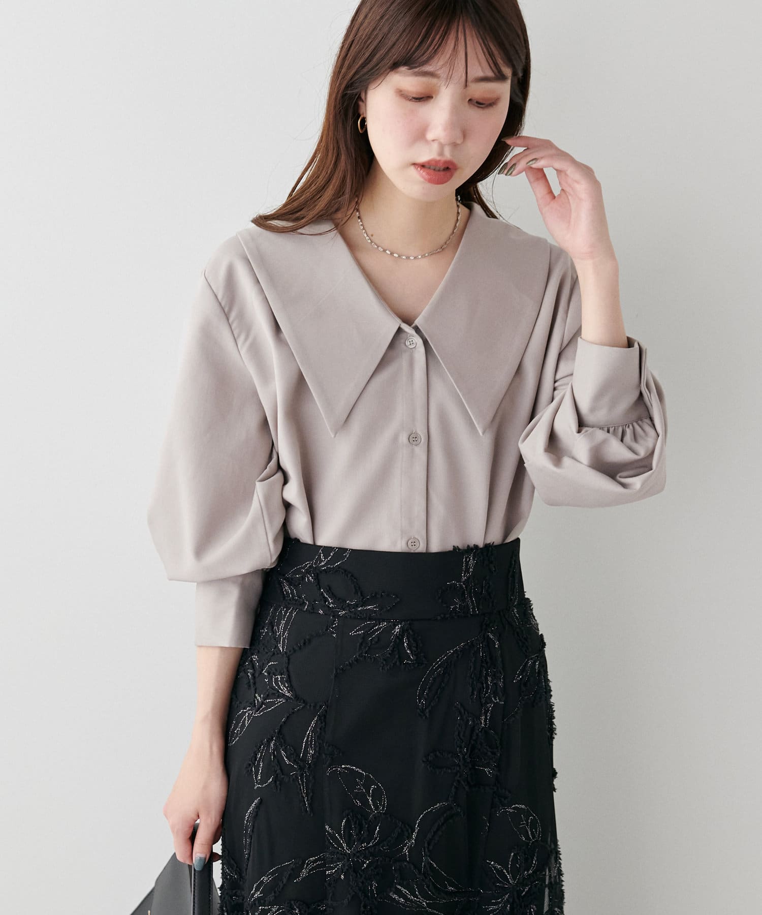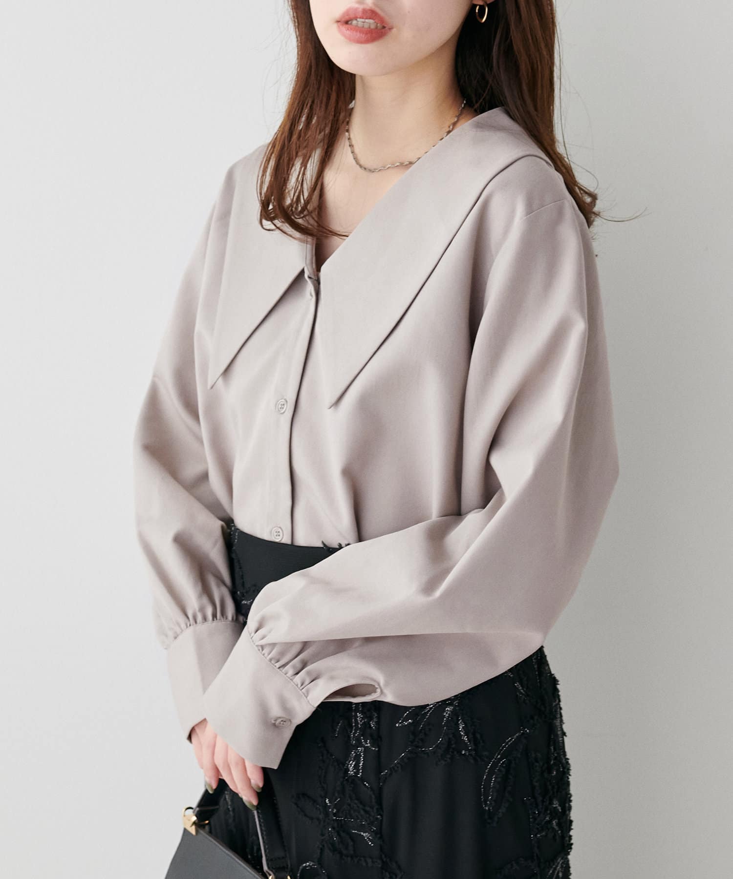 リバイバルアイテム!大きな衿が程よい甘さのビッグ衿ブラウス
