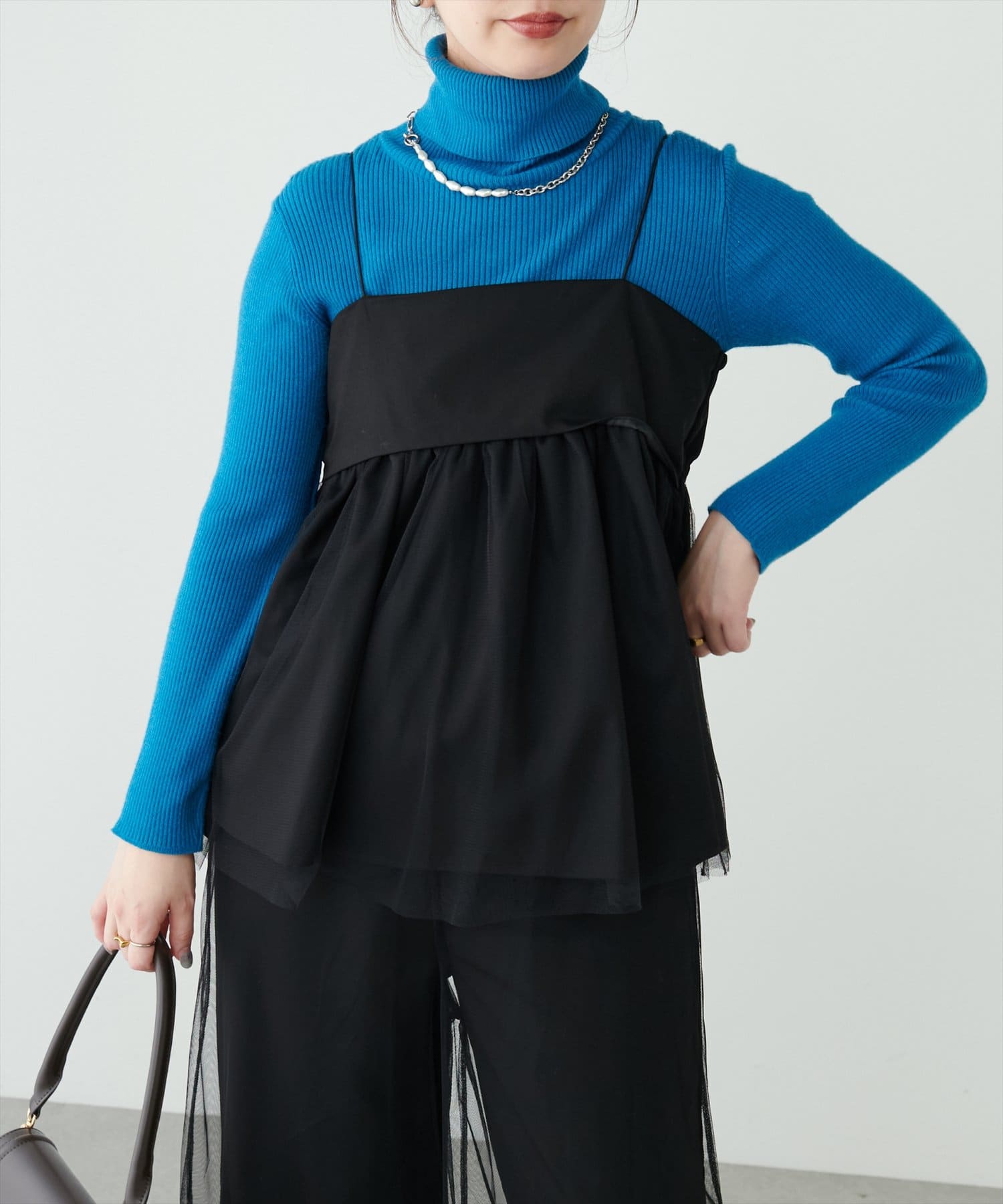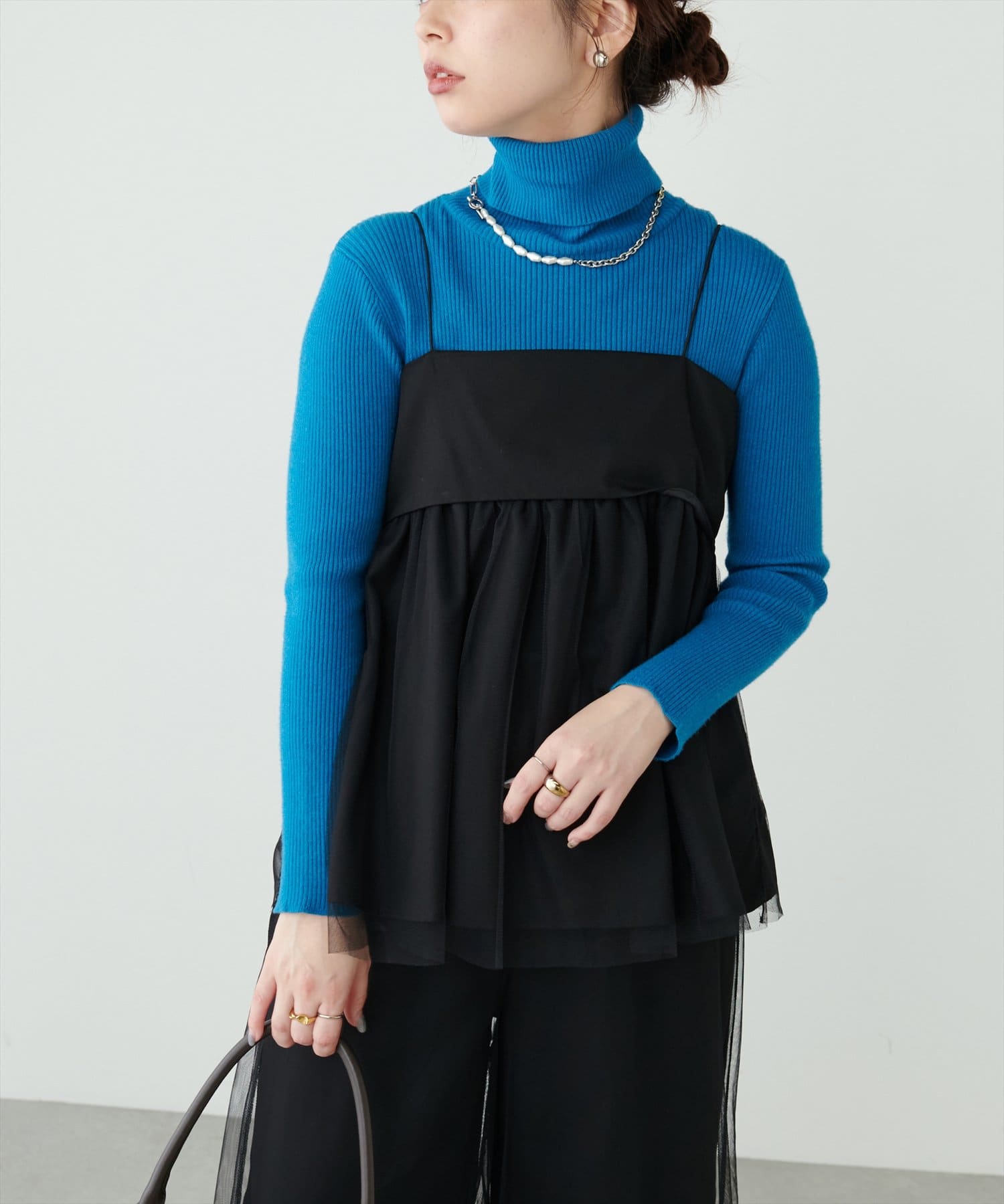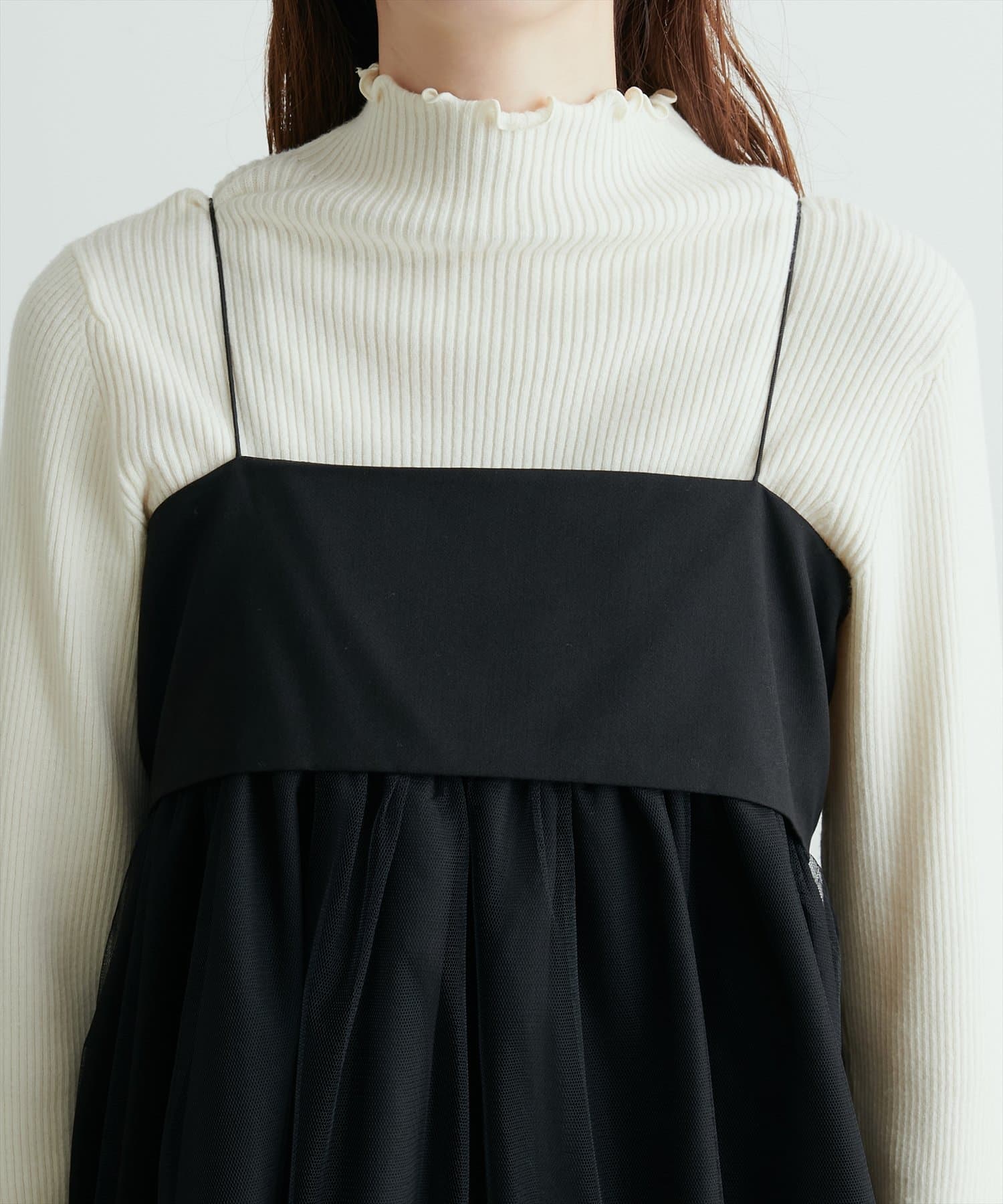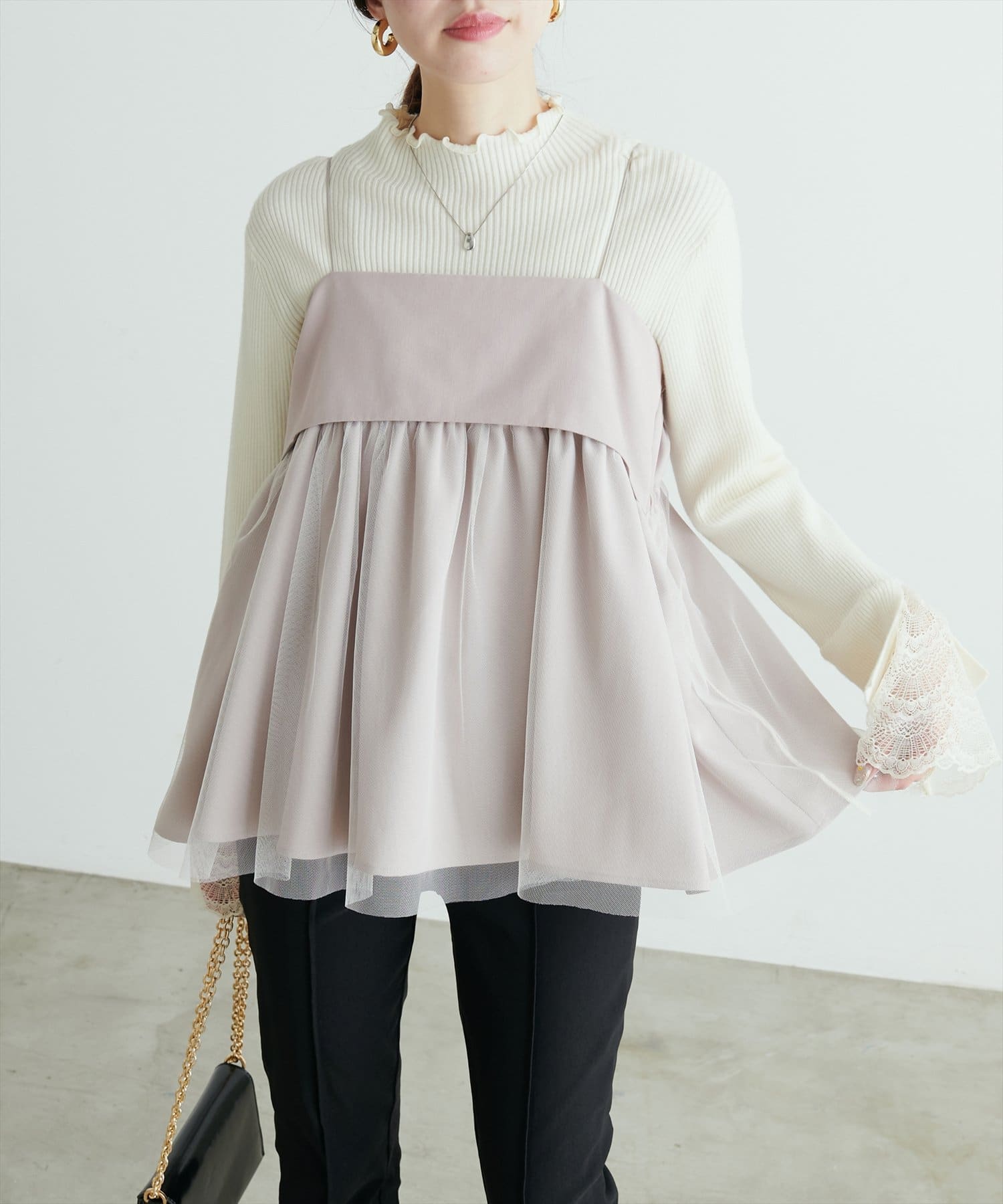 トレンドのチュール素材を使用したチュニック。
