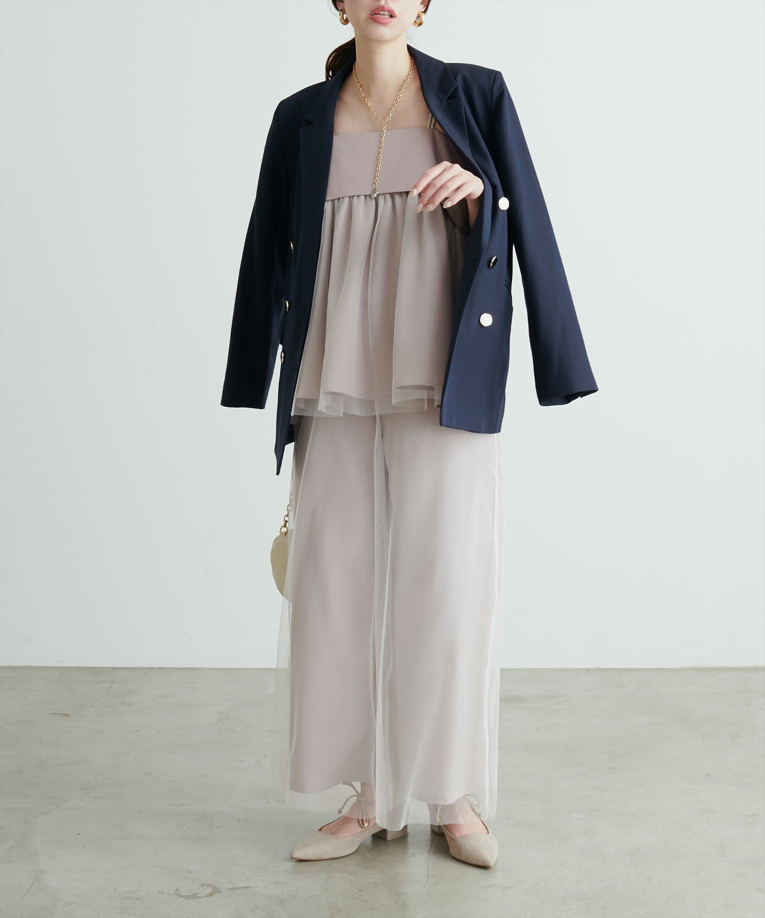 レイヤードスタイルもバランスよく着こなせます。